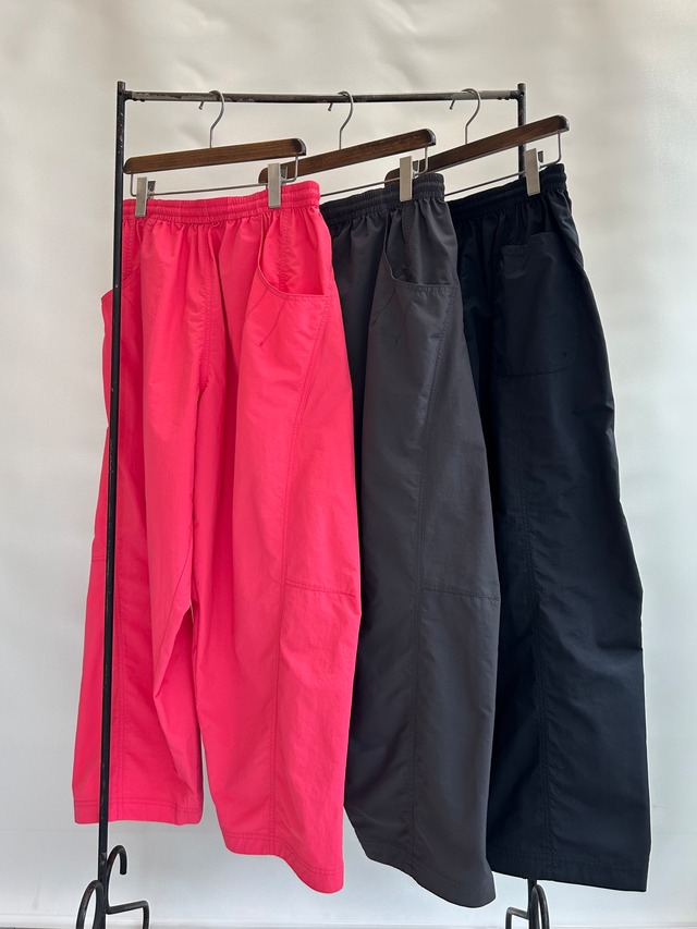 真夏の高温多湿な環境でも快適に過ごせる、軽量/速乾/UVカット機能を備えたSUPPLEXナイロン製のアイランドパンツ。斜めに大きく入った切り返しで立体的なパターンになっており、バルーンシルエットが特徴的。 ポケットや裾に入った立体プリーツでストレスのない履き心地を実現しています。 ワイドシルエットで風通しがよく、97.5%の紫外線をカットするため日差しが強い季節にも重宝します。日常使いはもちろん、旅行やフェス、キャンプ水辺のアウトドアまで幅広く活躍する万能パンツです。 ・素材 : ナイロン100% ・サイズ 【S】 ウエスト : 72cm ワタリ : 86cm 股上 : 34.5cm 股下 : 63.5cm 裾幅 : 23.5cm スタッフ身長 158㎝ (BLACK着用) 166㎝ (POPPY着用) - - -attention- - - ・サイズは実寸、平置きで測っている為多少の誤差が出る場合があります。 ・商品の色ですができる限り近いように掲載しておりますが、多少異なることがございます。 ・実店舗と在庫を共有している為、売り違いなどで欠品の可能性がございます。 ご了承ください。 ◎返品交換について イメージと違う・サイズが合わない・ご注文を間違えた等、お客様都合による返品/交換は一切お受けすることが出来ませんので予めご了承下さい。 その他返品については特定商取引法に基づく表記をご確認下さい。