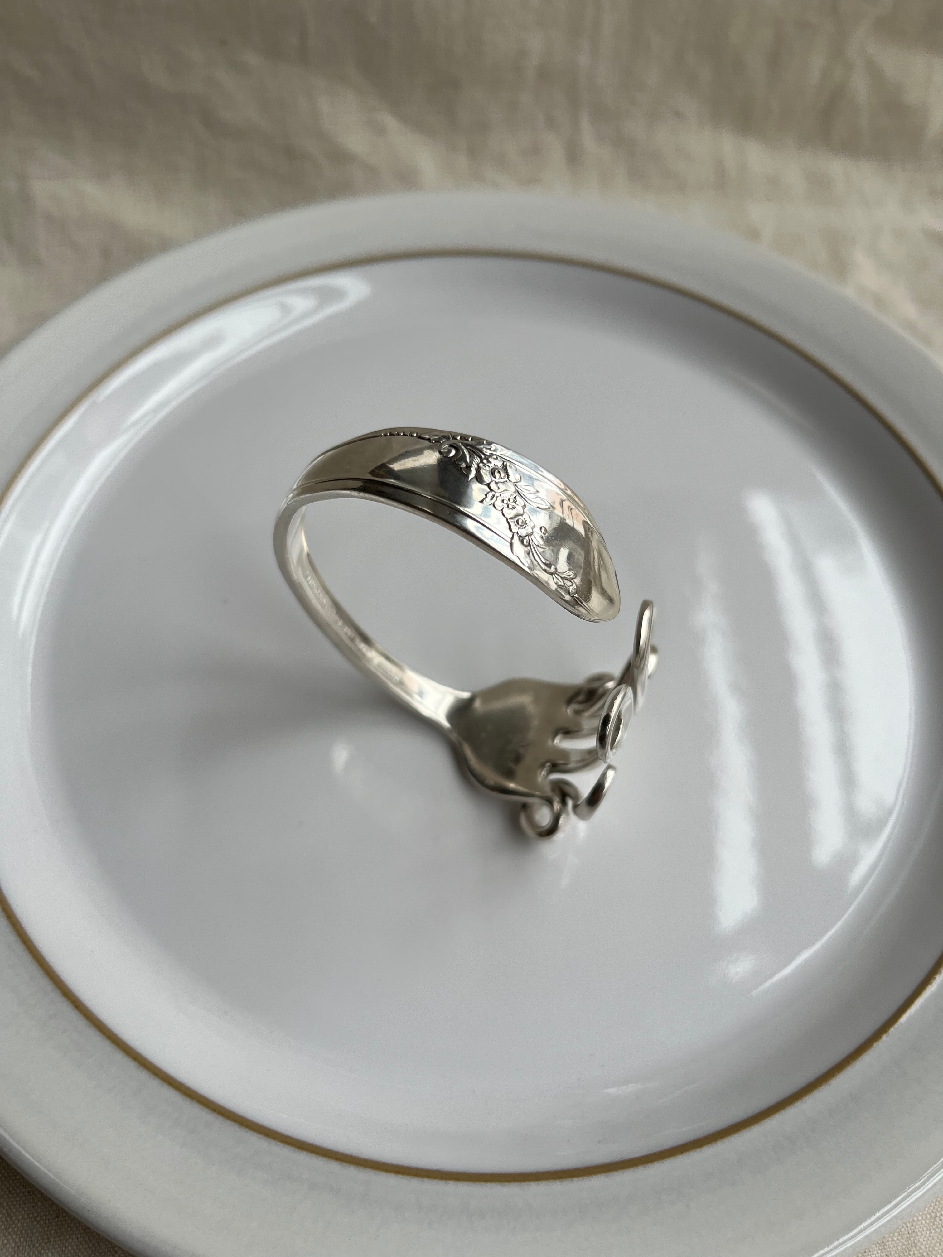 アメリカ・ミシガン州発、ステンレス製のスプーン、フォークやナイフなど銀メッキが施された食器を手作業で曲げて形作られたバングルやリングを展開するアクセサリーブランド。