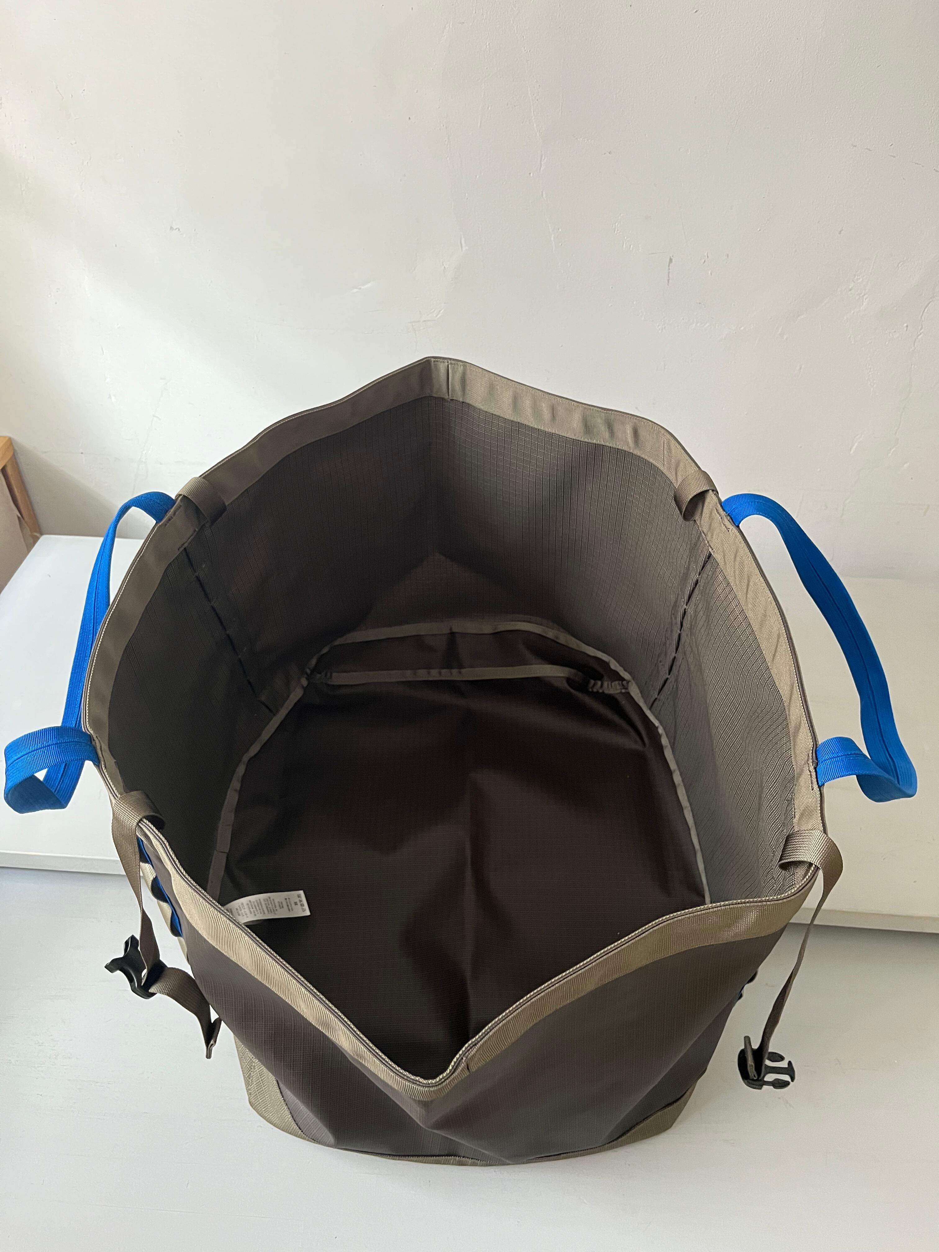 ストラップ付きの大きい開口部は物入れが良くオートキャンプなど荷物の多い野外でのレジャーで大活躍間違いなしの大容量トートバッグ、耐水性のある生地のが使用されており水辺のアクティビティにもお勧めです。