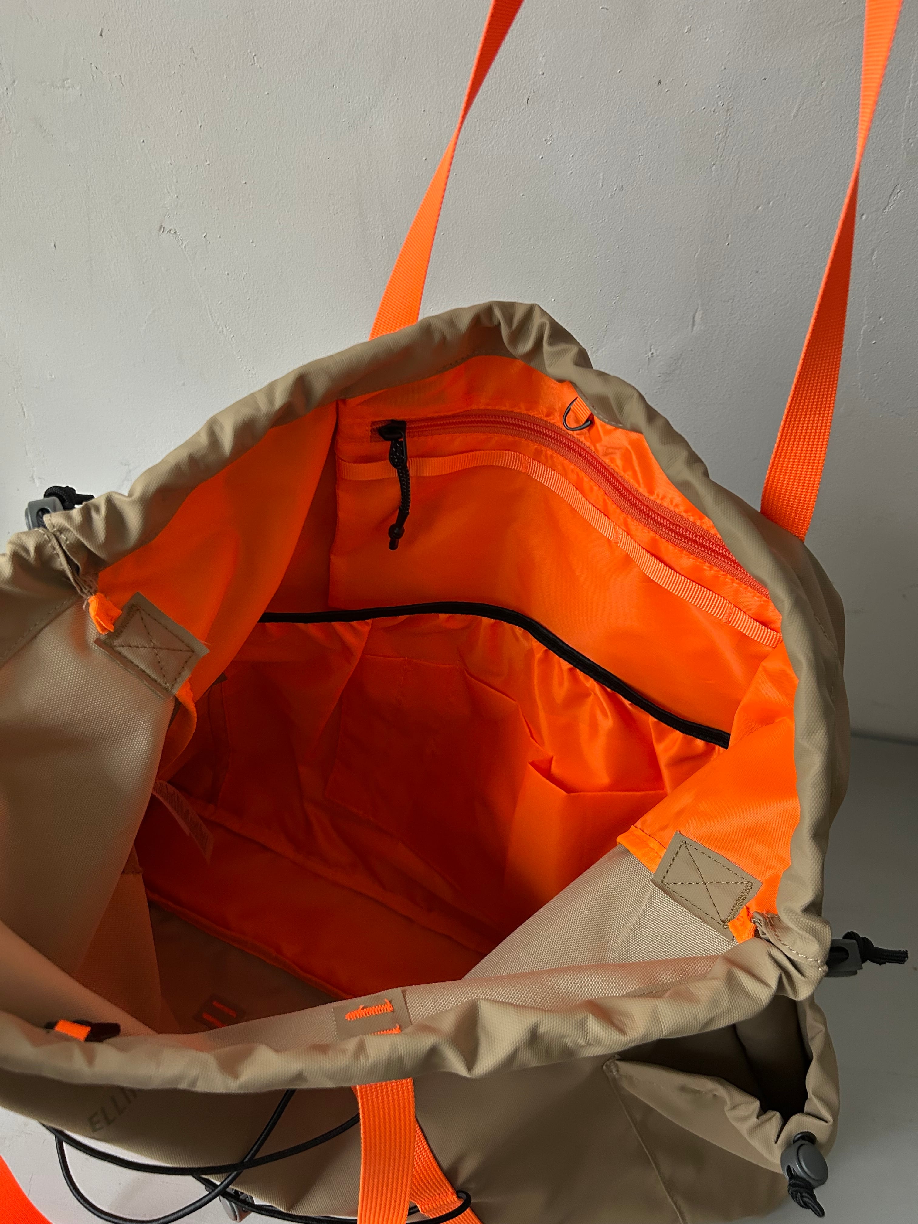 広々としたメインコンパートメントの開口部には調整可能なドローコードとクリップ機能付き、内部には15インチのPC用スリーブを含めた複数のポケット付きで整理整頓しやすい構造に。