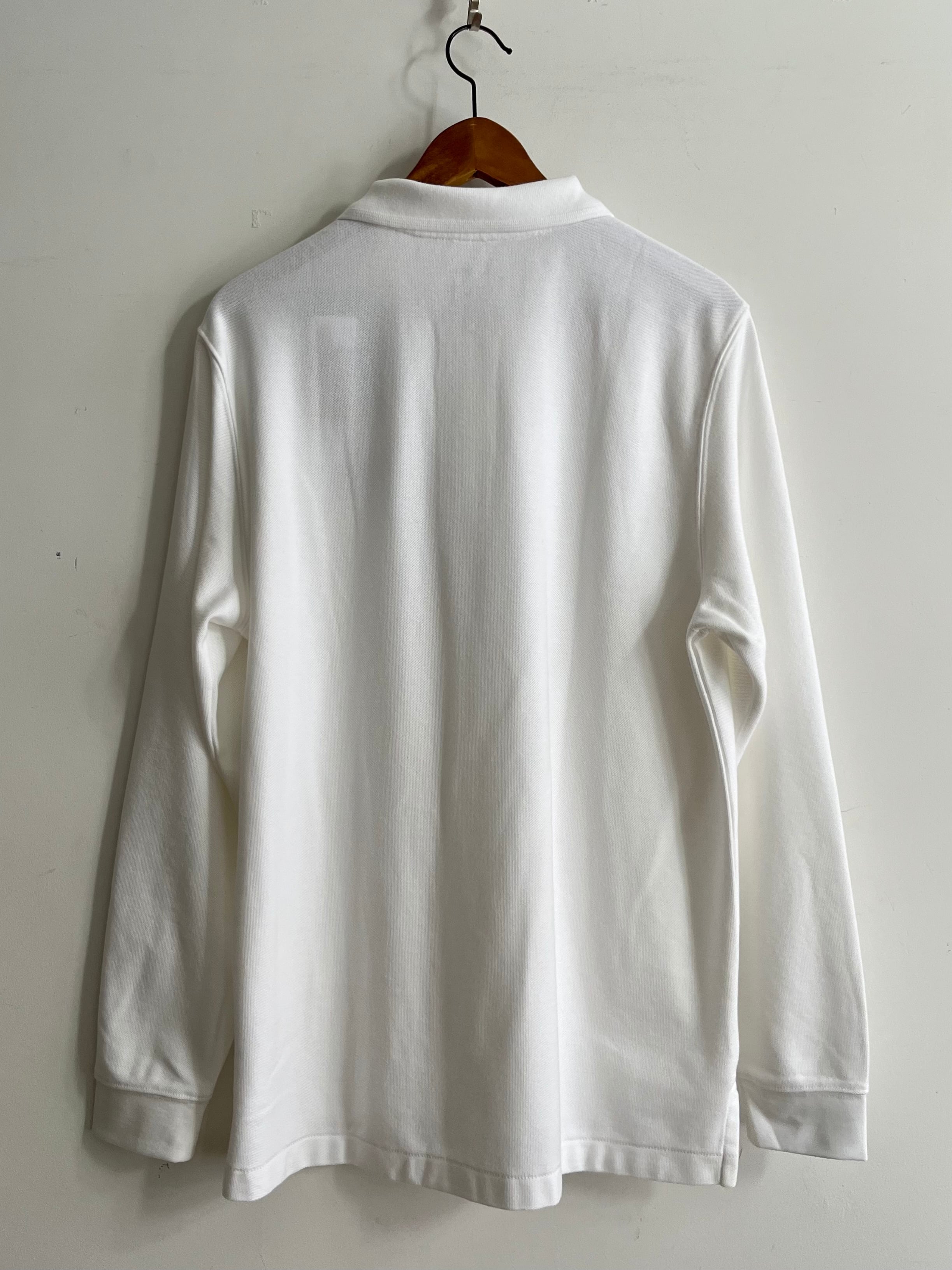 スタンダードなボックスシルエットの長袖ポロシャツ。色褪せや縮みに強くさらにシワや毛玉の出来にくい綿100%ピケ・ニット素材を使用しており、快適な着心地できれいなルックスが長く持ちます。左胸に青系の刺繍糸で表現されたお馴染みのカタディンロゴが良い感じです。
