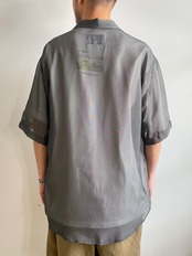 軽量で耐久度が高く、シャリ感のあるPESC繊維と、光沢感のあるビスコースを合わせたシースルーの半袖シャツ