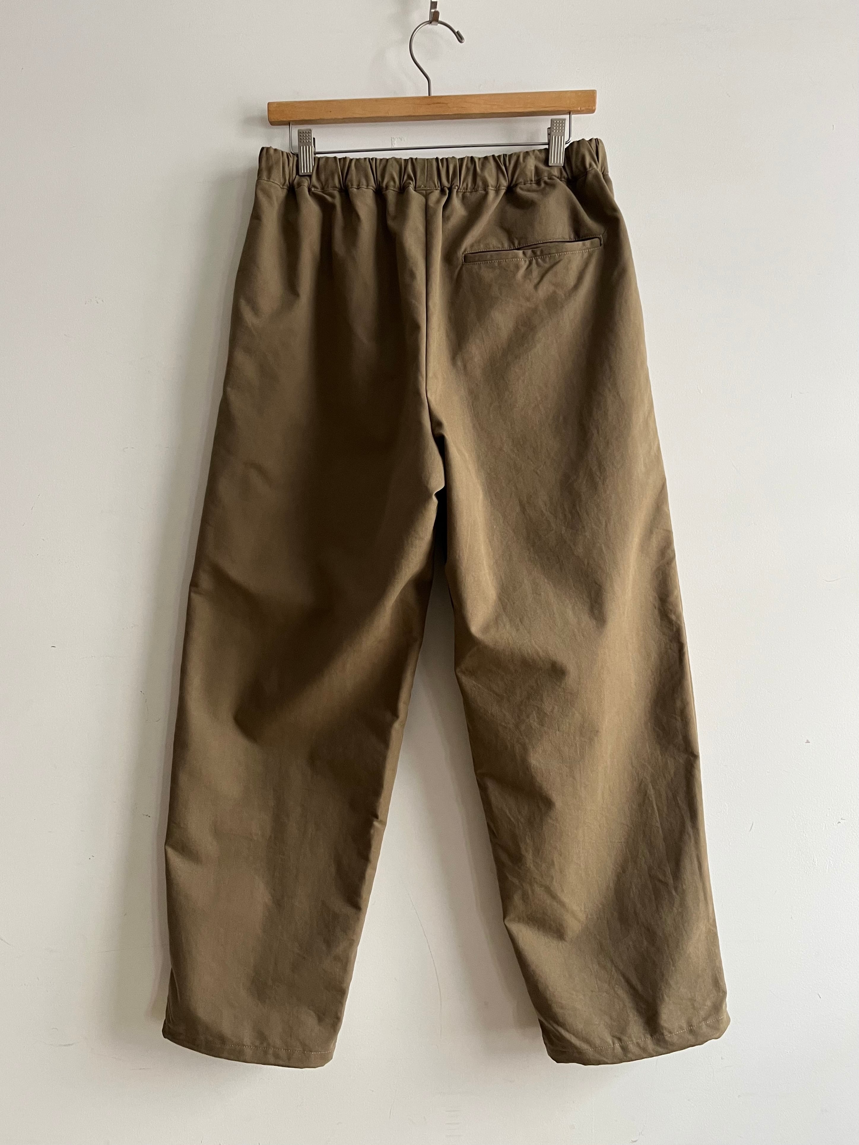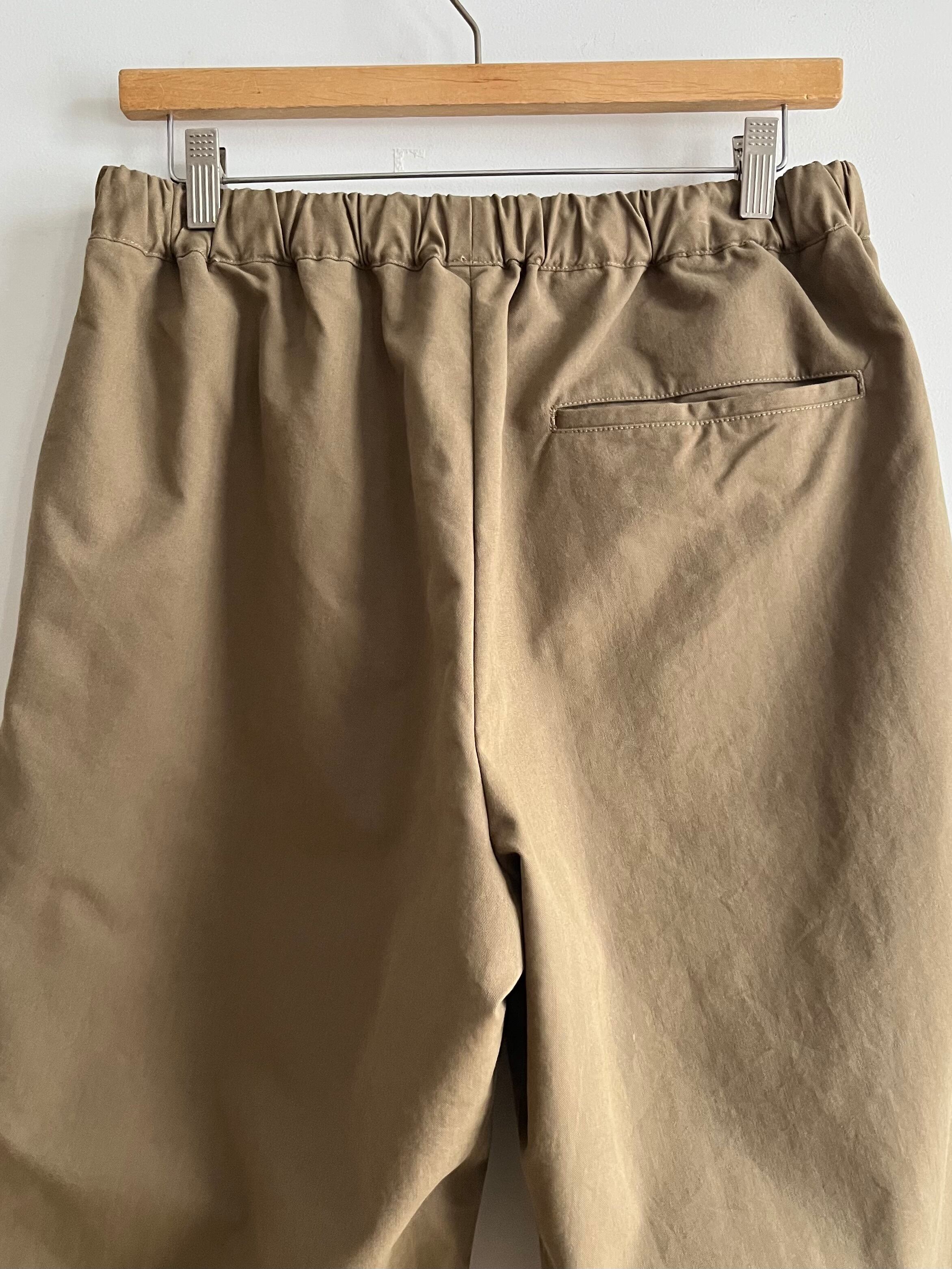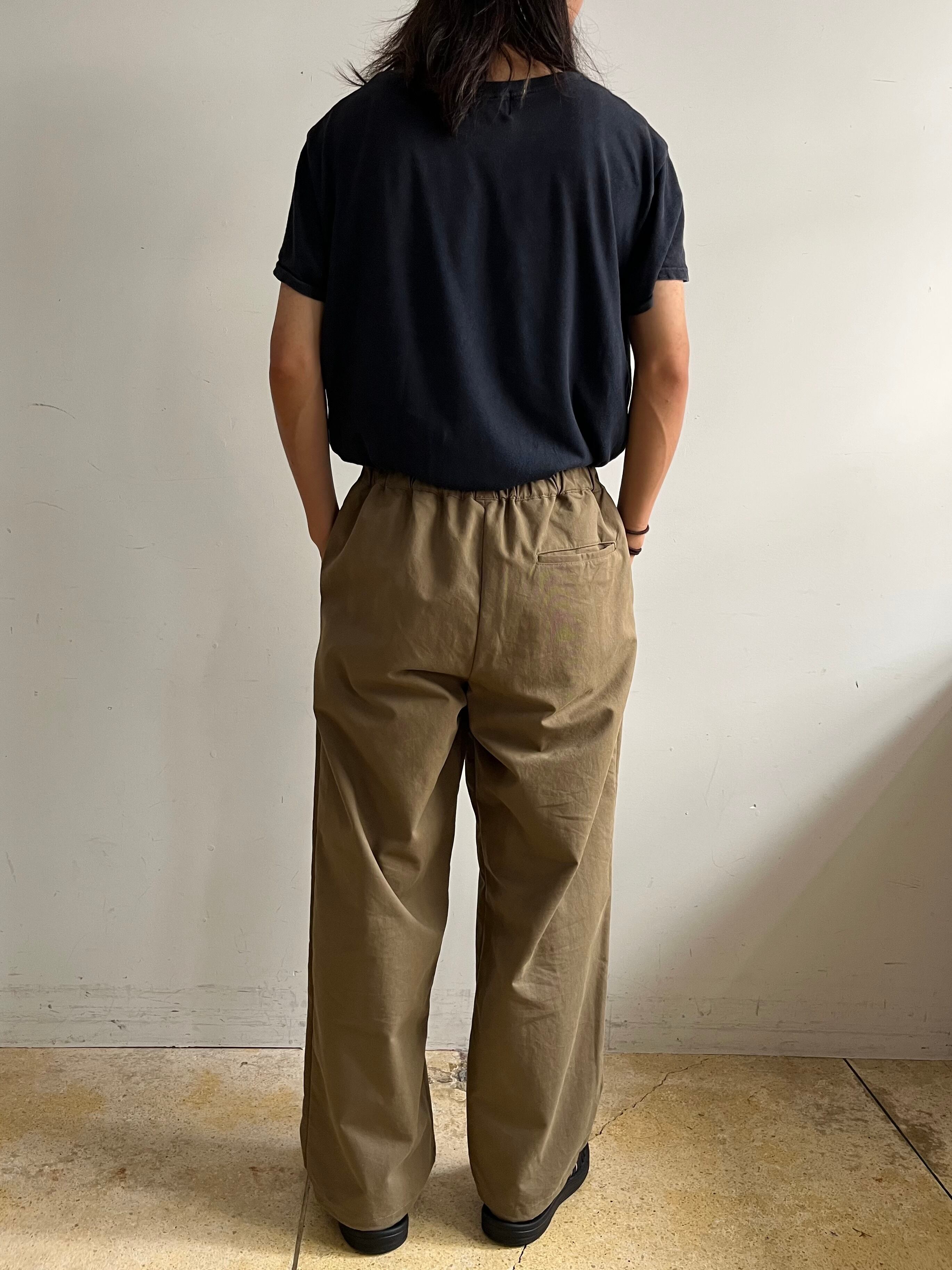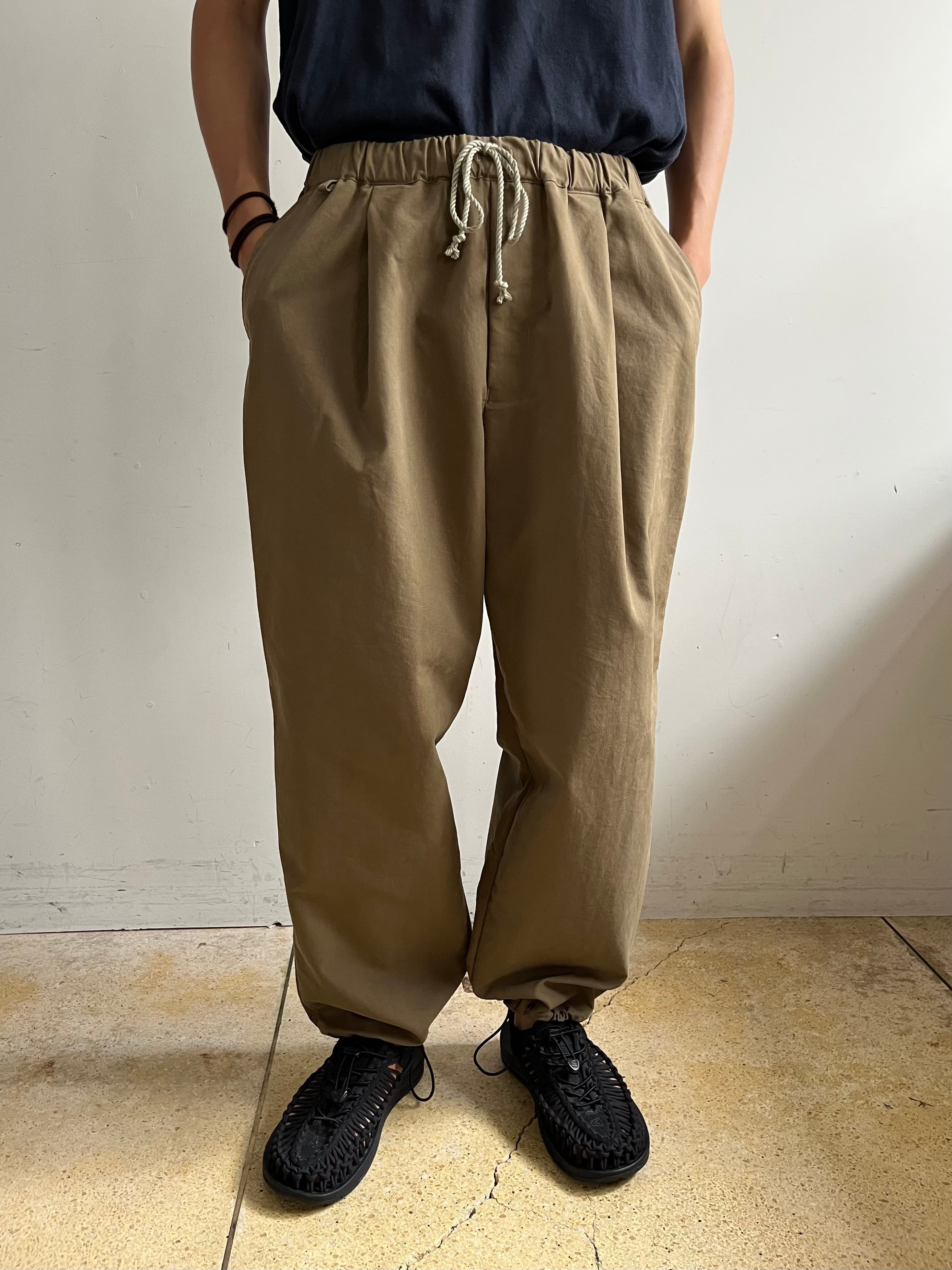 形はHELTHブランド定番#6タイプのイージーパンツ、ワンタック入りで幅が広めのゆったりとした形状、裾にはドローコードが付きシルエットに変化も付けられます。