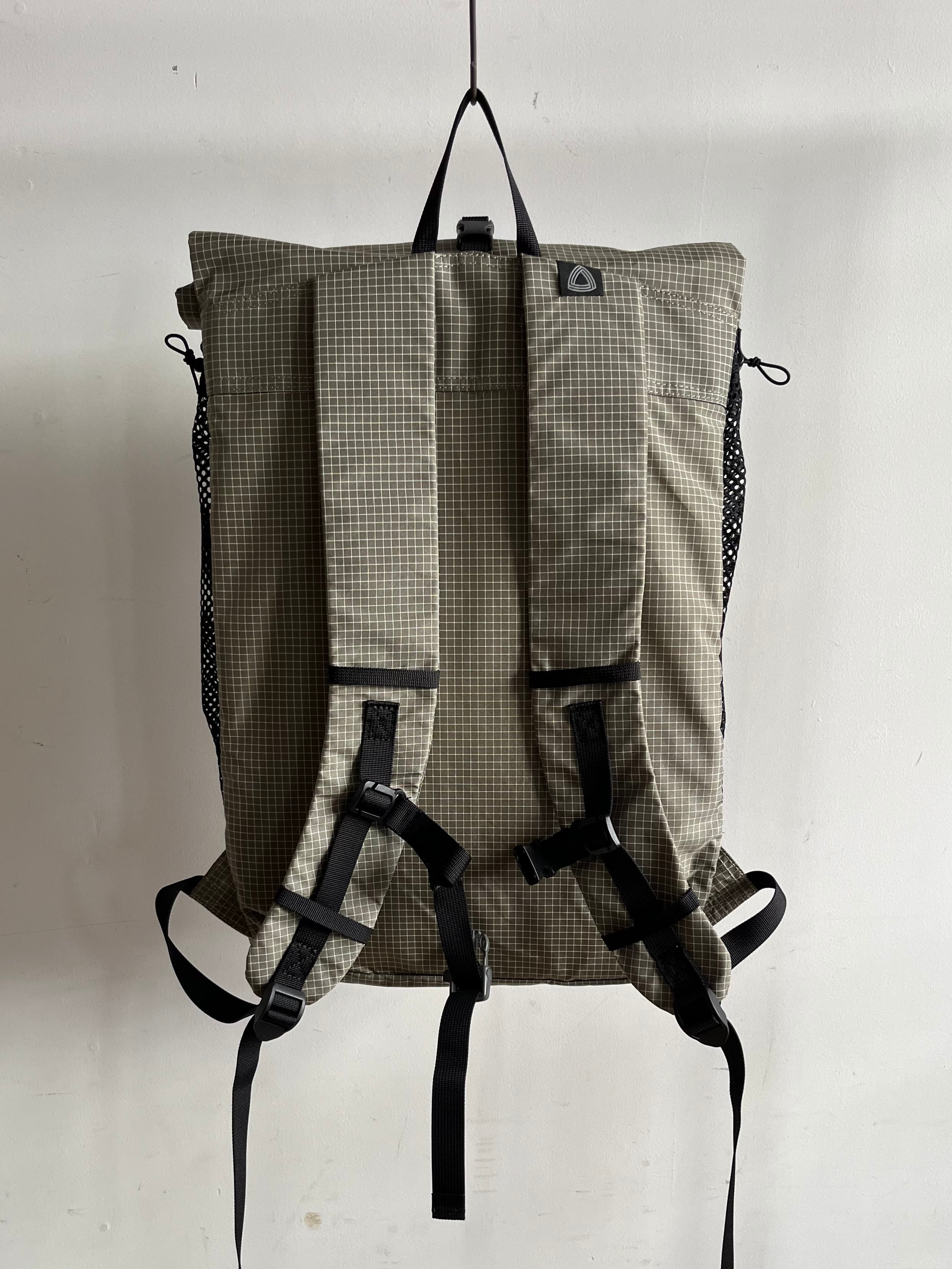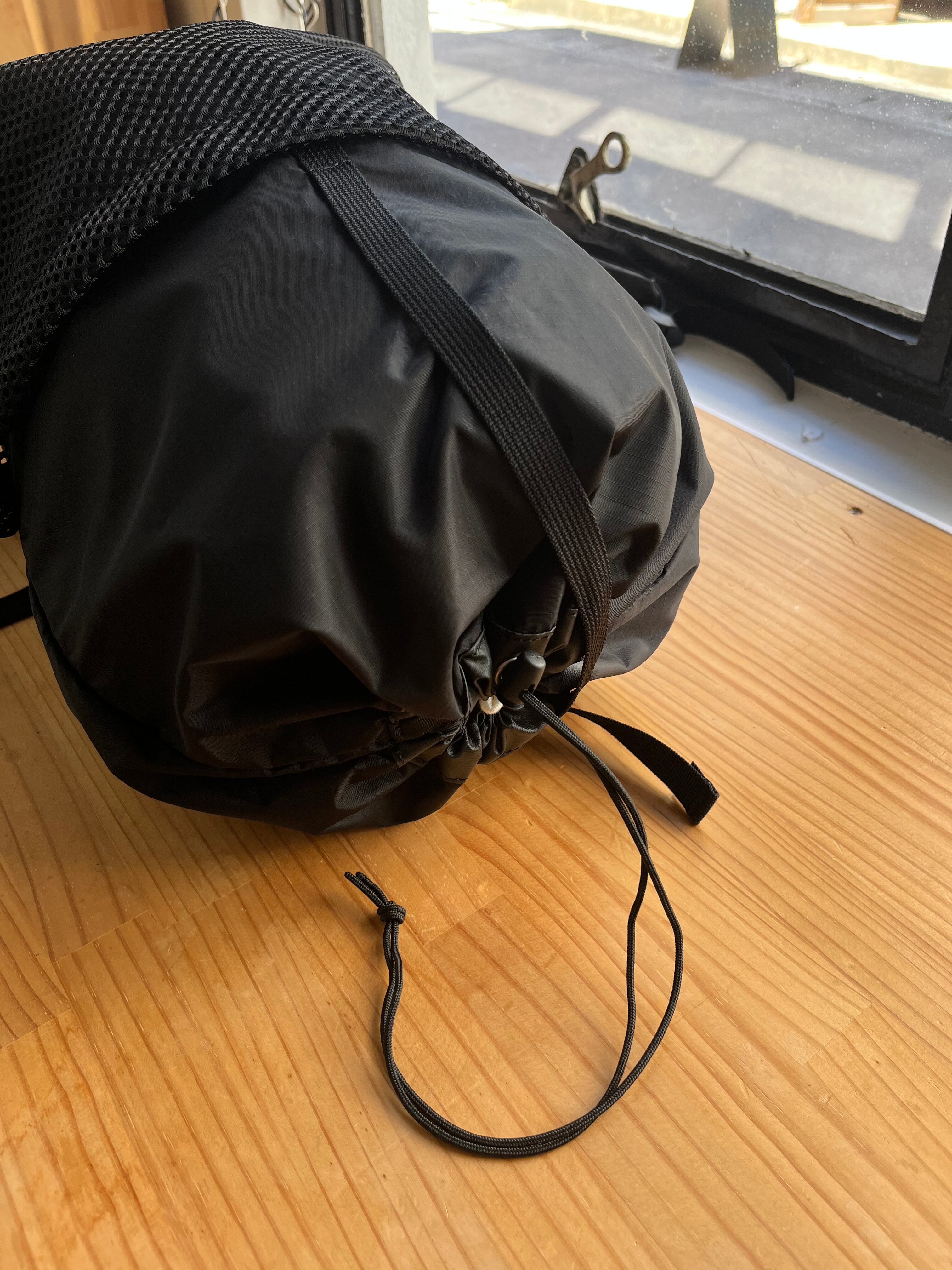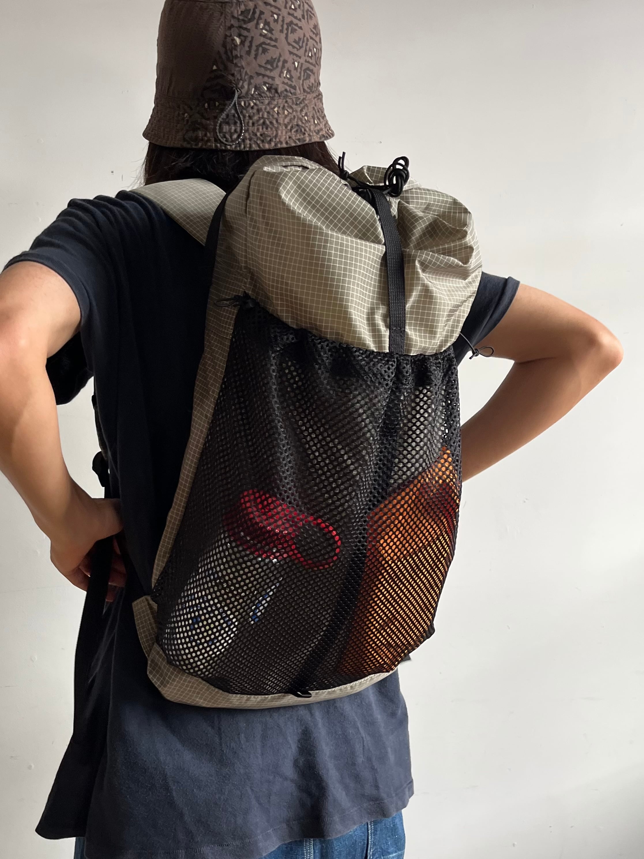 小ぶりでありながら拡張性が高く、荷物が少ないときはコンパクトでスマートに、荷物が増えても上部を広げて開口部のドローコードで閉じる事で13L-19Lの容量で使い分けることが可能。加重を感じにくい7cm幅の幅広ショルダー、付け根部分にはしっかりと補強ステッチが施されていて荷物が重くても快適で頑丈な作りです。前面には中身が見えやすい大型メッシュポケットが付きタオル等の濡れモノ一時的に入れるのに便利。