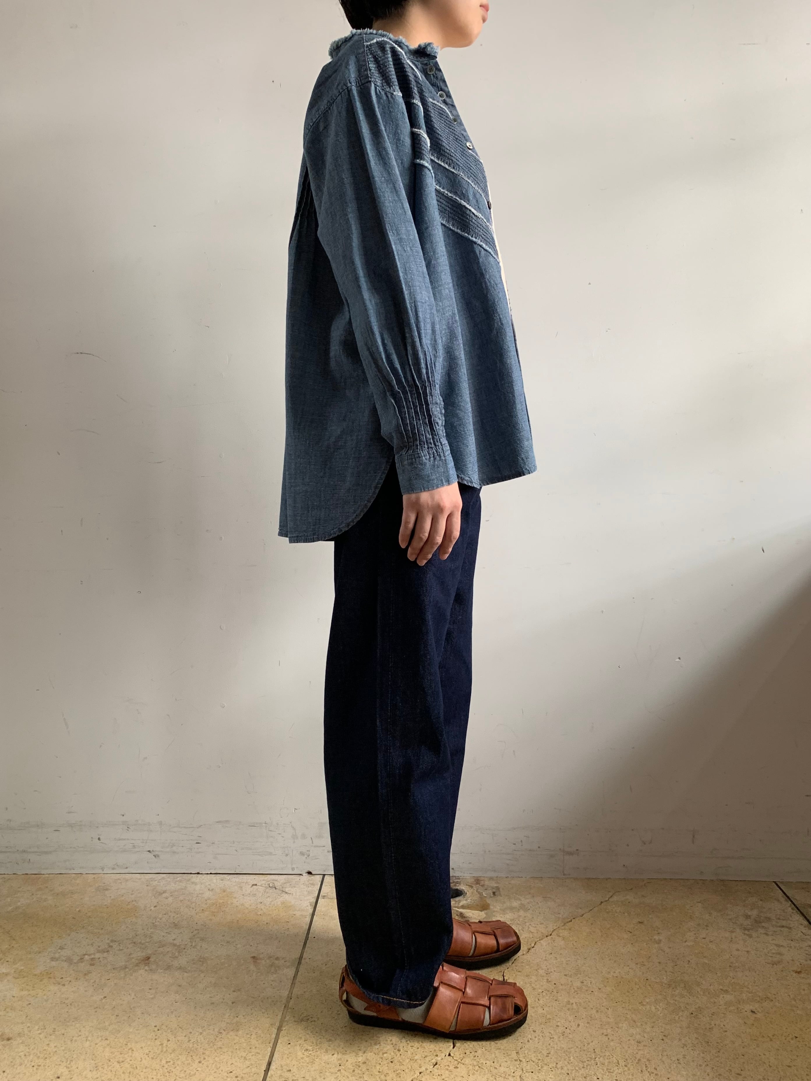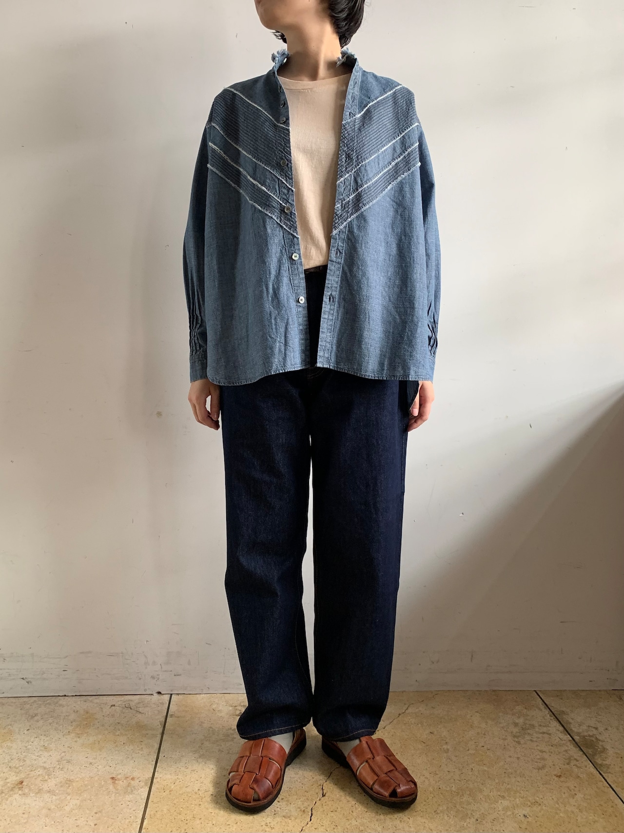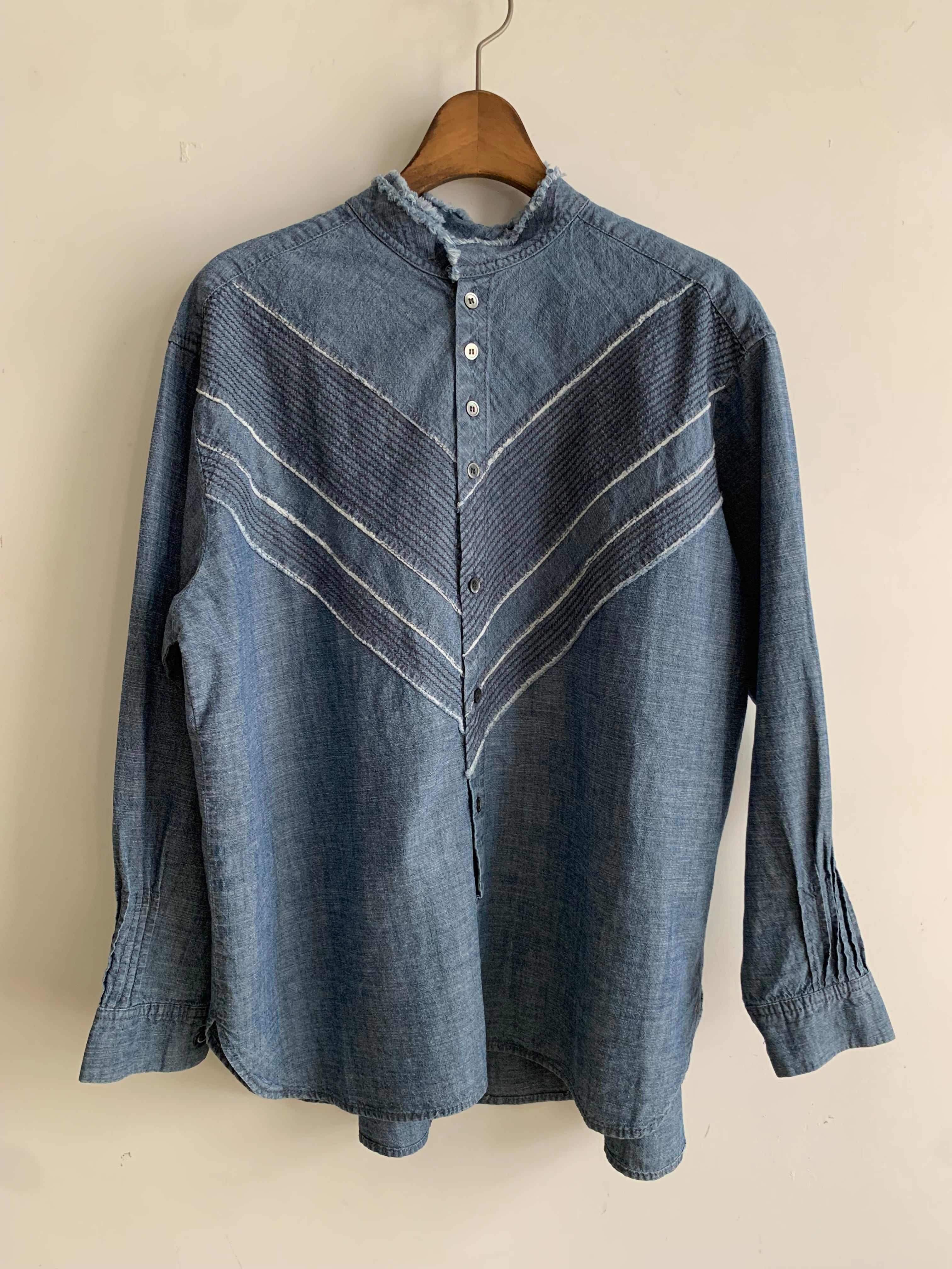 太番のステッチが沢山入ったスラブ糸デニムシャツ。