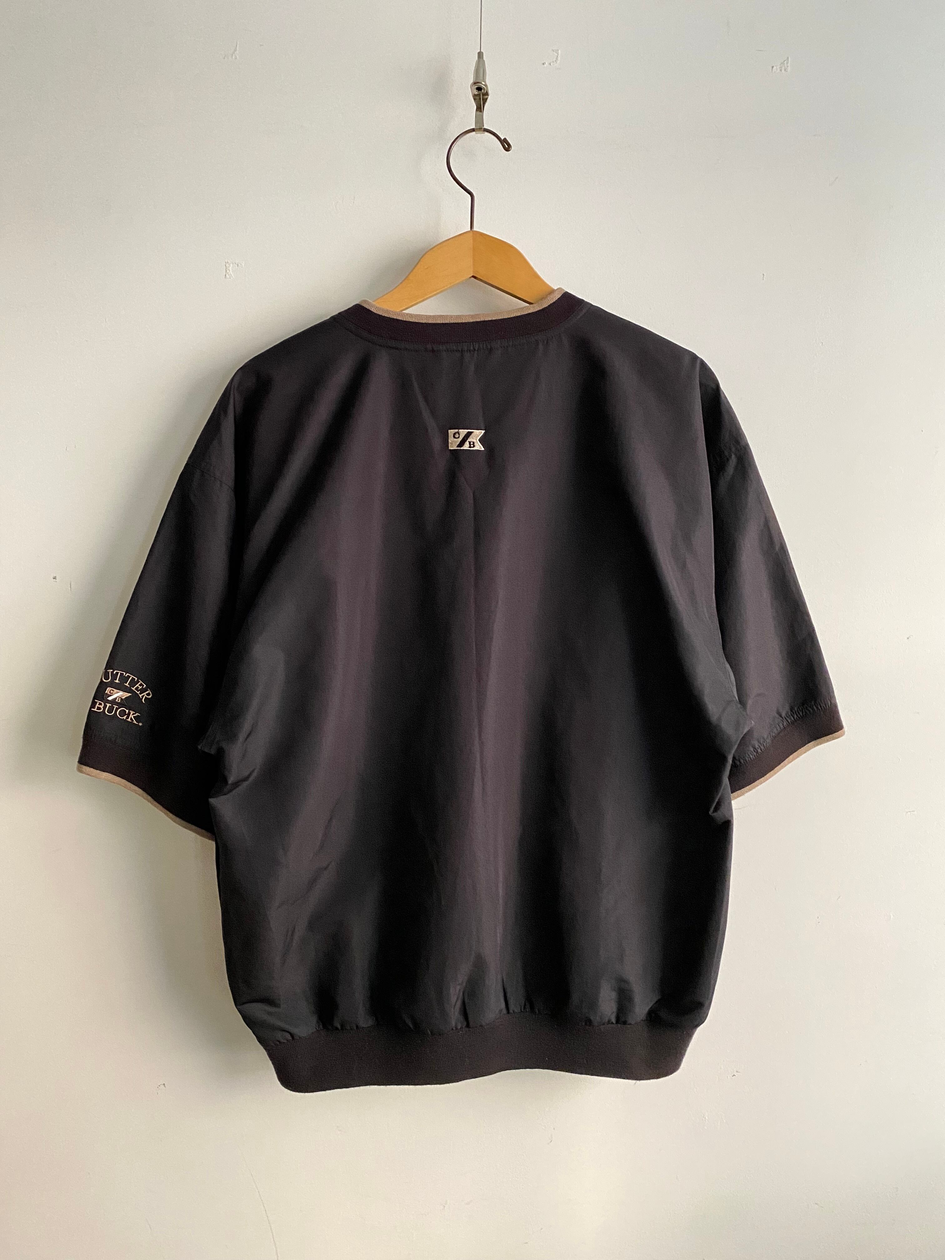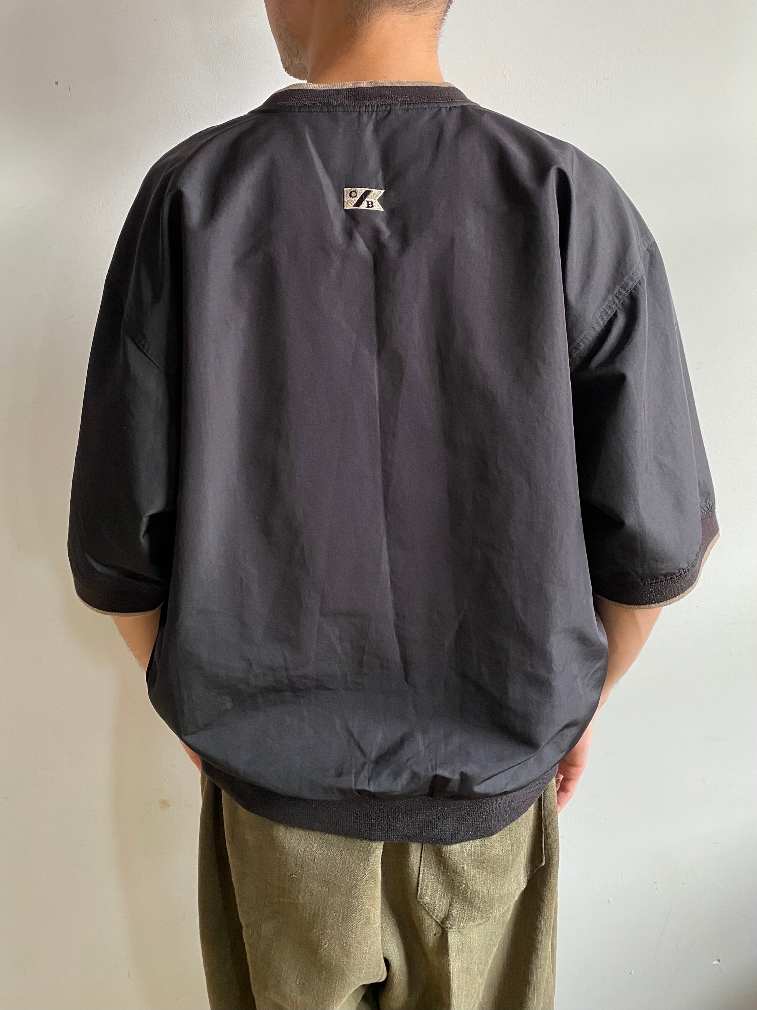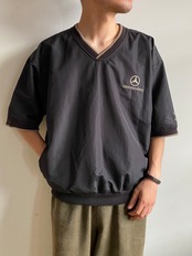 胸部に刺繍でベンツのロゴが施された半袖プルオーバー