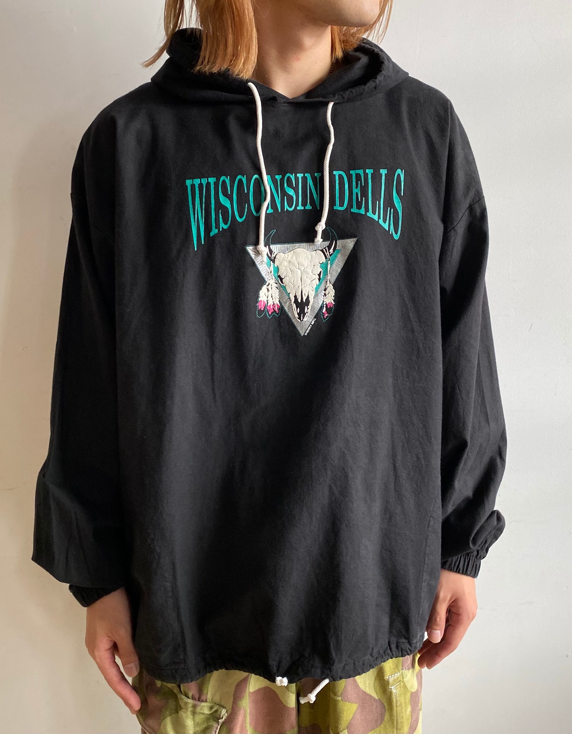 自然豊かでアミューズメントなど観光スポットの多いウィスコンシン・デルズにバッファロースカルを大胆にプリントしたパーカー。