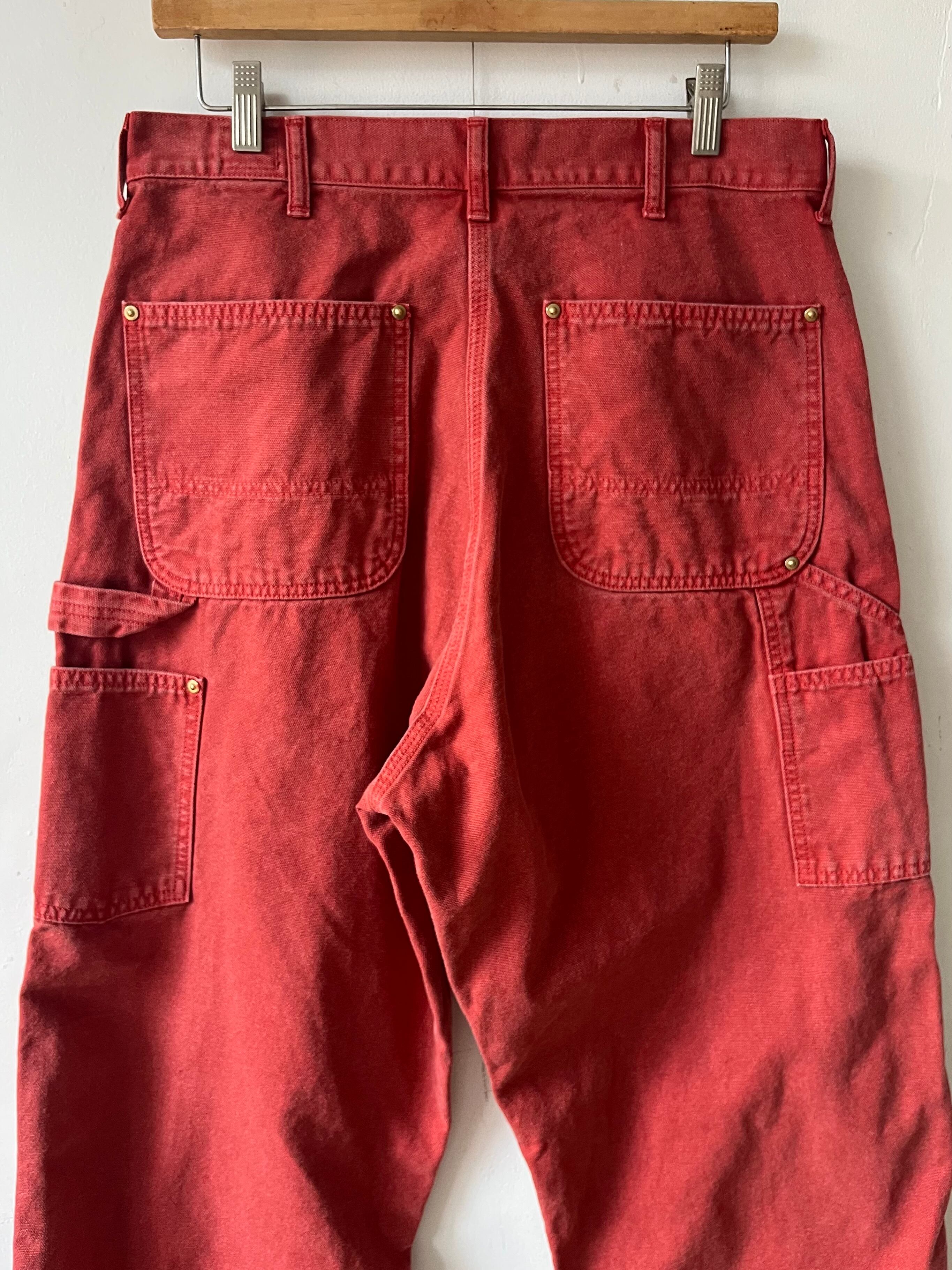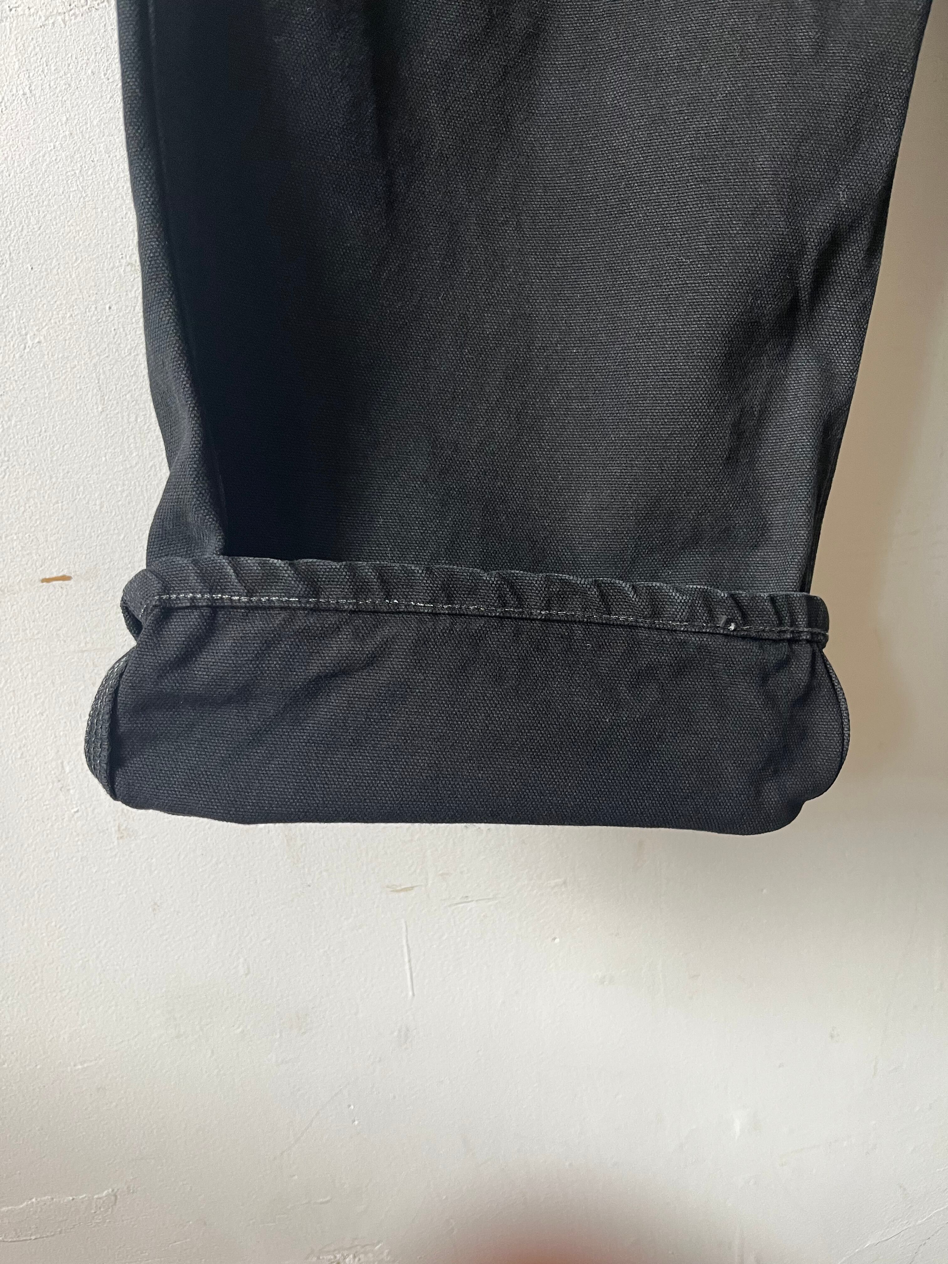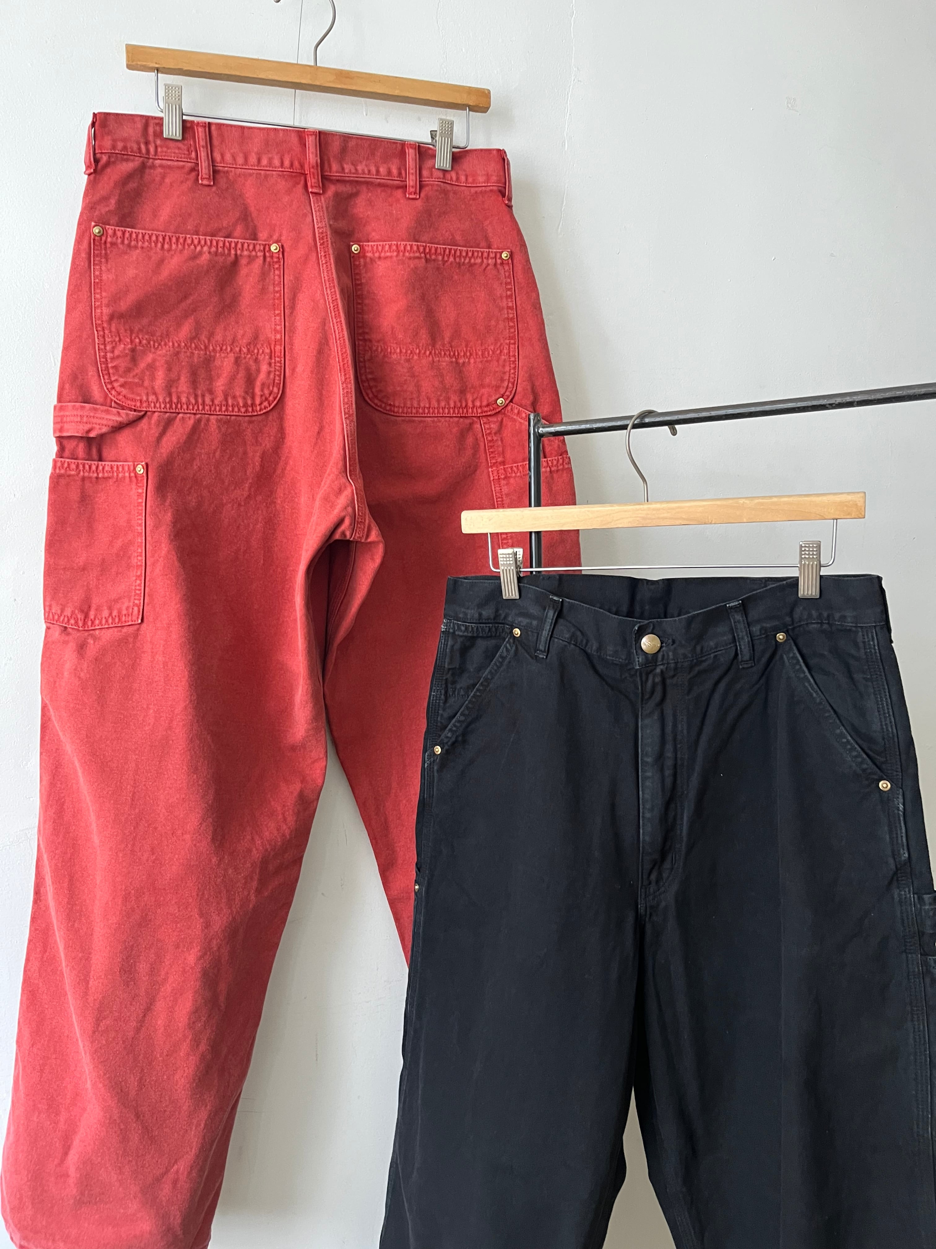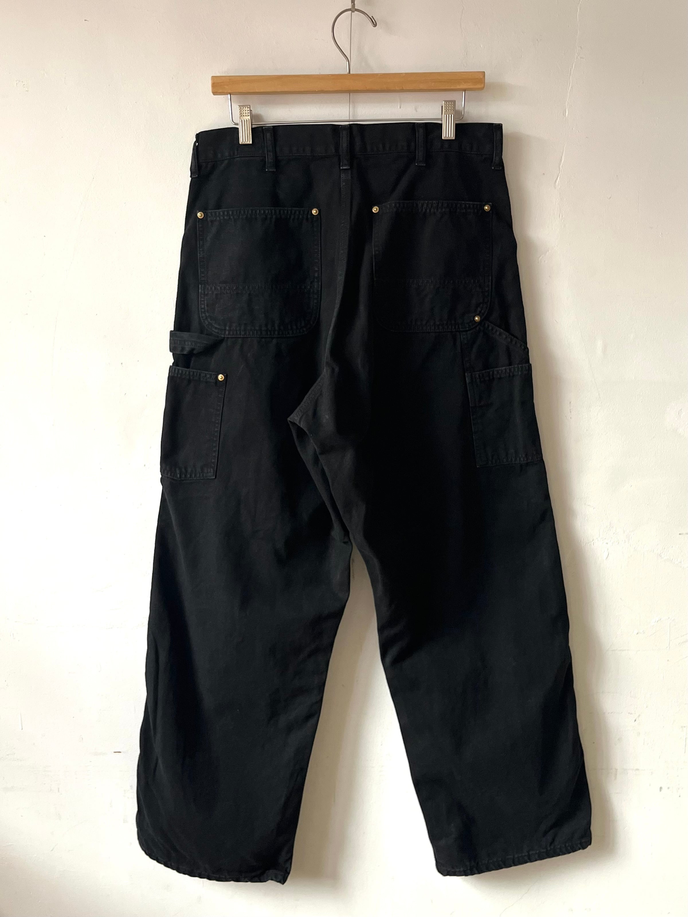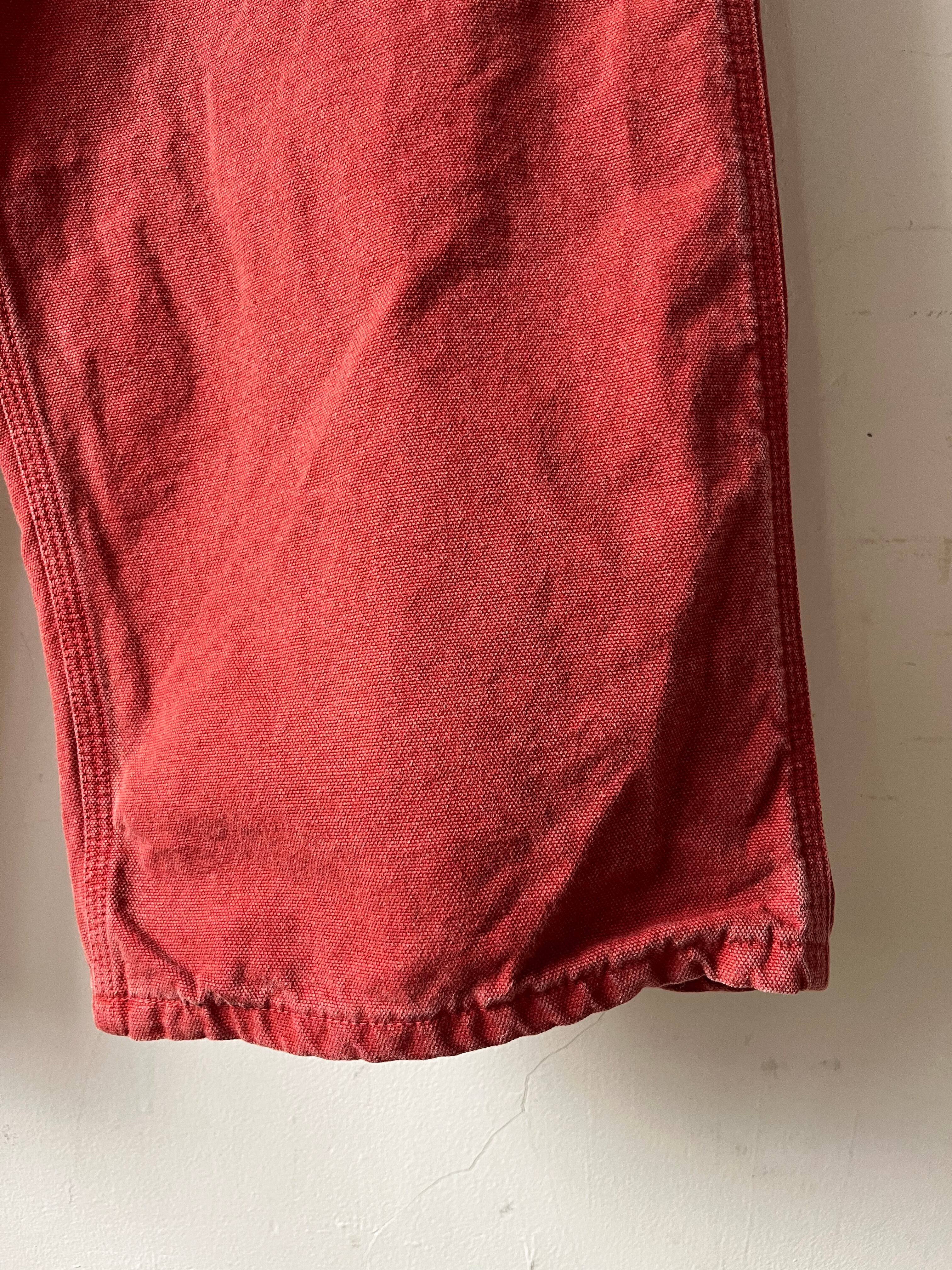 厚みとハリのあるオックス生地を使用したワーク感溢れるペインターパンツ。バックポケットや両脇のスケールポケットには補強カシメが随所に打たれておりバックスタイルが印象的な一本。製品の状態でUSED 加工が施されており全体的に自然なアタリとフェードが雰囲気の良い仕上がり。形は幅にゆとりがありリラックス感のあるダッドフィットになります。