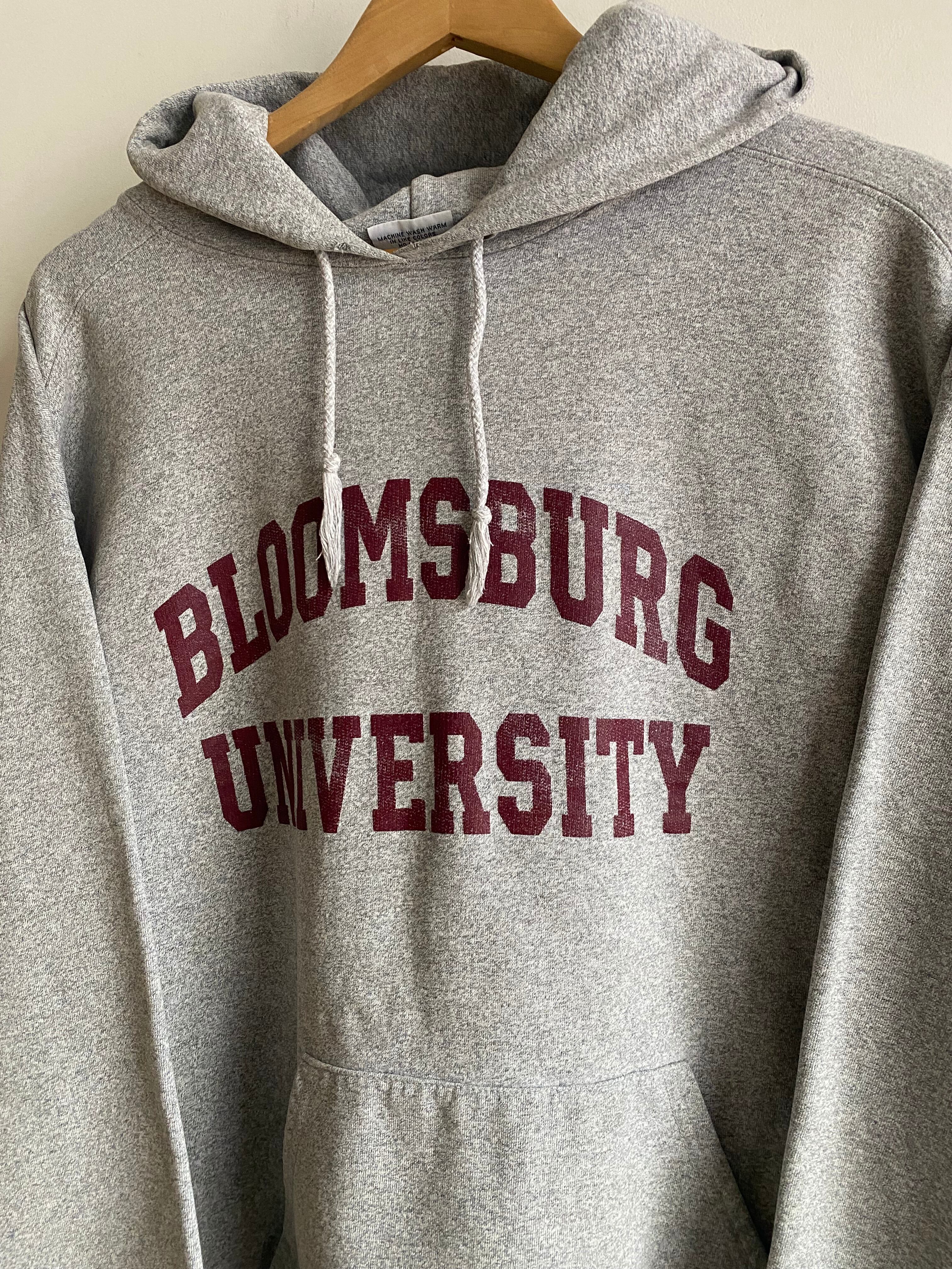 ペンシルベニア州にある、ブルームスバーグ大学がプリントされたフーディ。