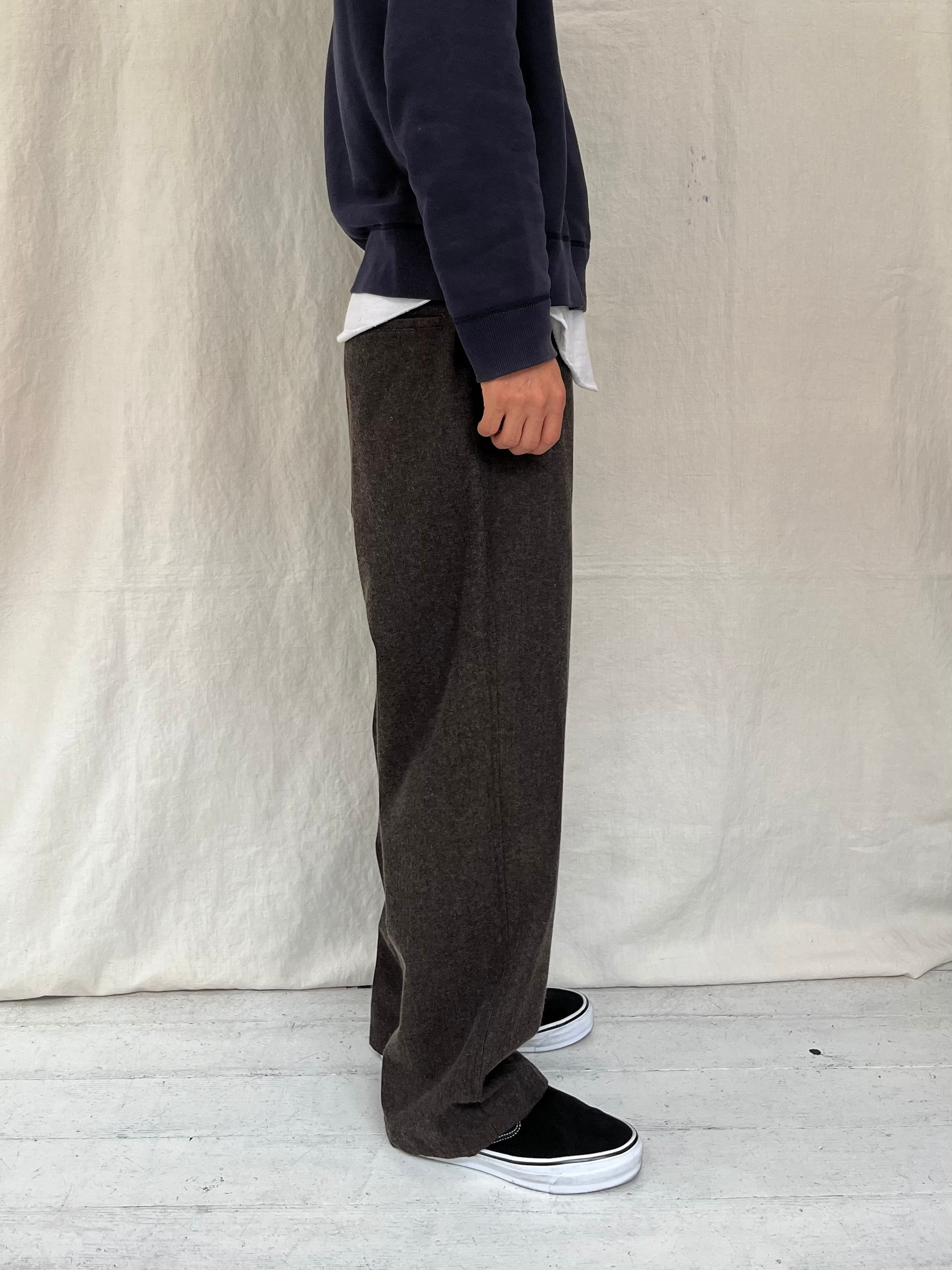 大阪の古生地会社で見つかったウール・綿混生地を使用したパンツ。やや厚みがあり毛羽感のある生地表面、茶黒系の色合いで温かみのある雰囲気の良いヘリンボーン柄です。形はヘルスのイージーパンツ#3型、ブランド特有のゆとり多め、幅感のあるシルエットです。