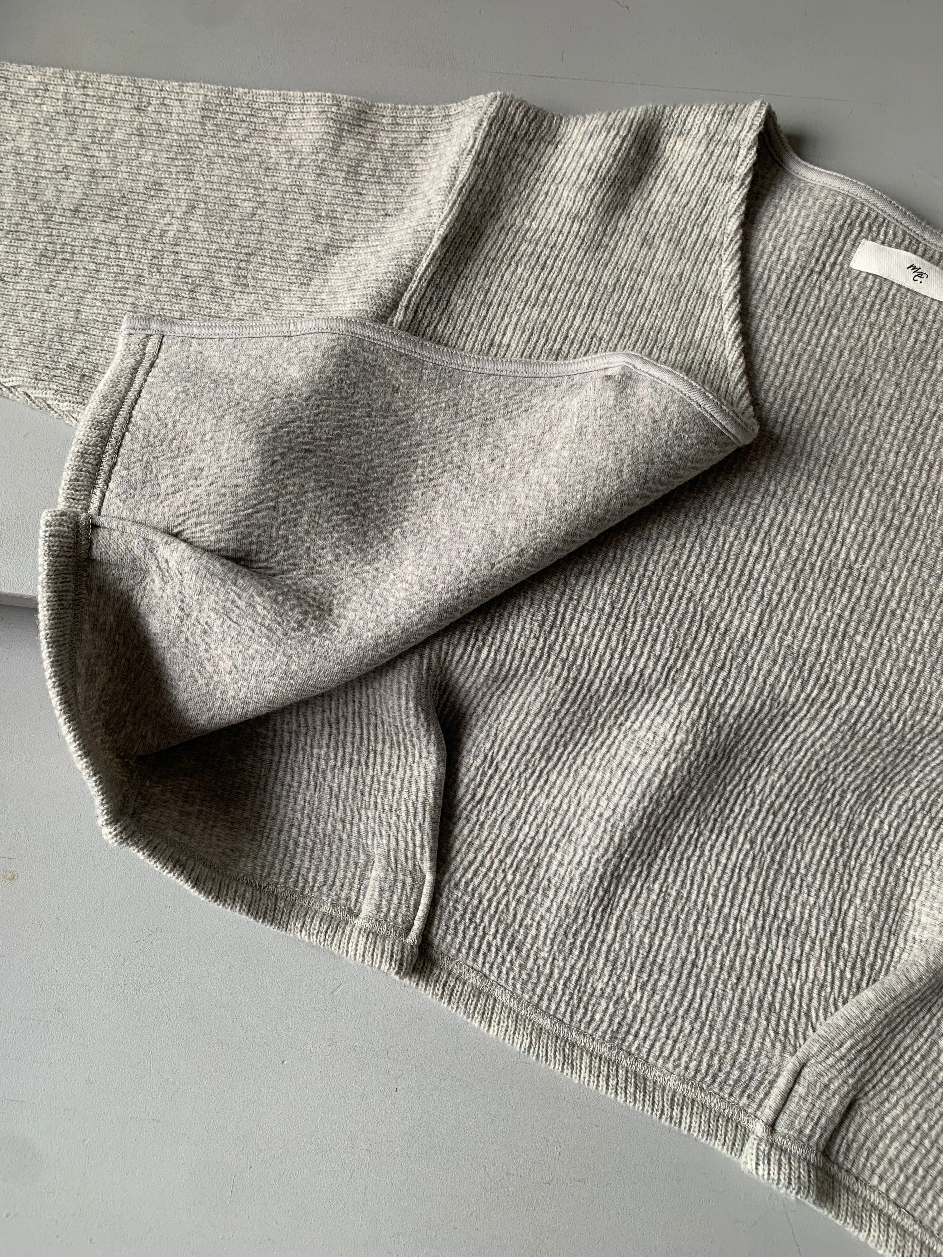 外側はウール、内側はコットンの二重で編むことで暖かさと肌あたりの良さを両立したニットカーディガン。