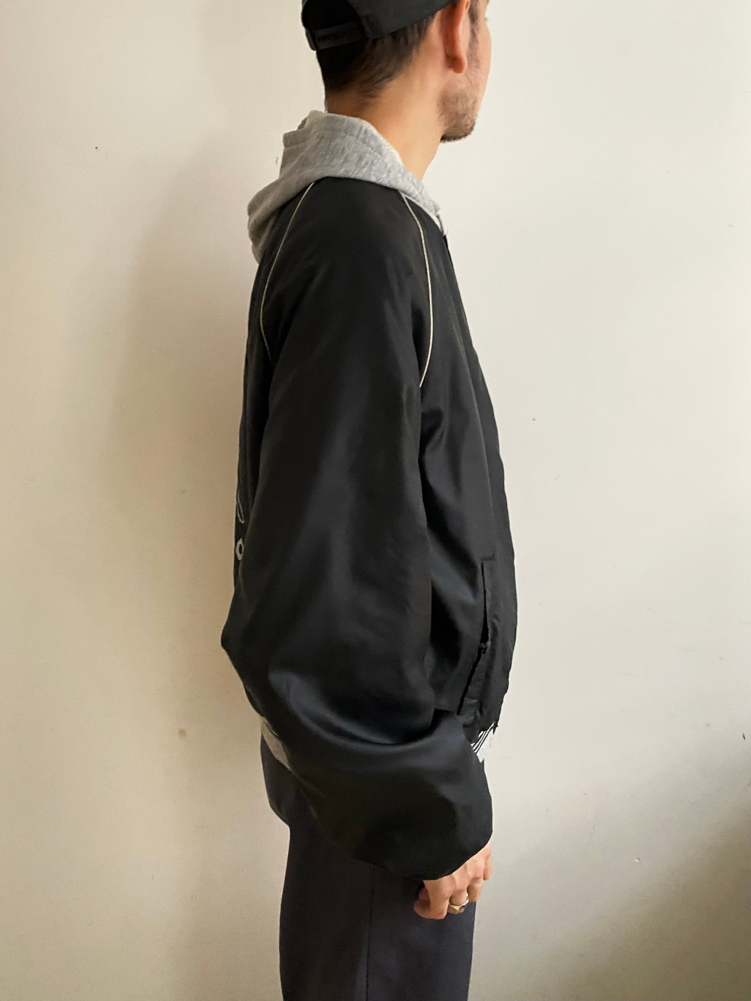 スタジアムジャケットにジップフーディがドッキングされた面白いデザイン。