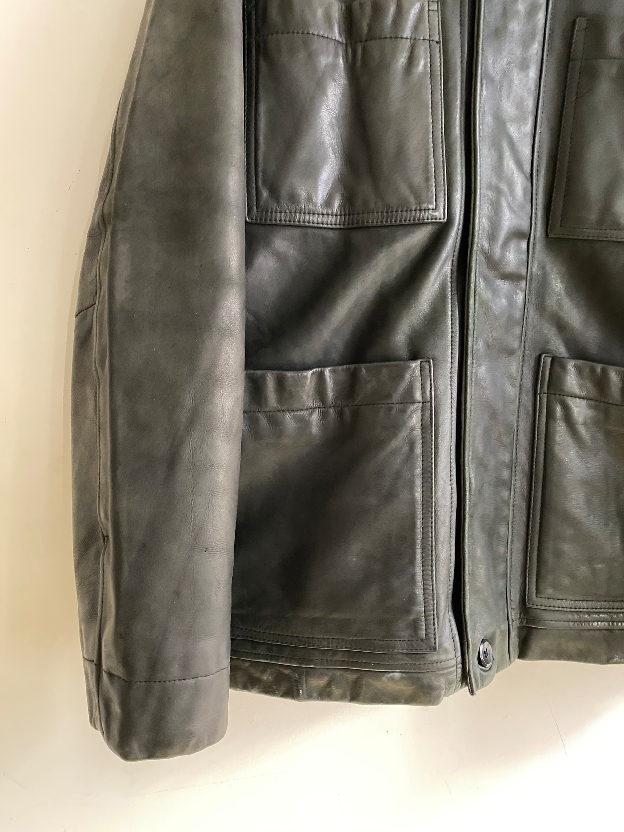 フロントの大きなポケットデザインがワークウェアのルーツを感じさせつつも、シンプルで都会的な印象に。