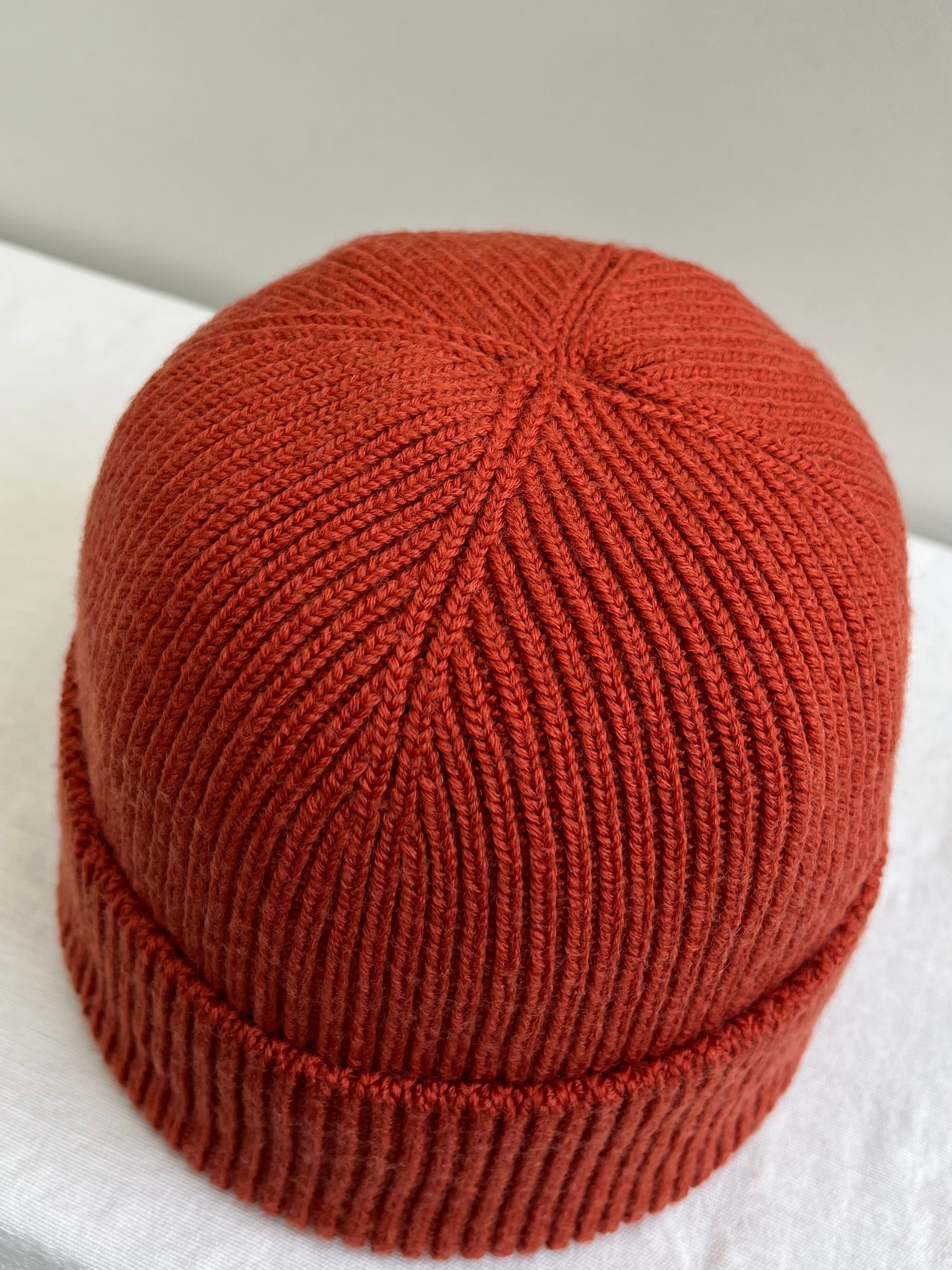 防縮されたメリノウールを素材に縫い目の無いホールガーメント編み機で作られたビーニー。肌触りが柔らかく縫い目が無いためゴワつかず快適な被り心地で被った時の形状も非常に綺麗。やや薄めの厚みで高級感もありでカジュアルな装いは勿論、フォーマルよりのスタイリングにも合わせやすそうな印象。