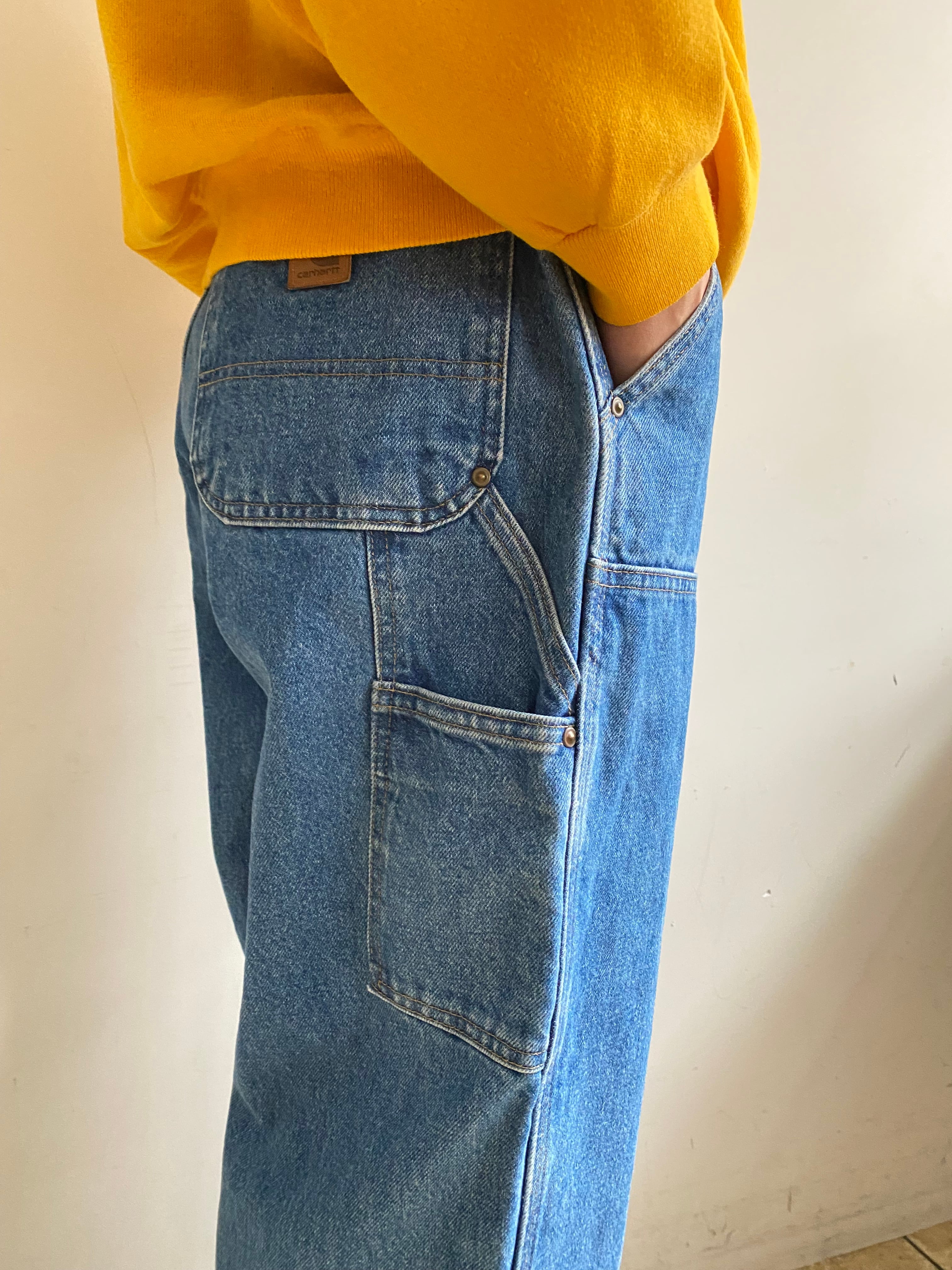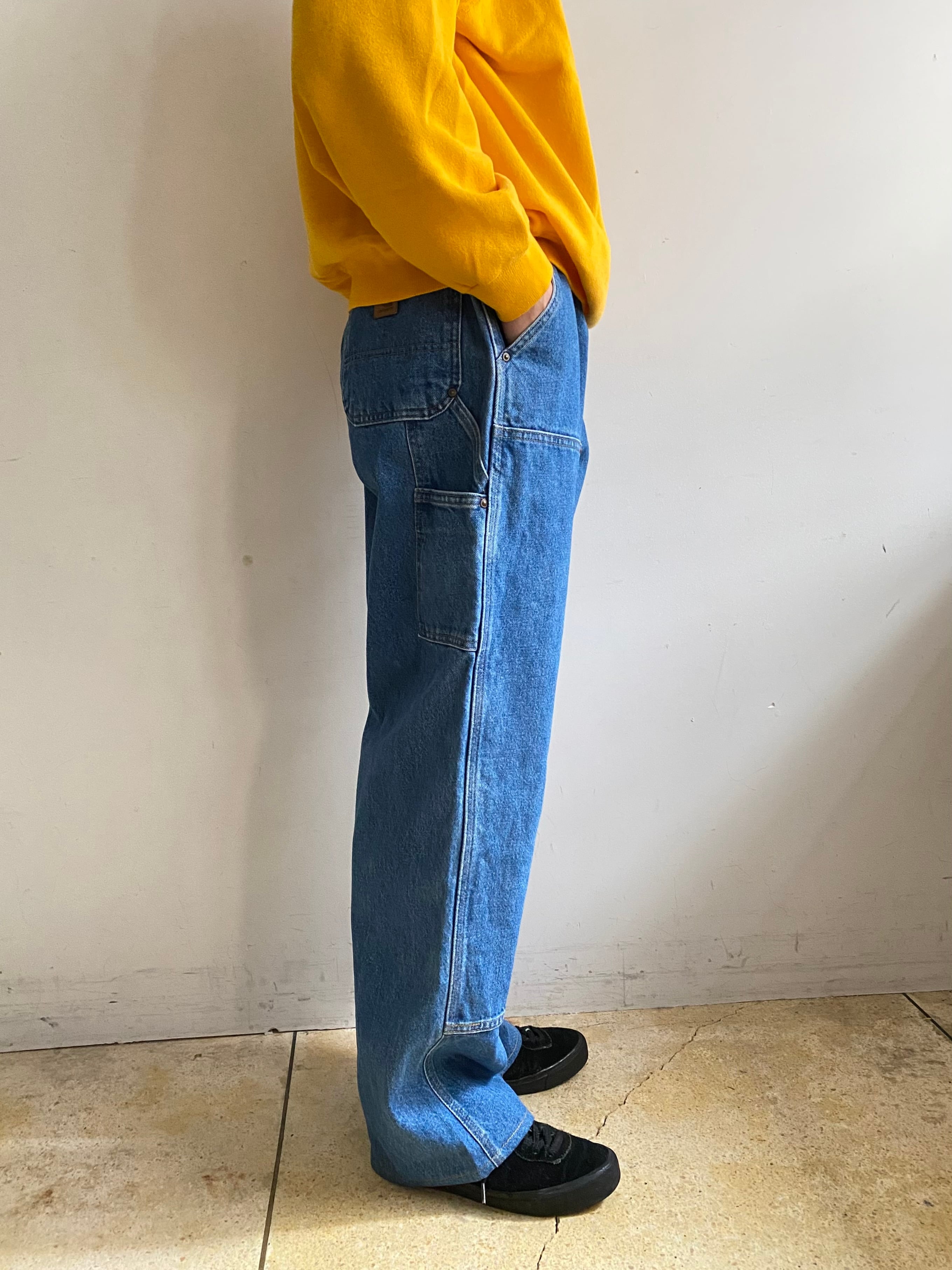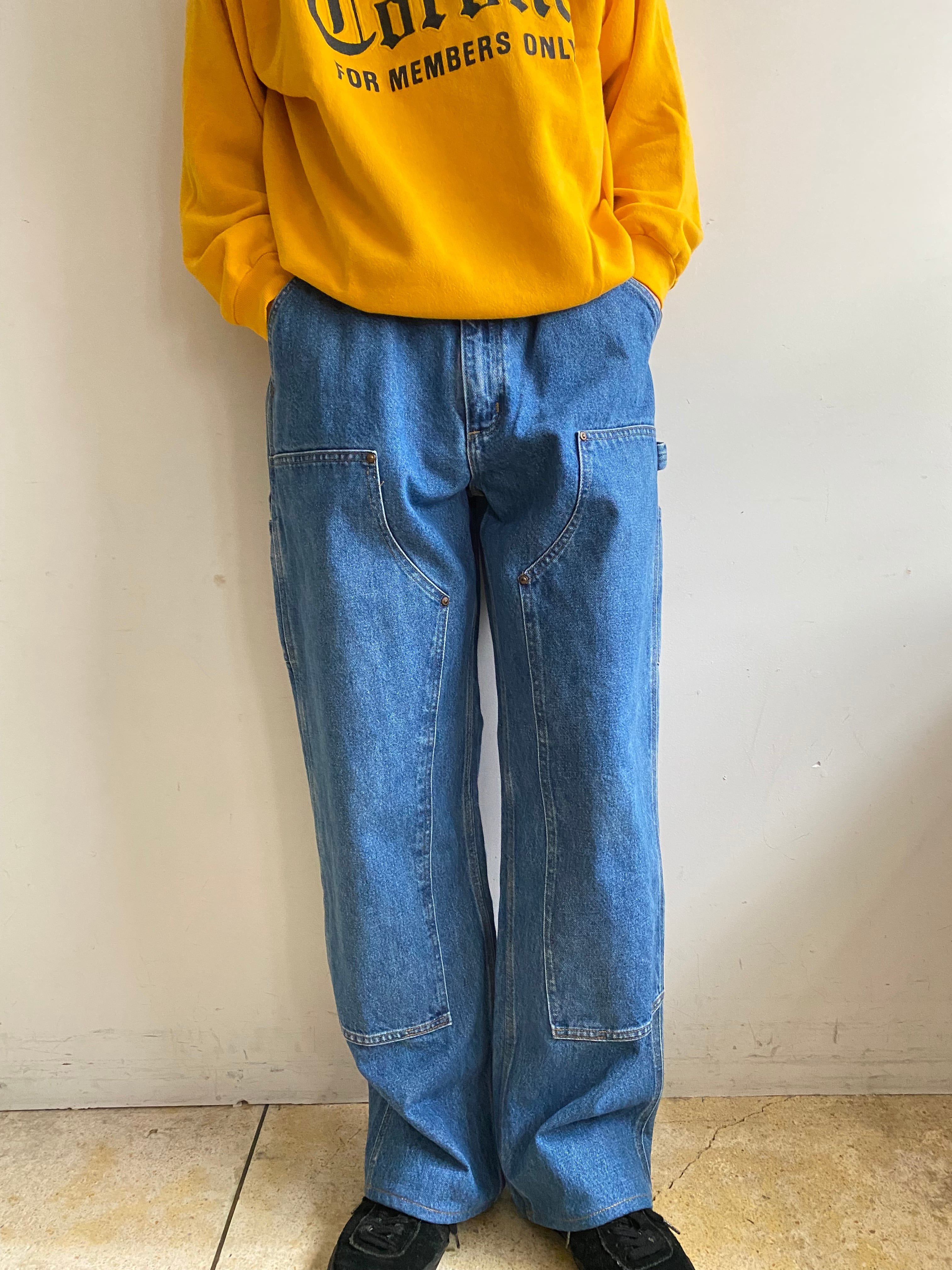 タフなワークスタイルを象徴する、Carharttのダブルニーデニムパンツ。