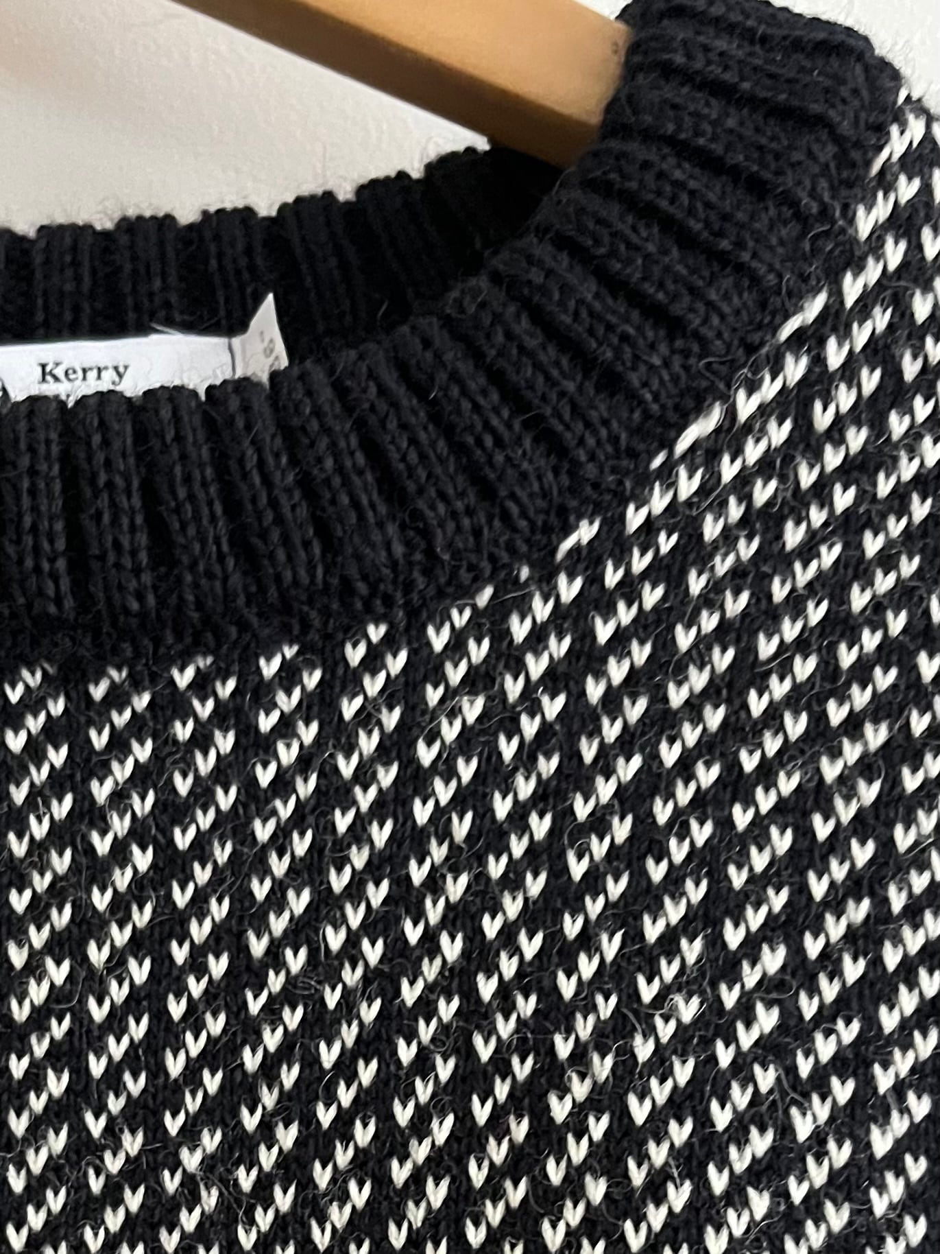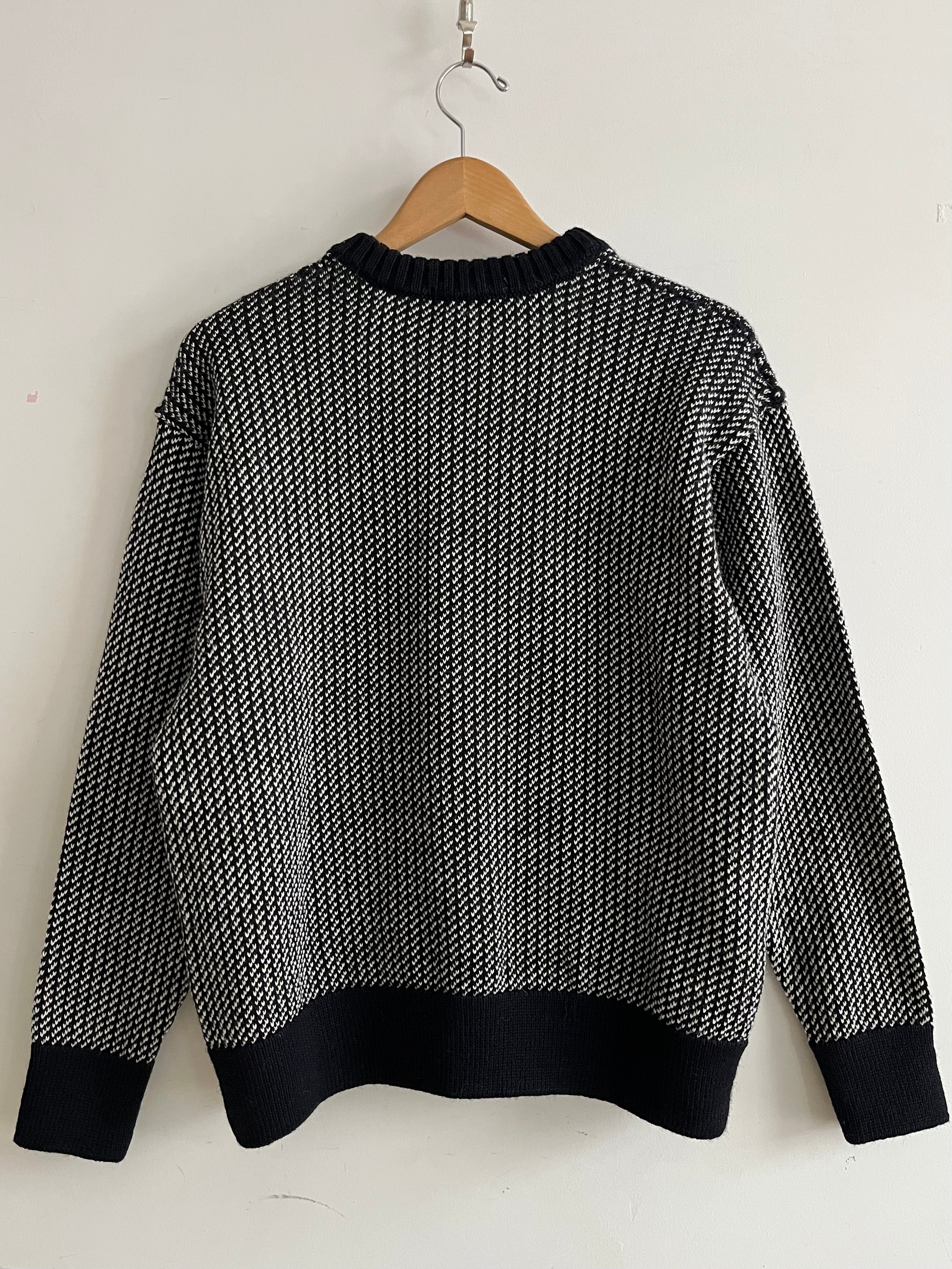 伝統的なバーズアイ柄が細かく編み表されたクルーネックニット。