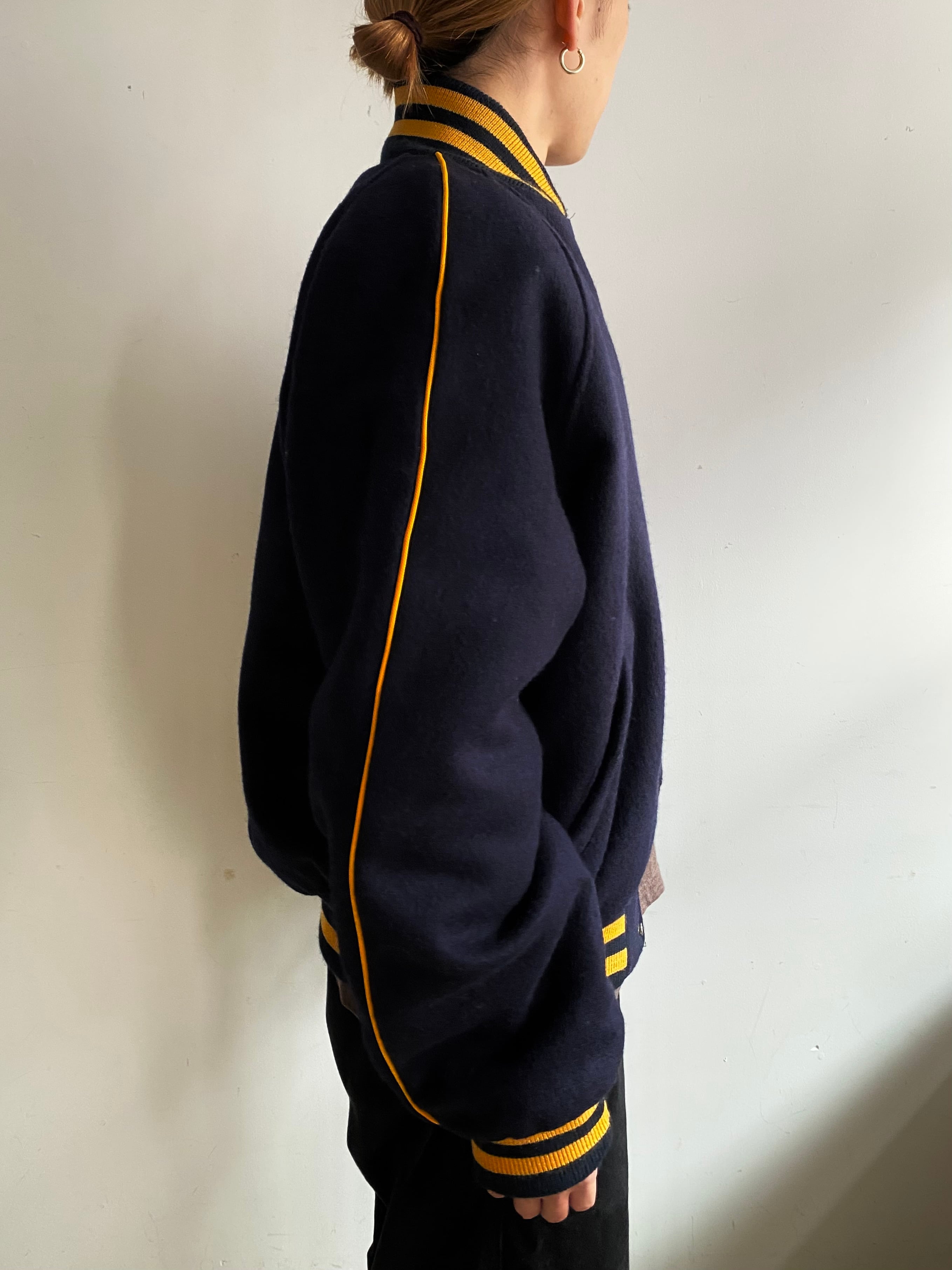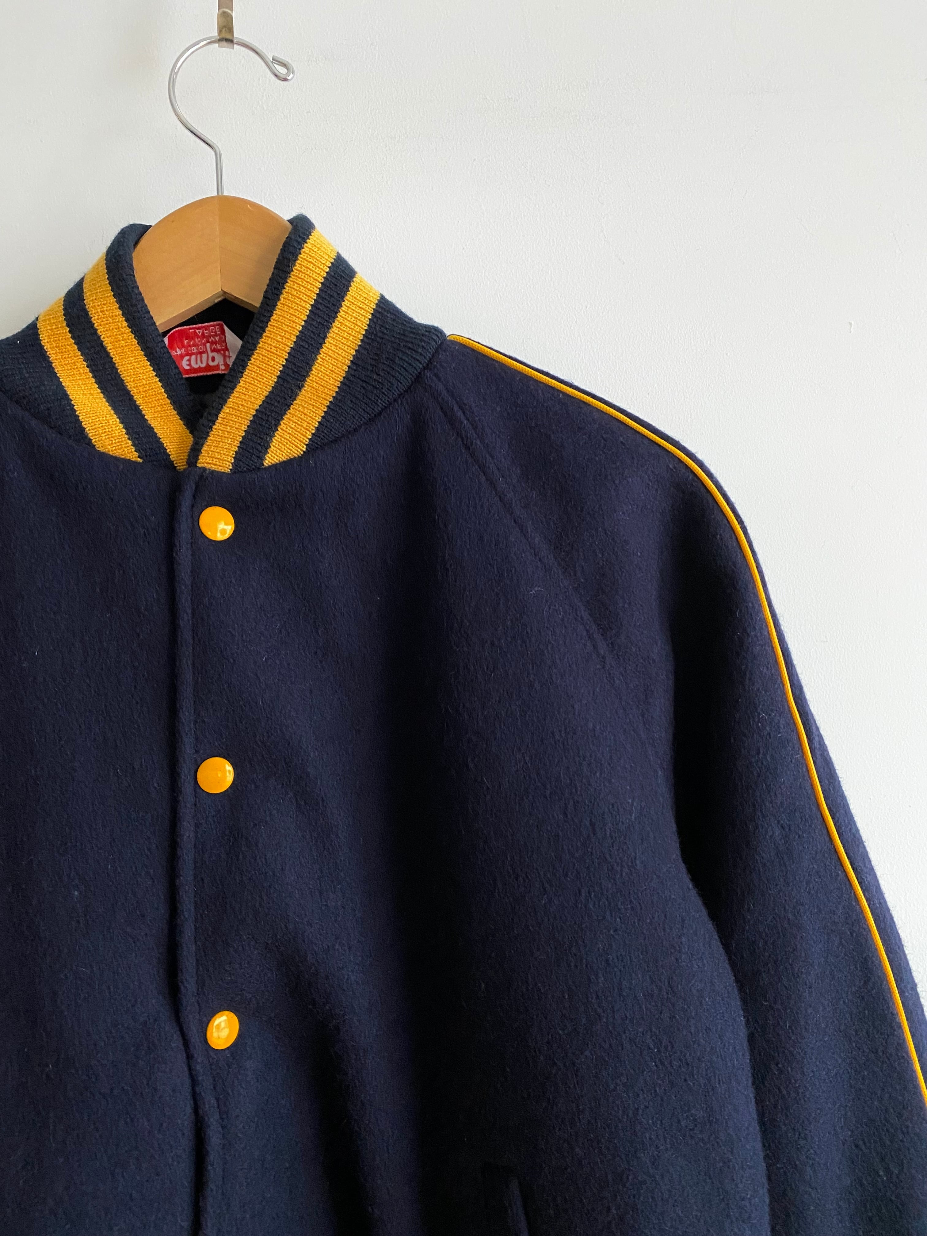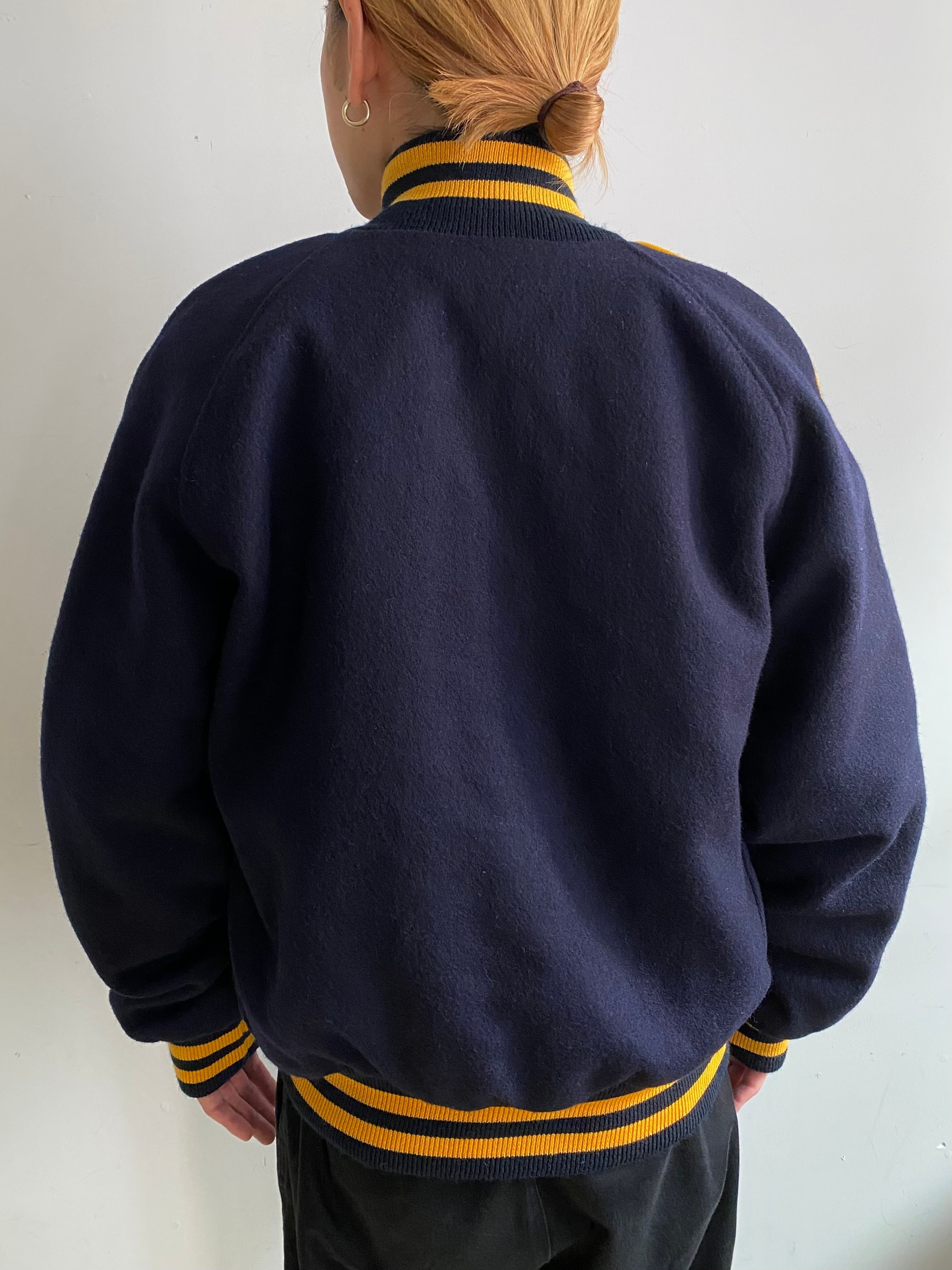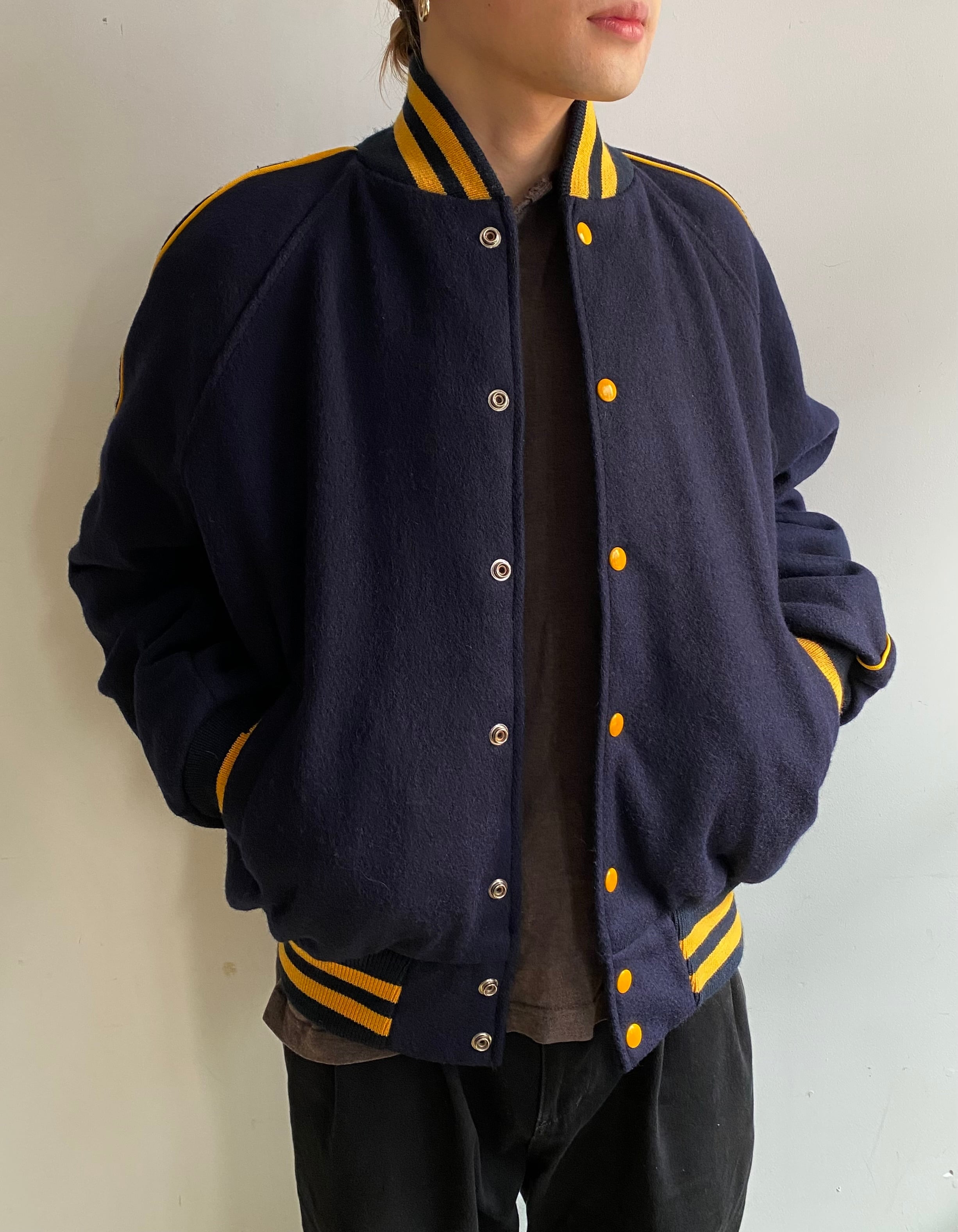 黄色とネイビーの配色が絶妙に良いスタジアムジャケット。