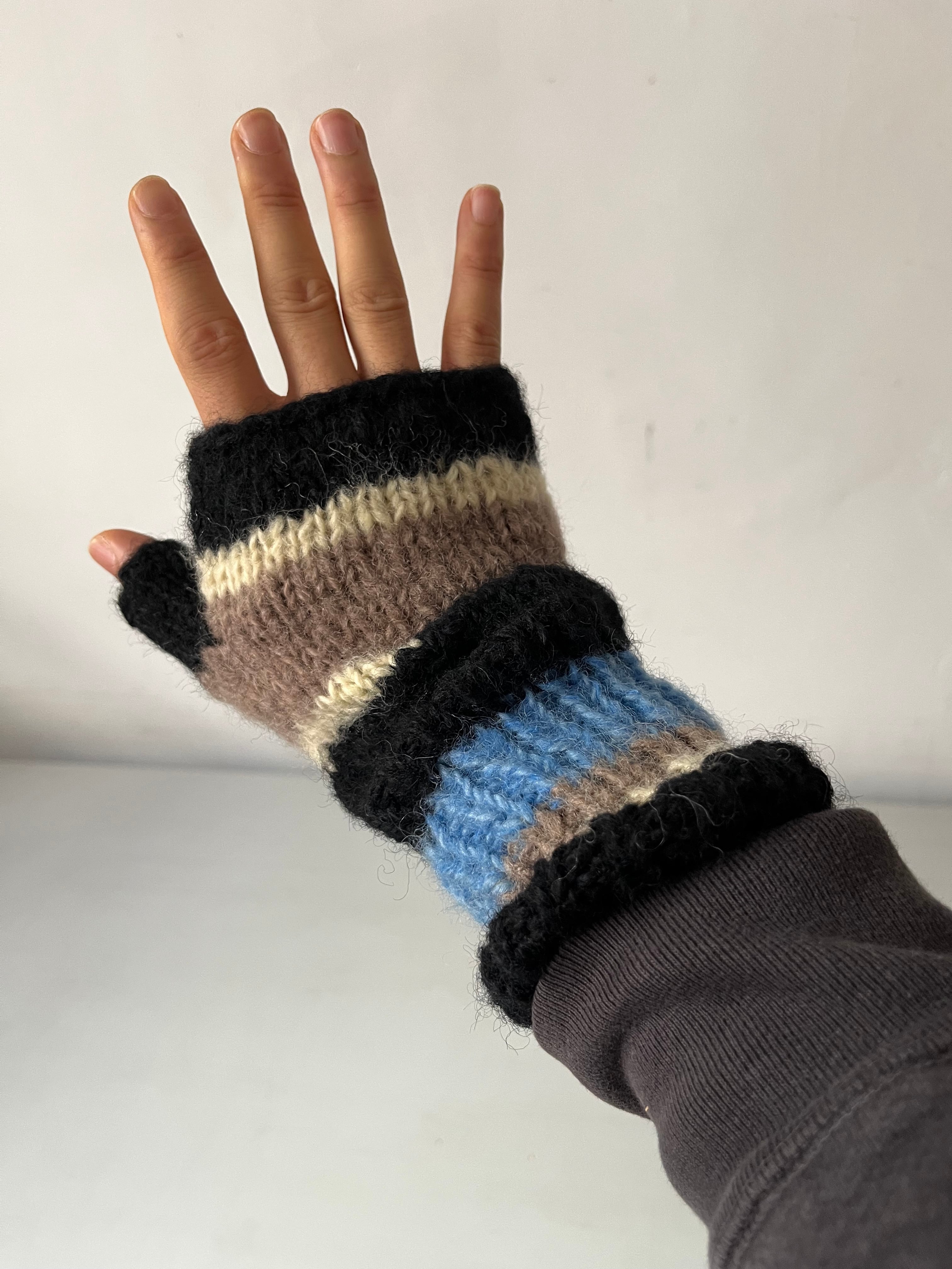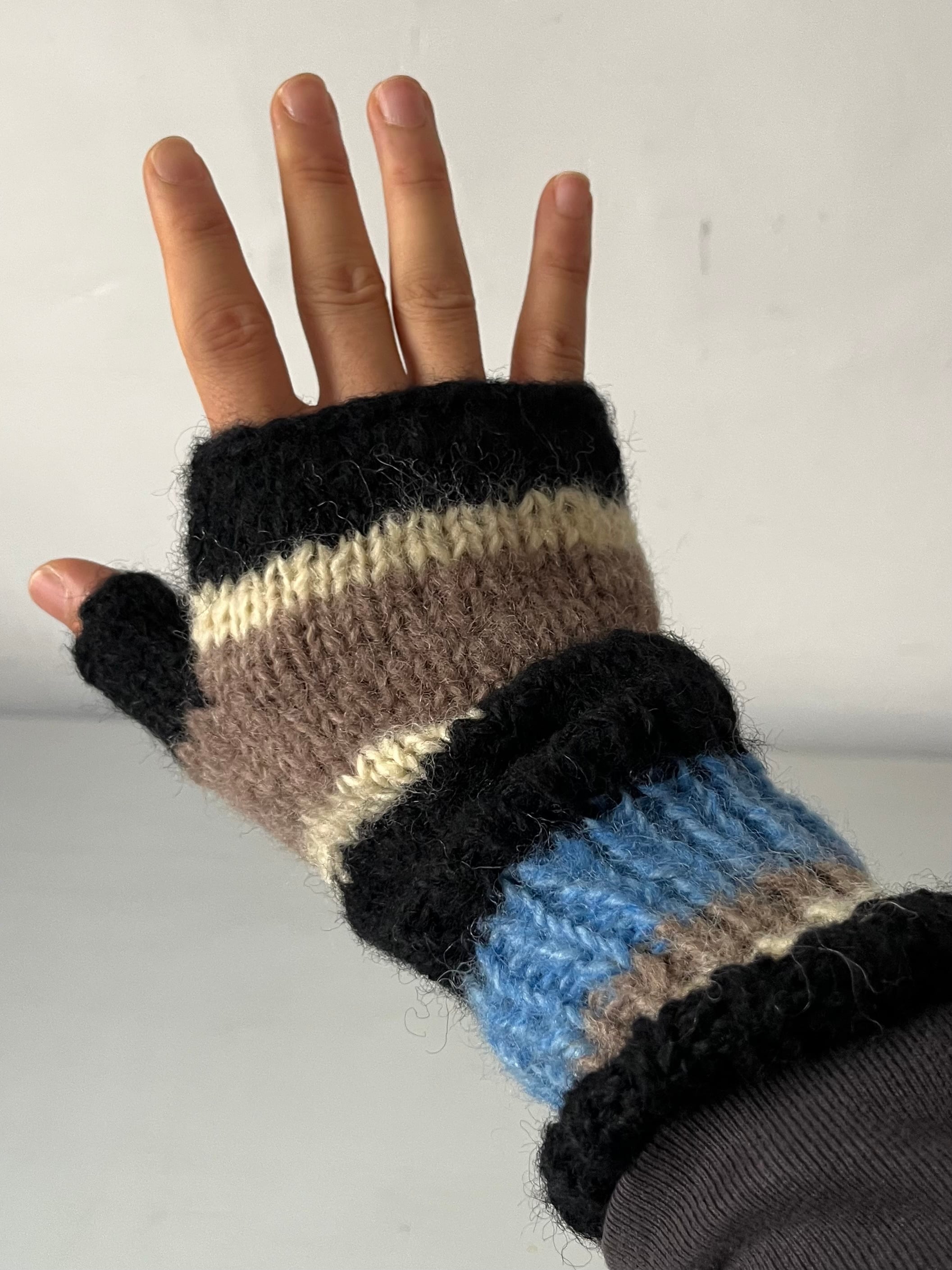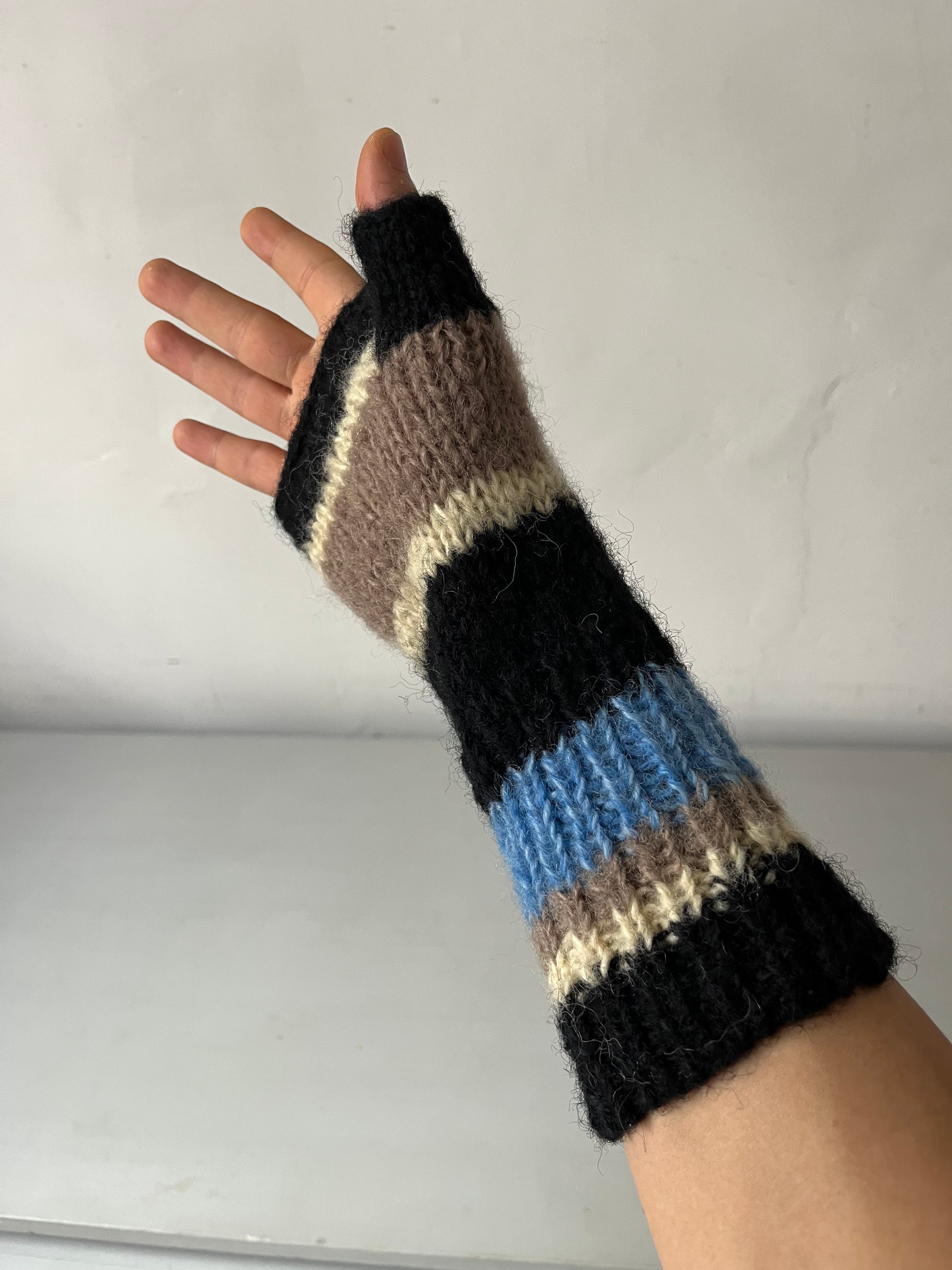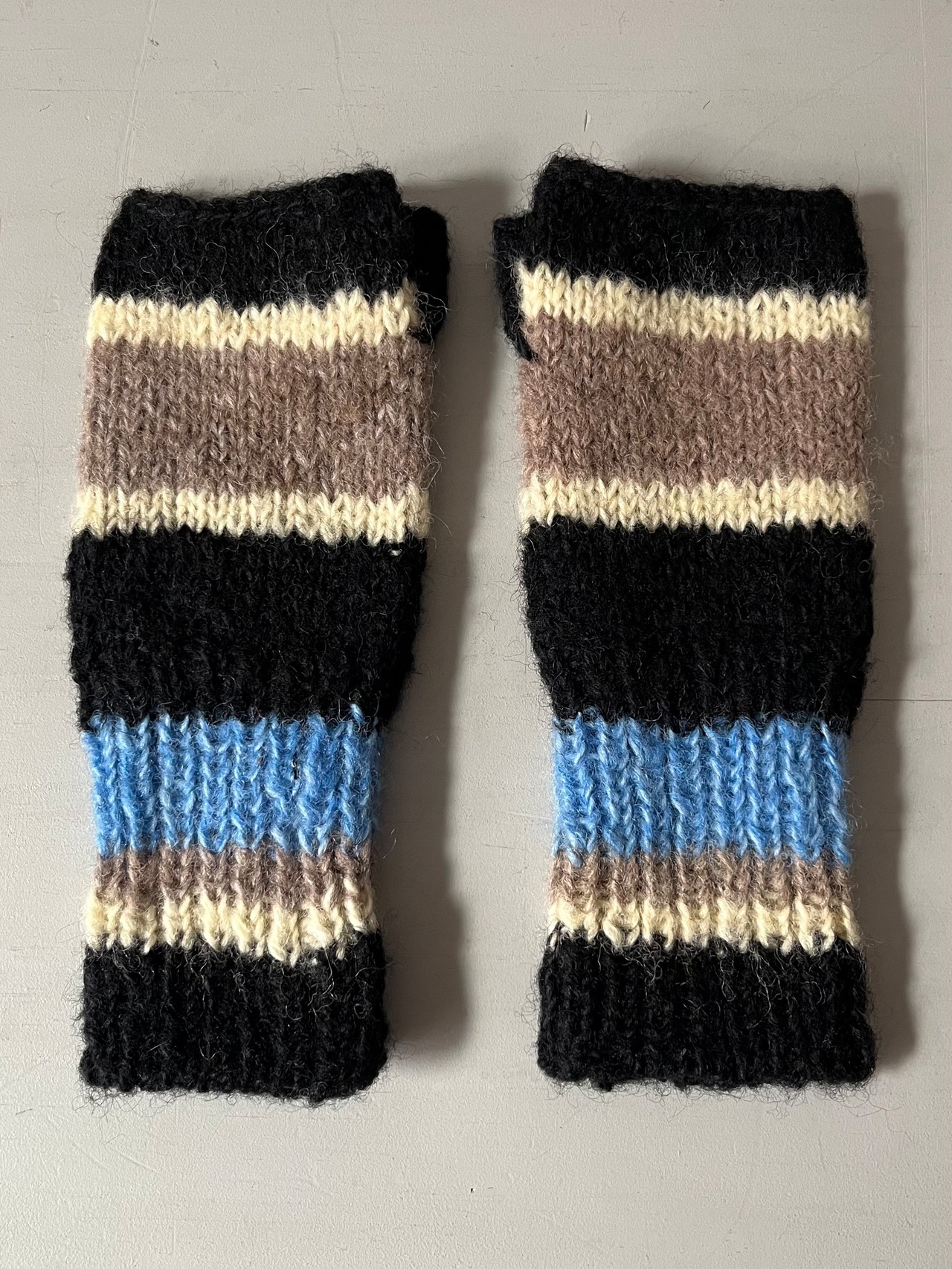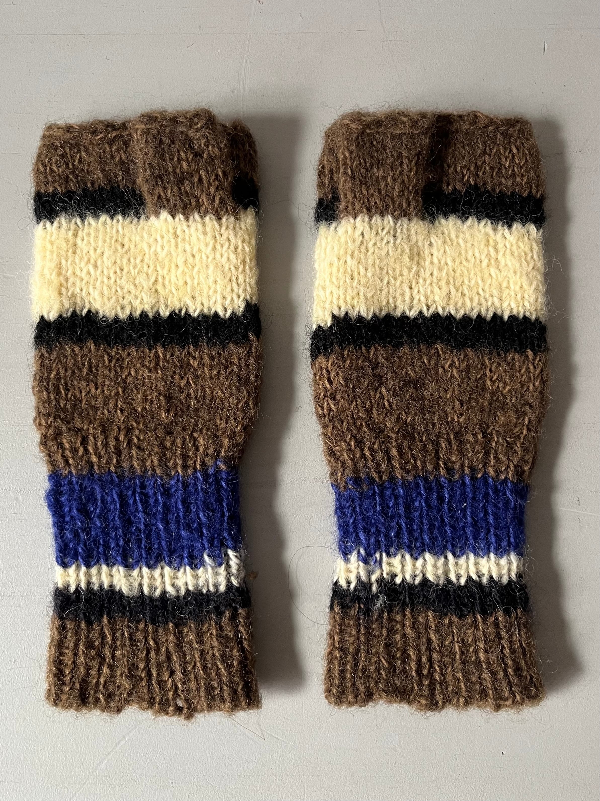 ウールとモヘア混紡のニット素材を使用した指出しグローブ。ライン部分の配色が良い雰囲気、防寒は勿論コーディネートのアクセントに丁度良い一品。同素材の「HAND KNIT LINE BALACLAVA」とのセットもお勧めです。