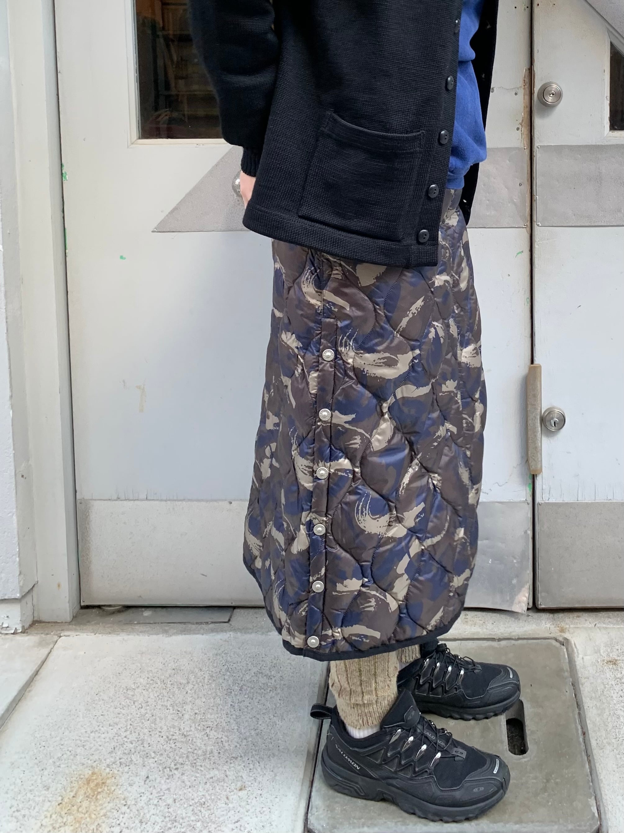 柔らかく張りのある生地に800FLPのダウンで軽く、分厚すぎない程よいボリューム感。サイドボタンでスリットを入れられるので、シーンに合わせて足捌きよく履いていただけます◎