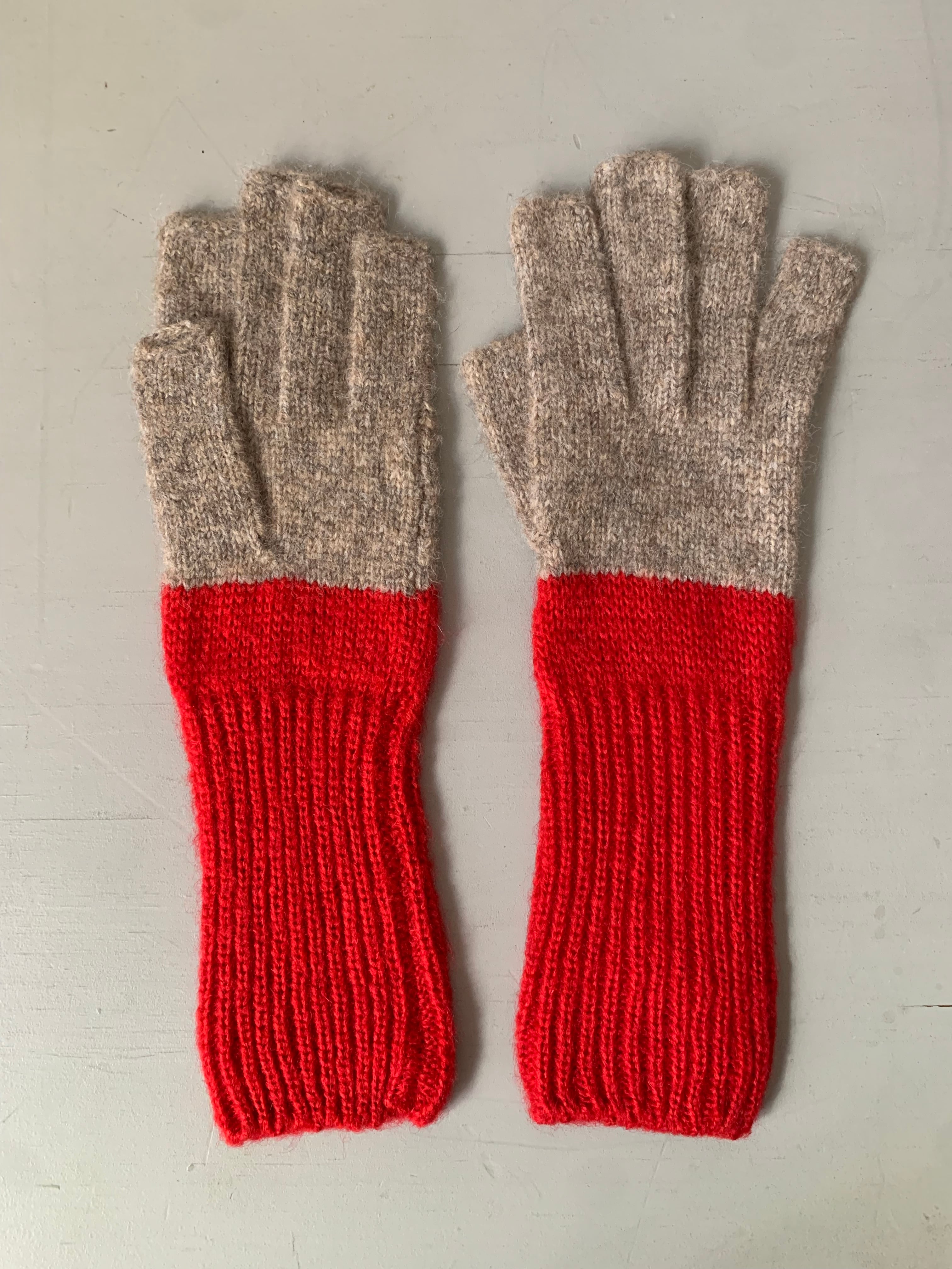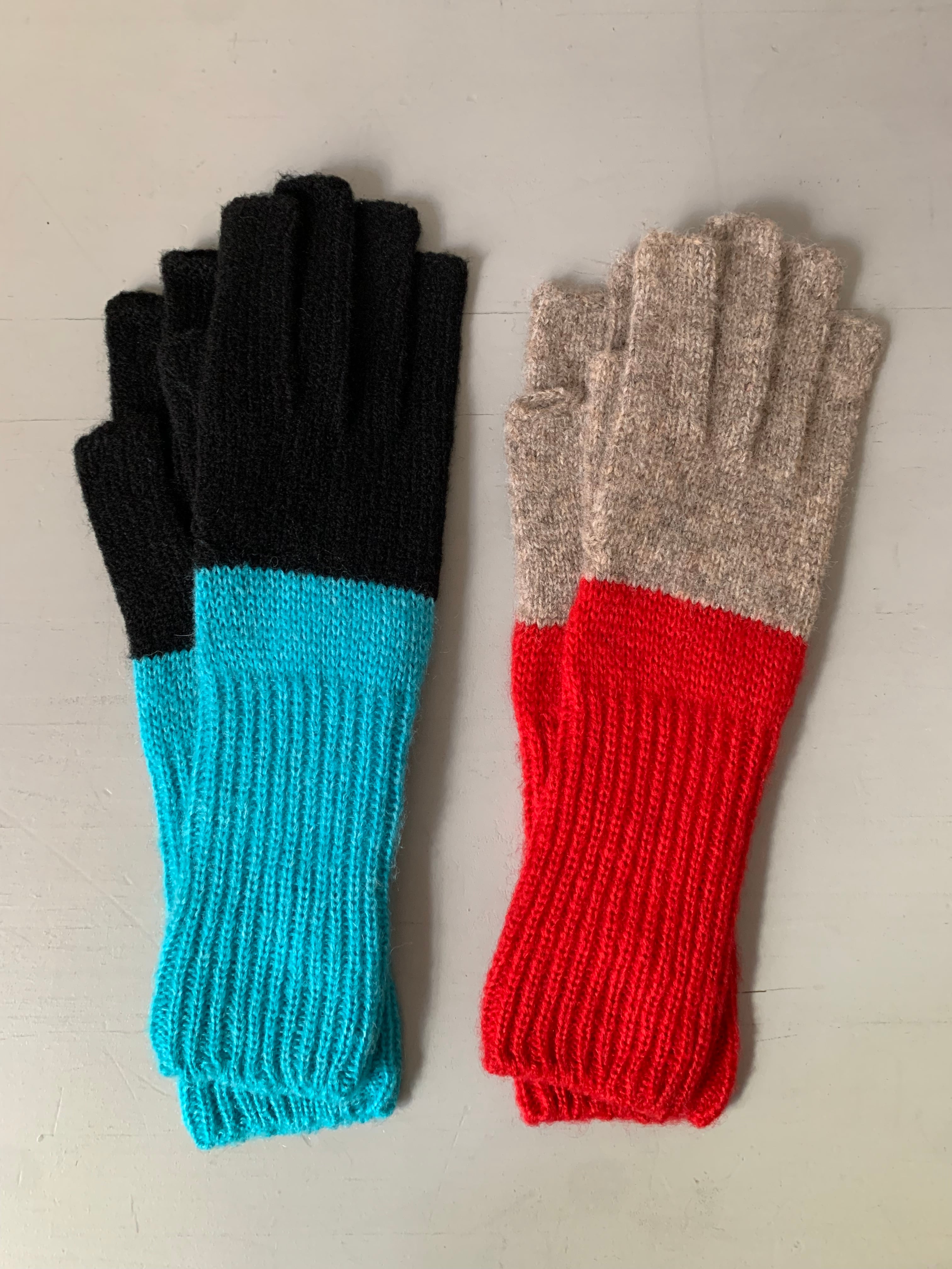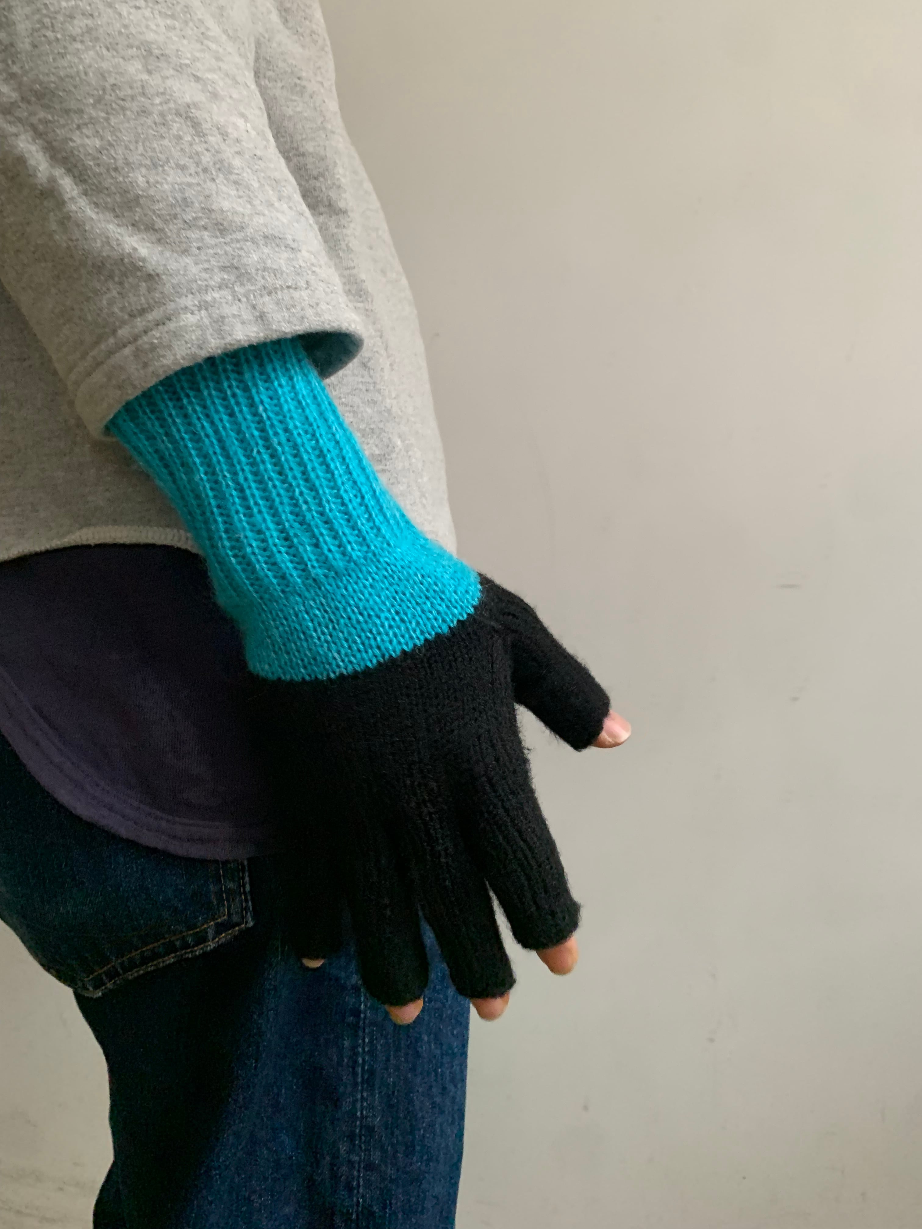 袖口から発色の良いカラーがチラッと覗いて程よいアクセントに。指先をギリギリまで覆っているので暖かく、スマホなどの操作ができて便利なアイテムです。また丈の長いリブで手首まで暖かく守ってくれます◎