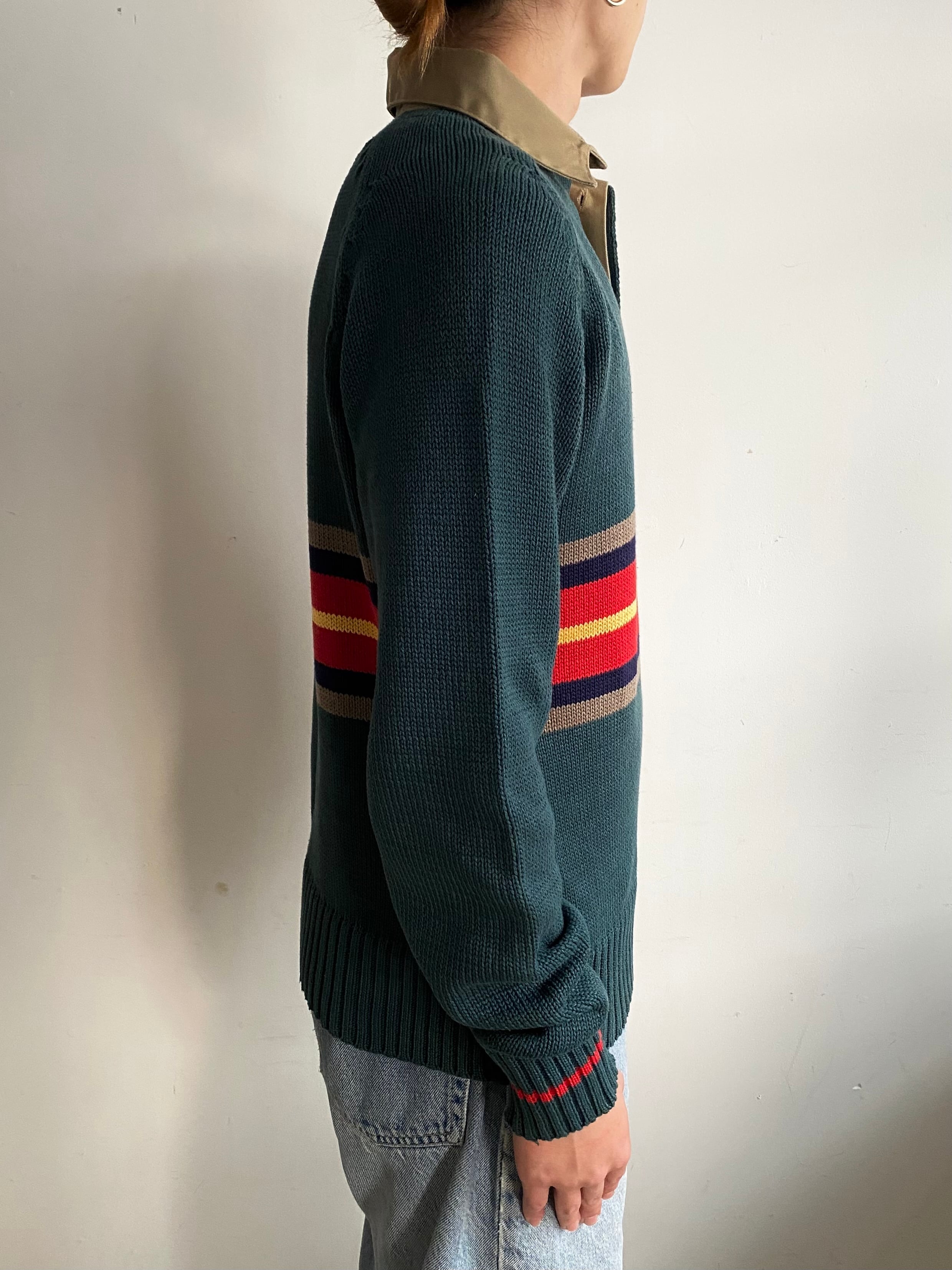 ボディと袖先のラインが主張しすぎず、絶妙に良いポロセーター。