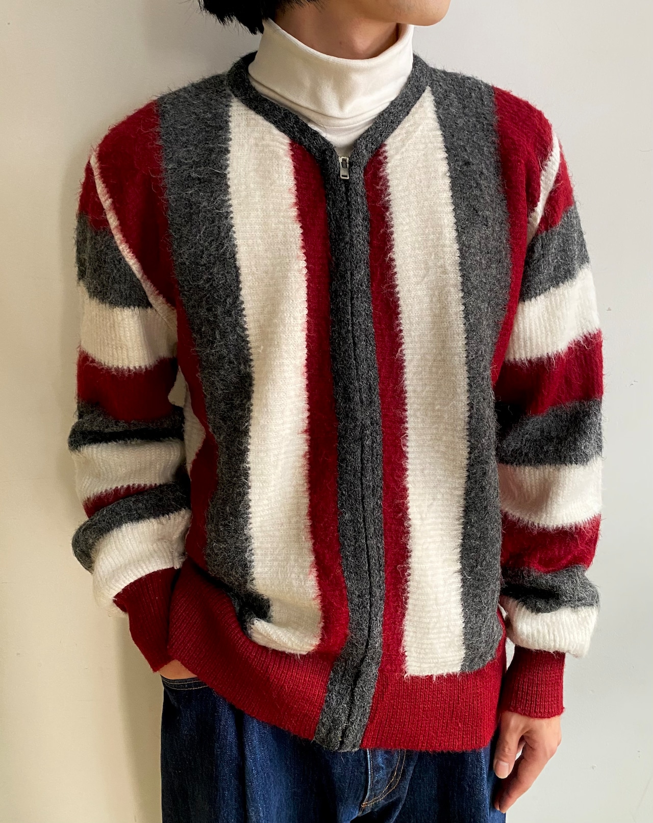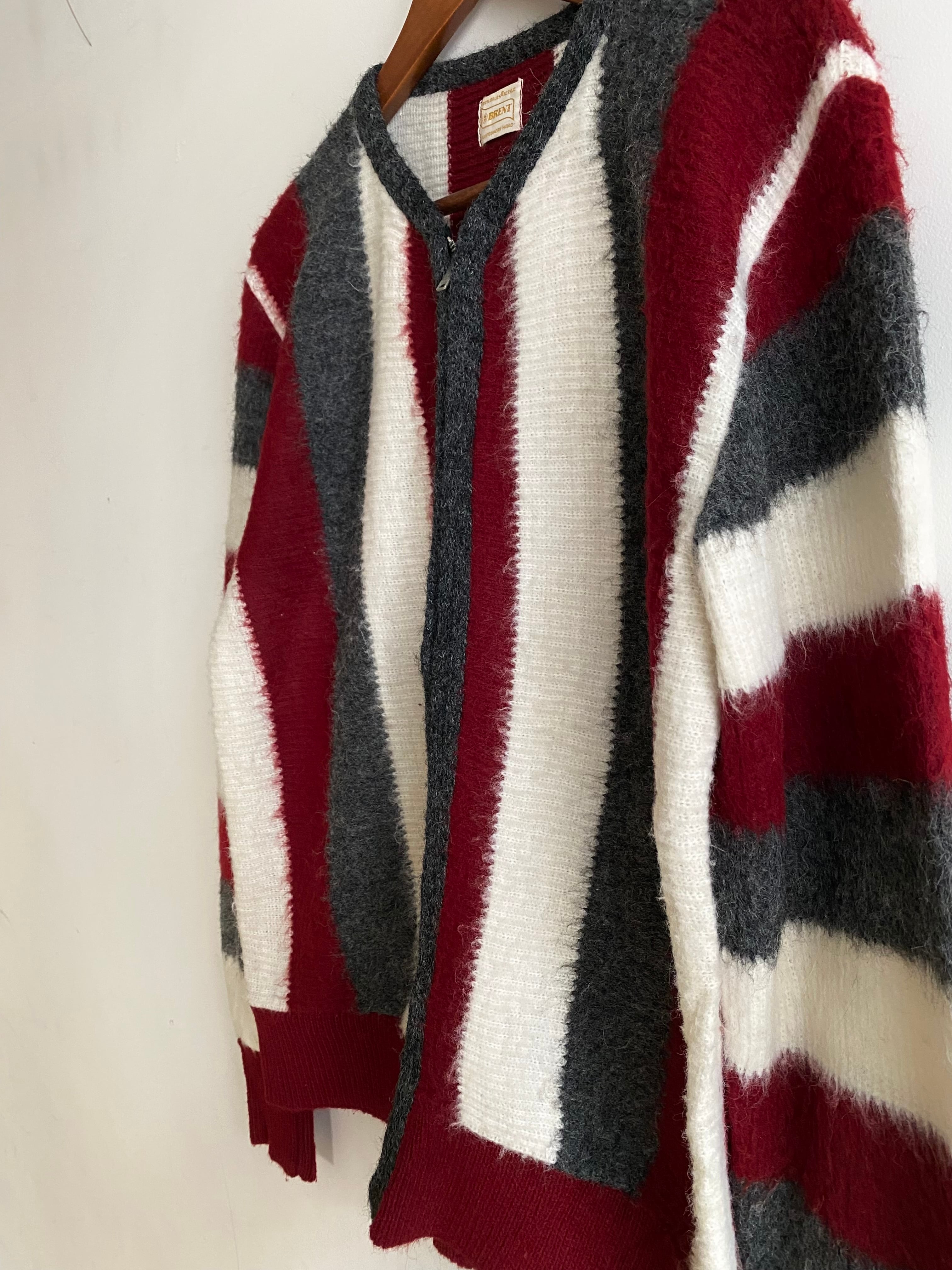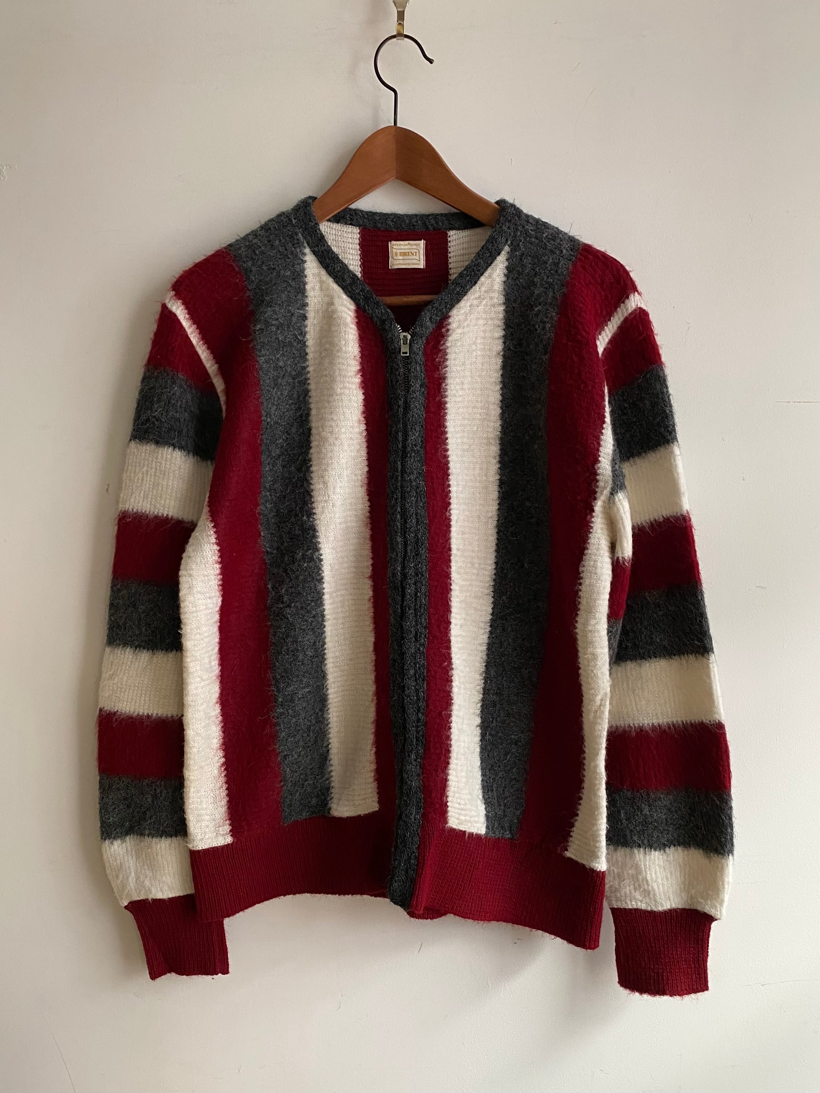 60s BRENT MONTGOMERY WARD SHAGGY KNIT ZIP UP STRIPE CARDIGAN