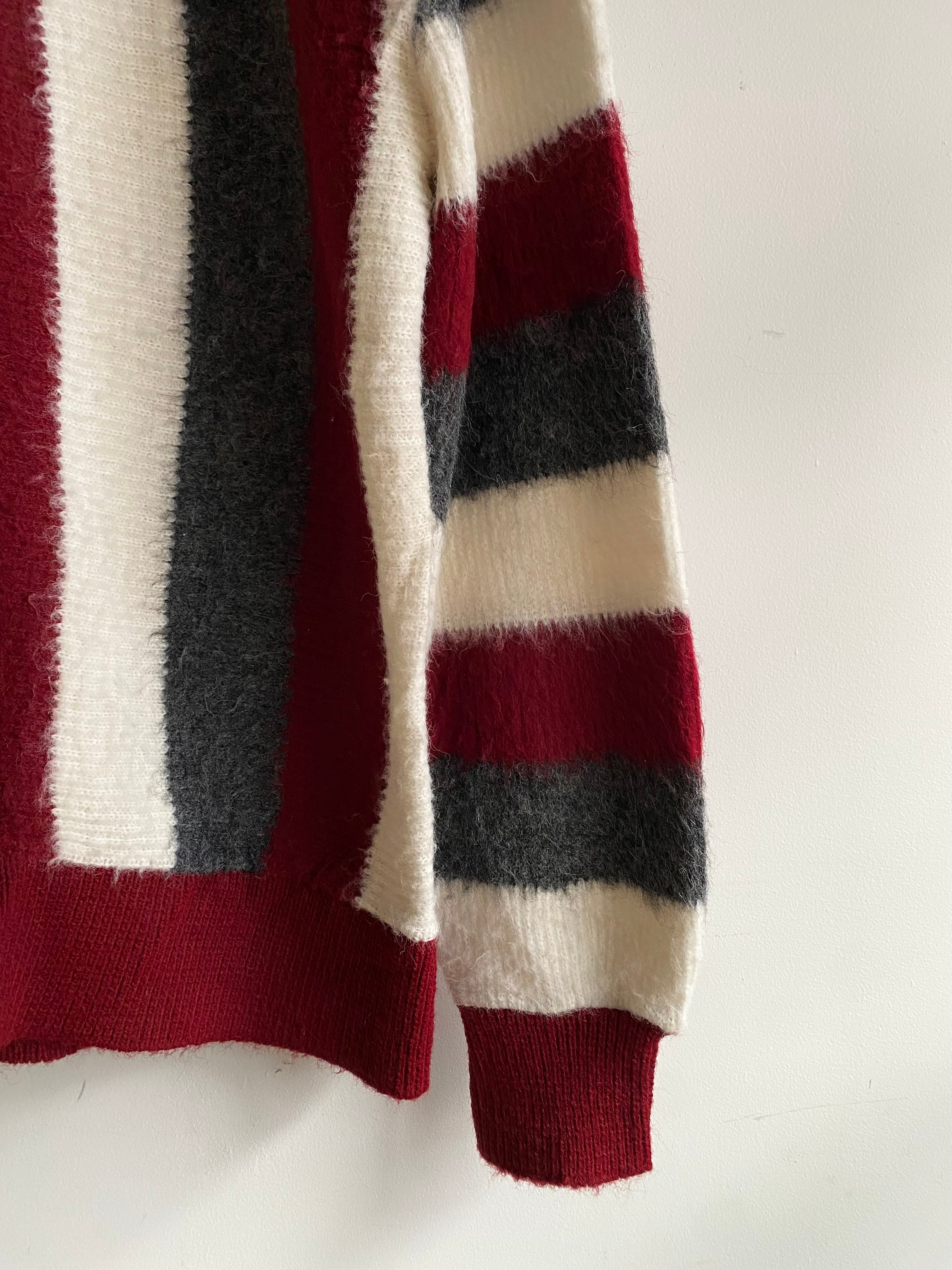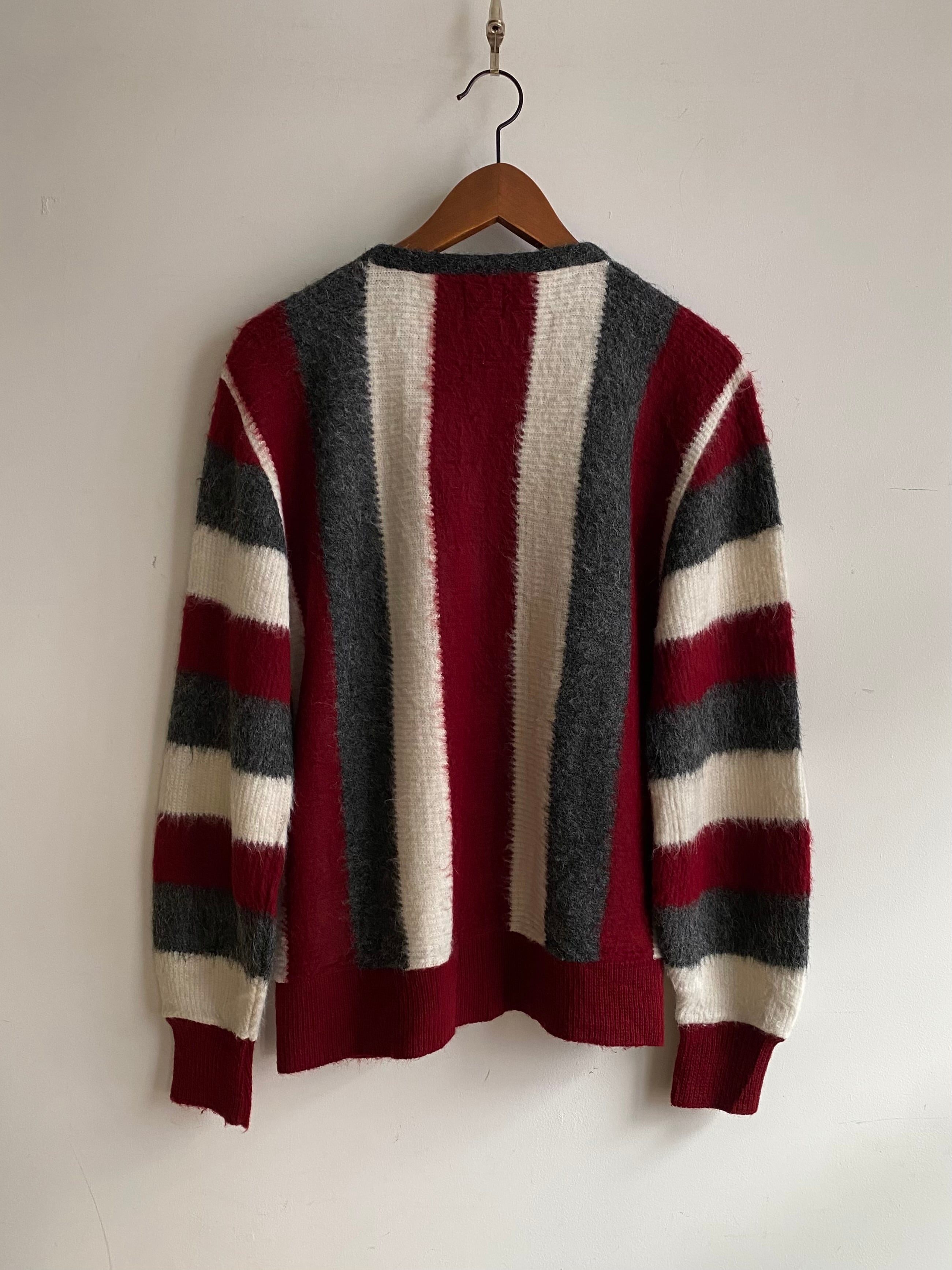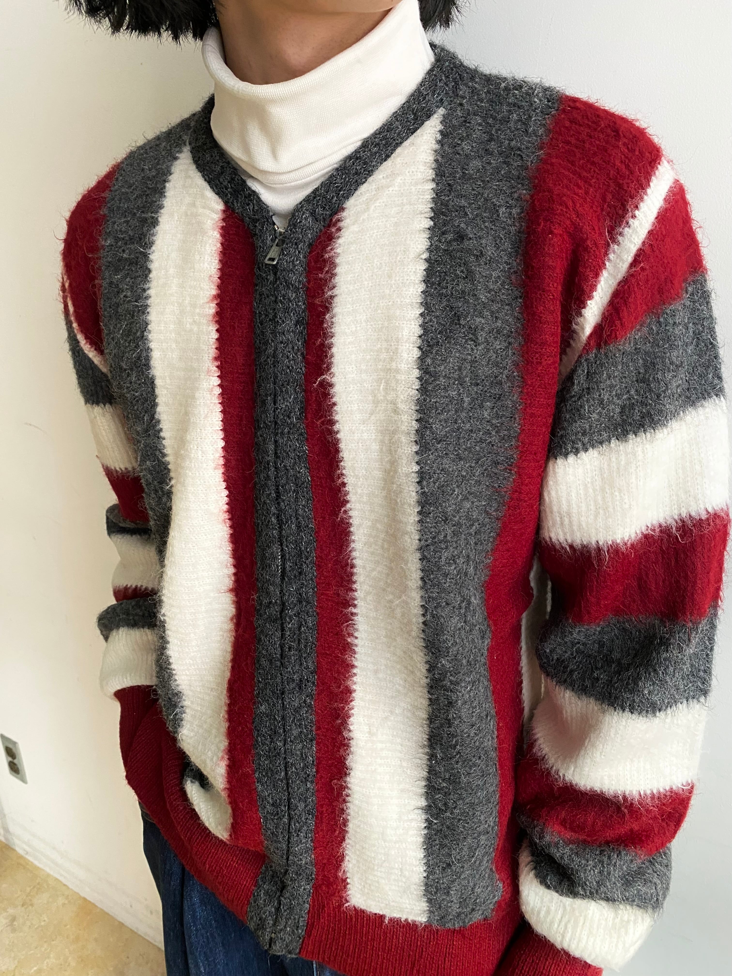 60s BRENT MONTGOMERY WARD SHAGGY KNIT ZIP UP STRIPE CARDIGAN