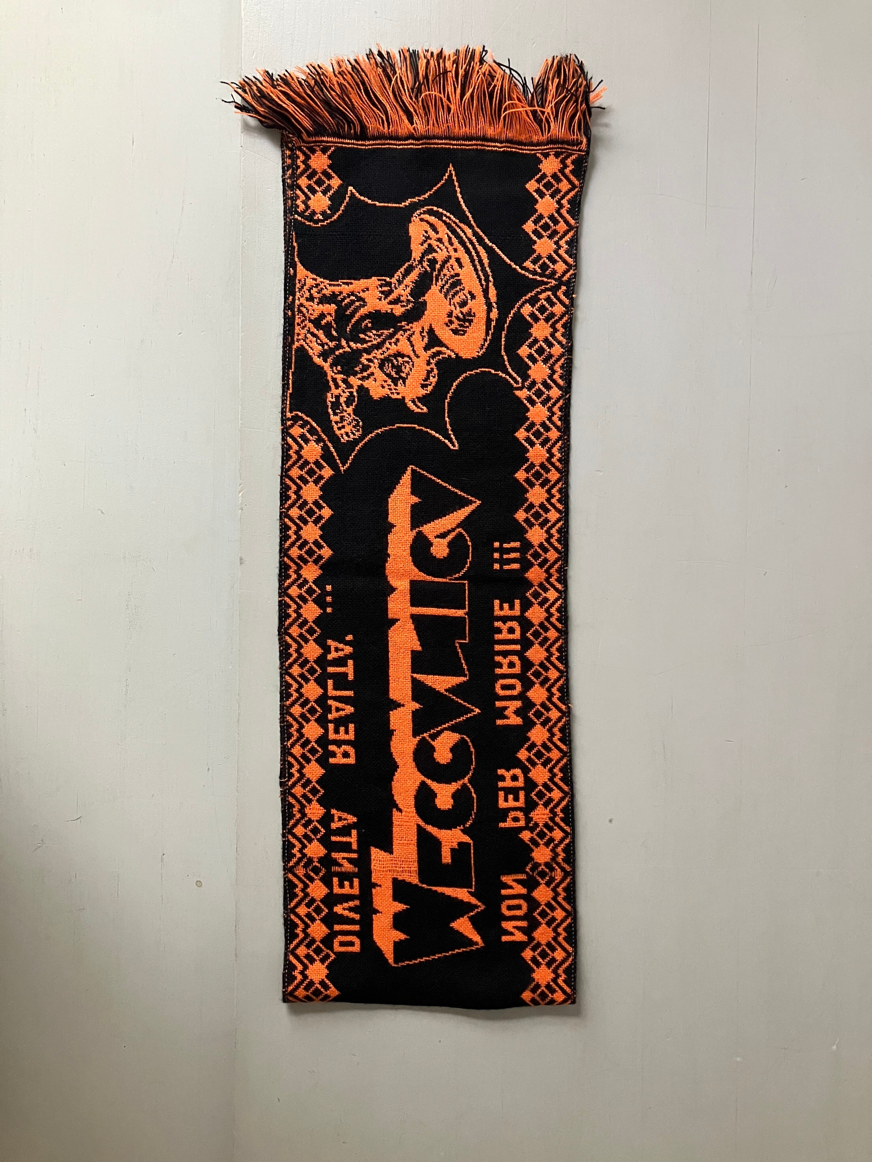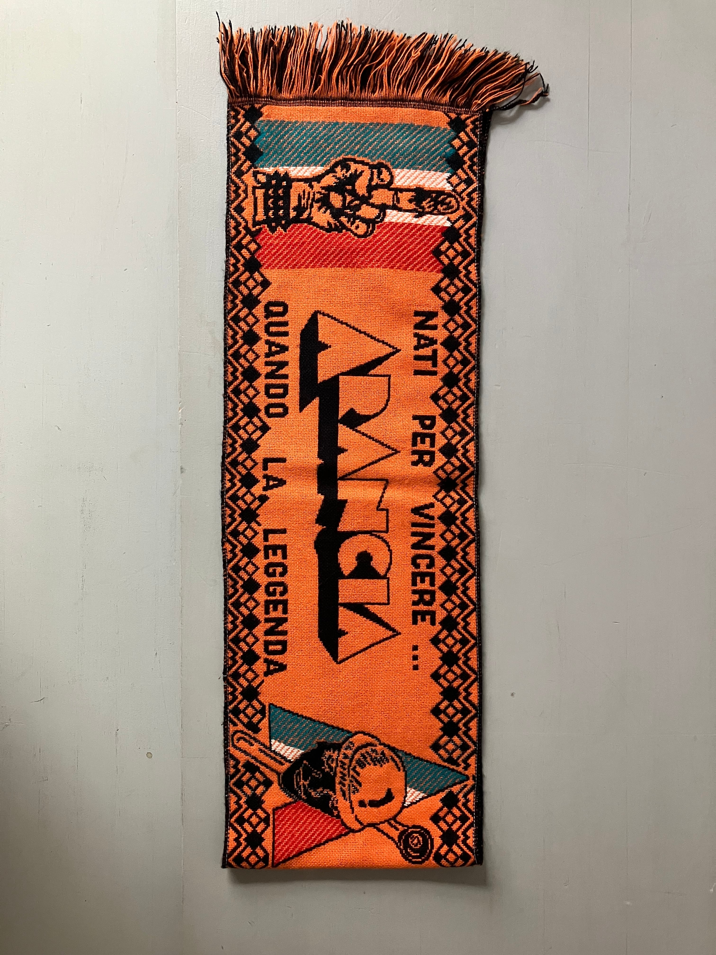 大きくあしらわれた「ARANCIA MECCANICA」は映画の『時計仕掛けのオレンジ』を意味し、1980〜90年代にかけて活動していた、ユヴェントスの伝説的なウルトラスグループの愛称です