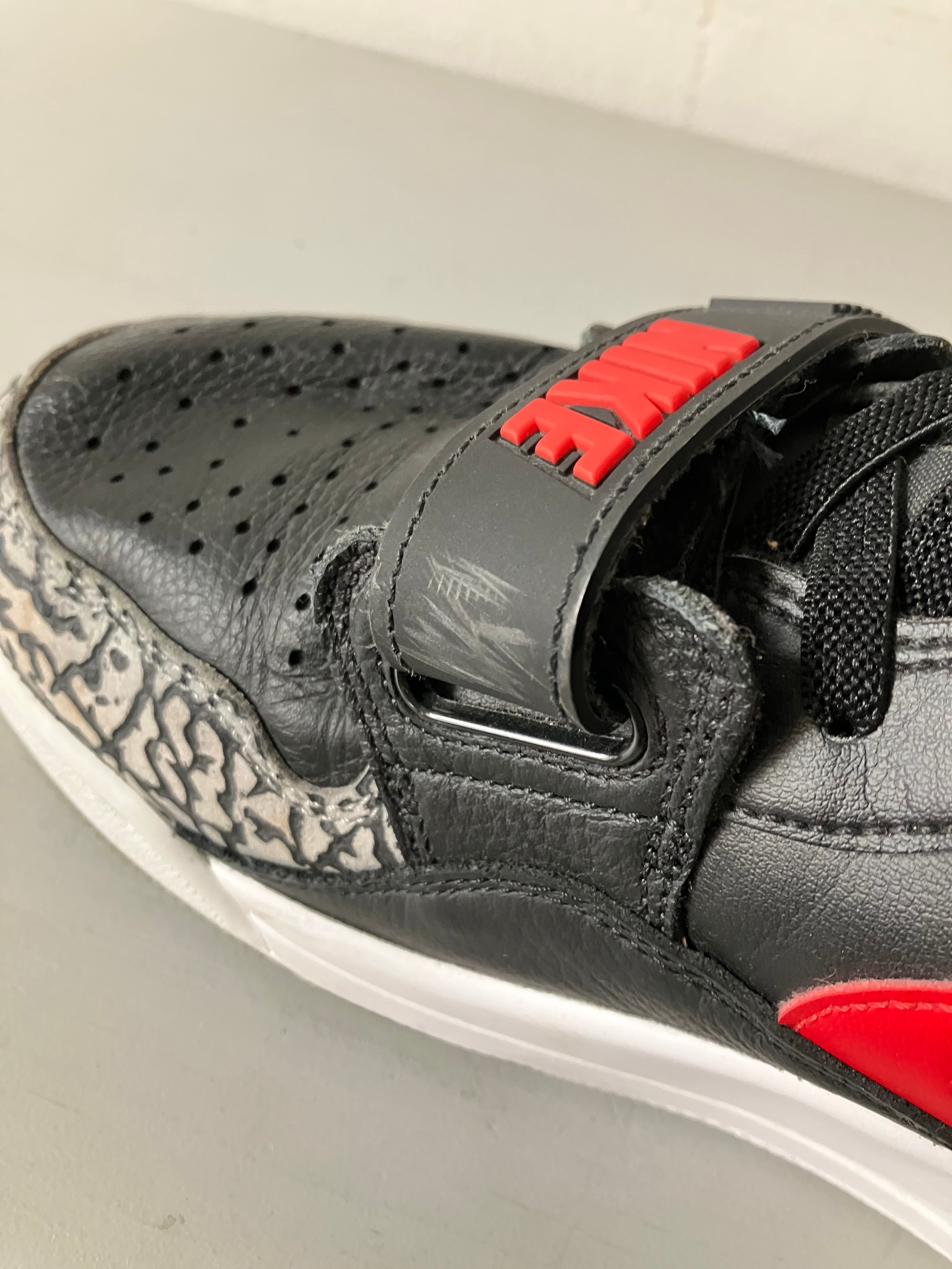 アッパーのベースが「AIR JORDAN 1」、ソールユニットが「AIR JORDAN 3」、ベルトストラップとフォルムはマイケル・ジョーダンが好んで着用していた「AIR ALPHA FORCE LO」と、それぞれの象徴的なデザインを融合させたハイブリッドモデル。