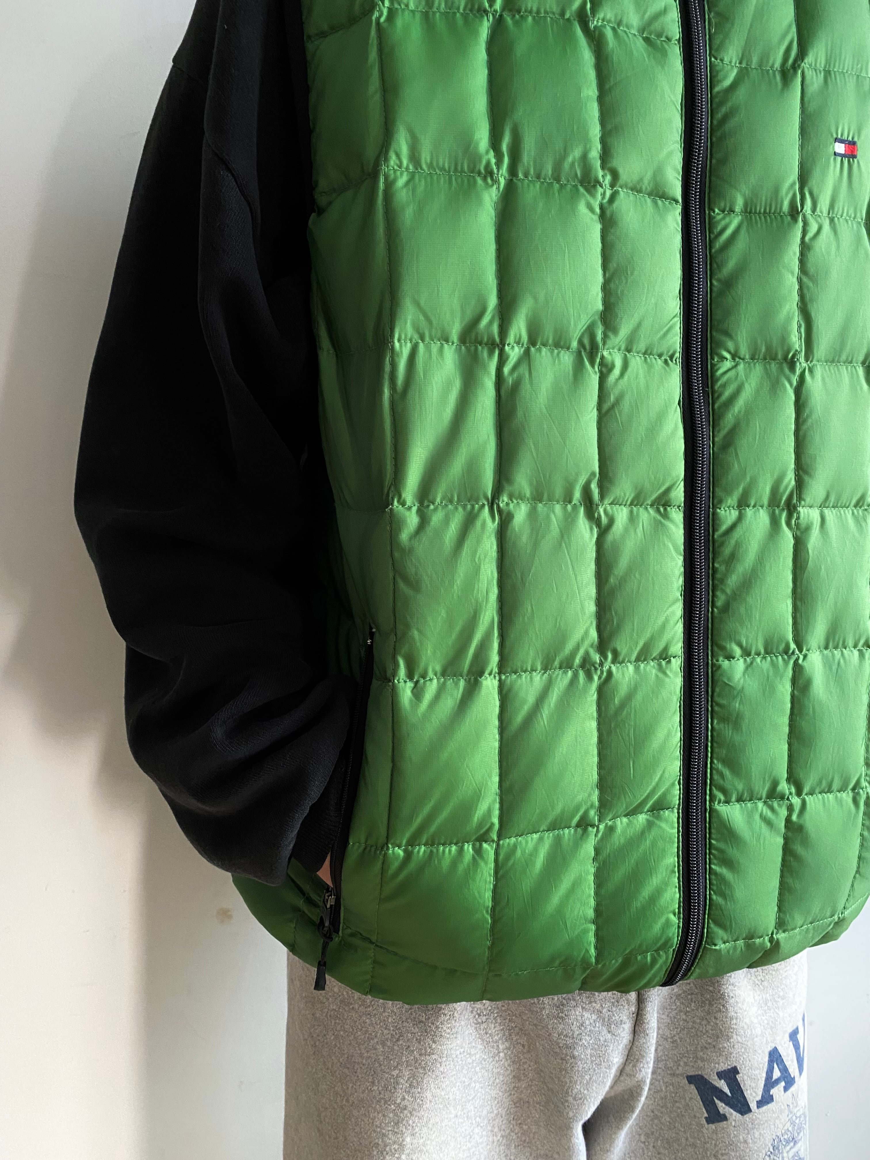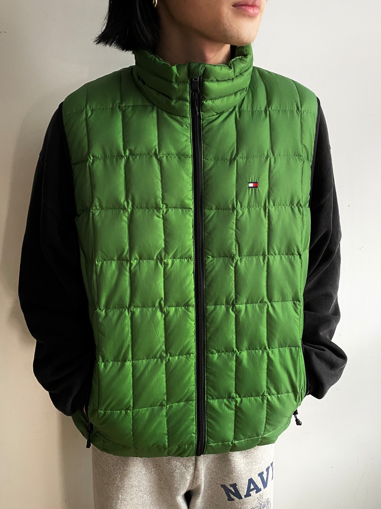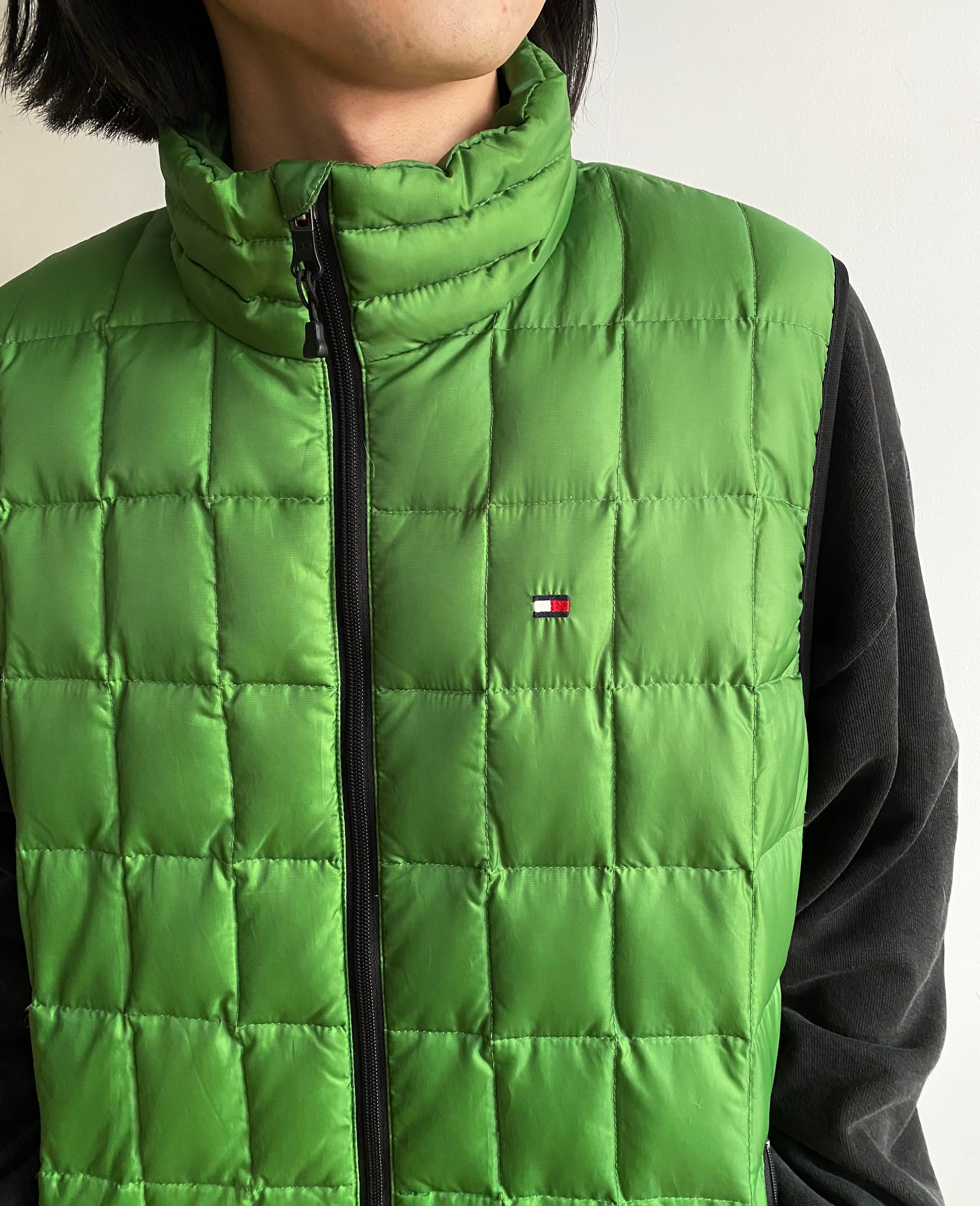 発色のいいグリーンが目を引く、トミーヒルフィガーのダウンベスト。