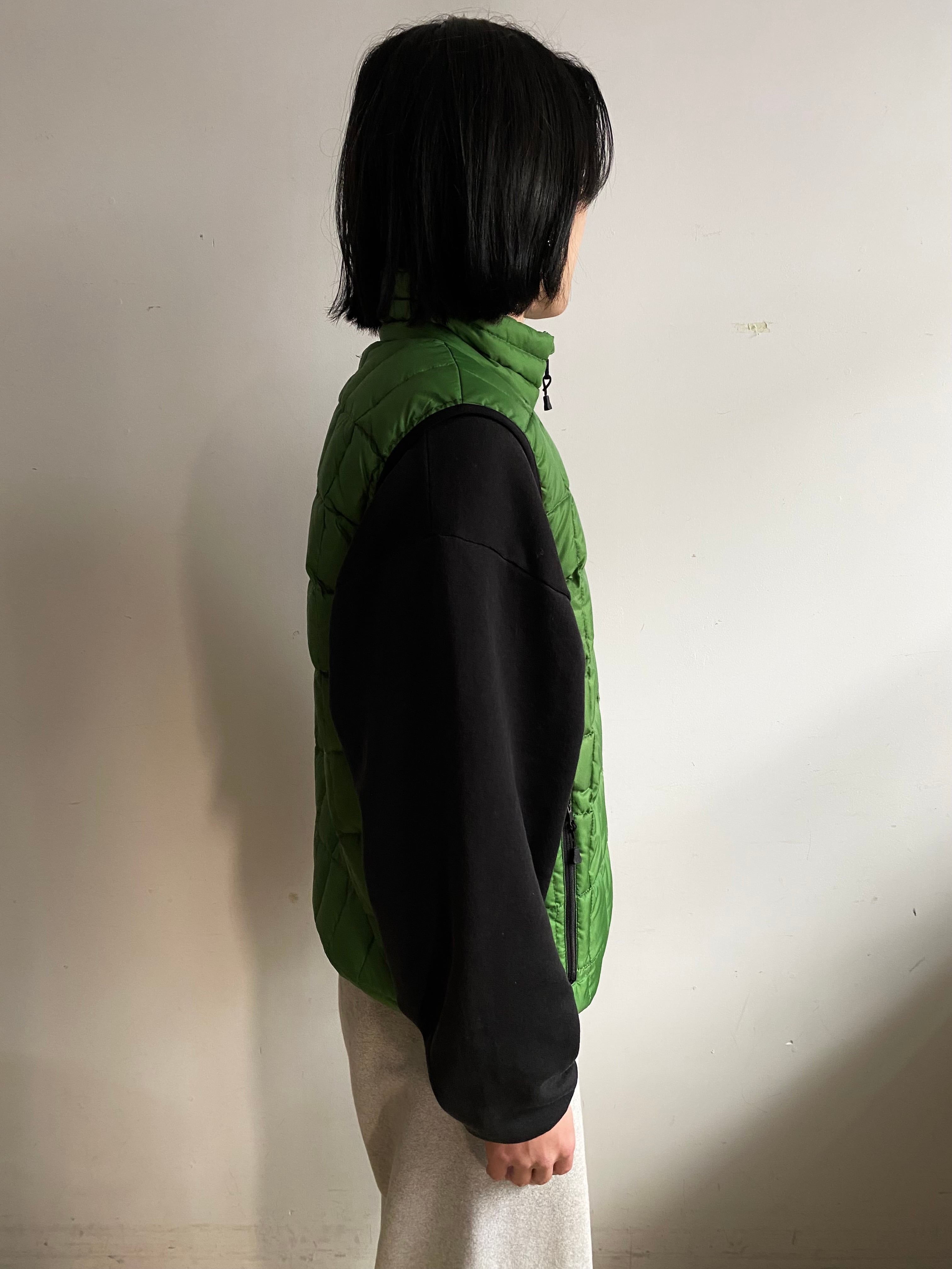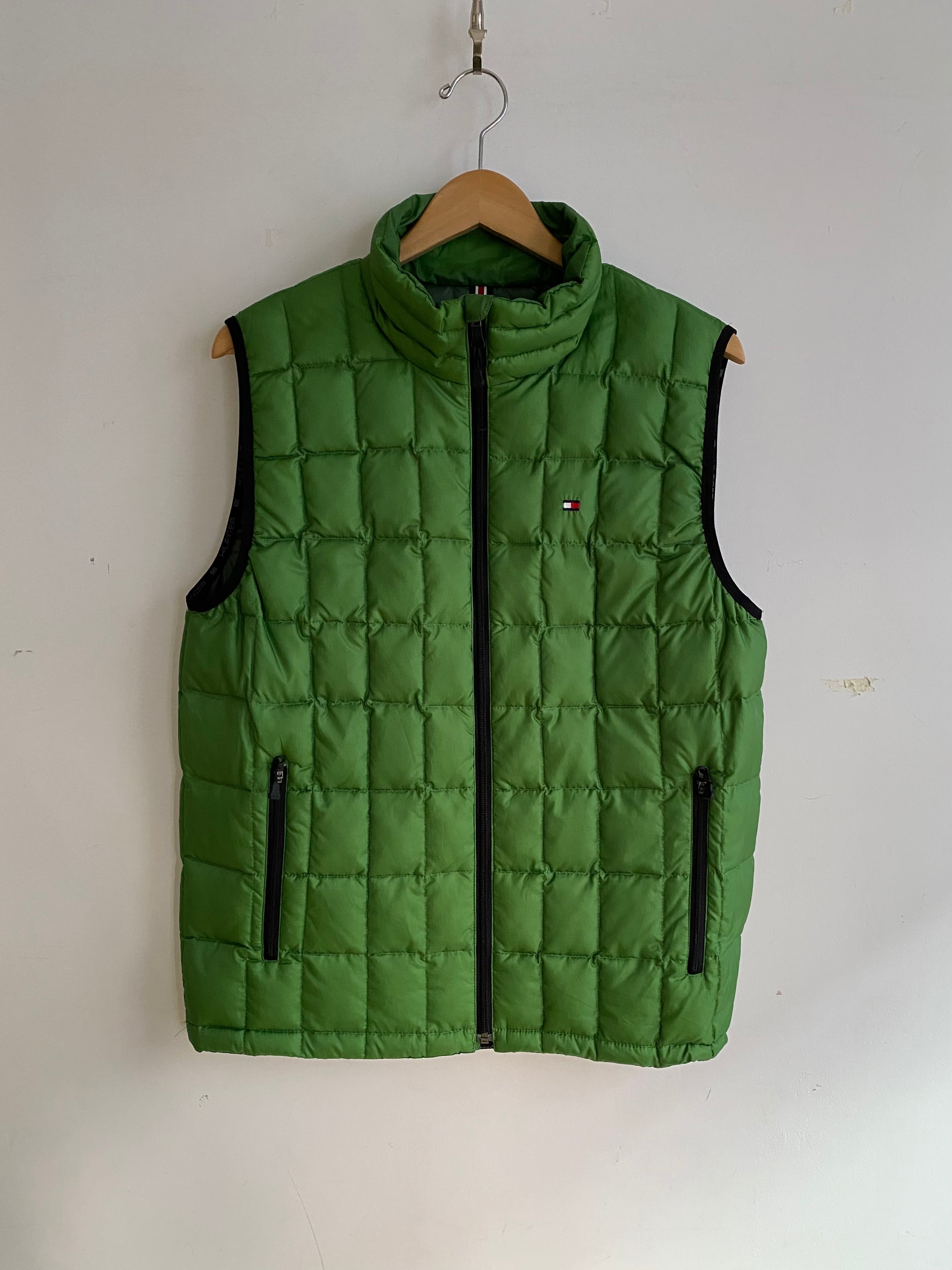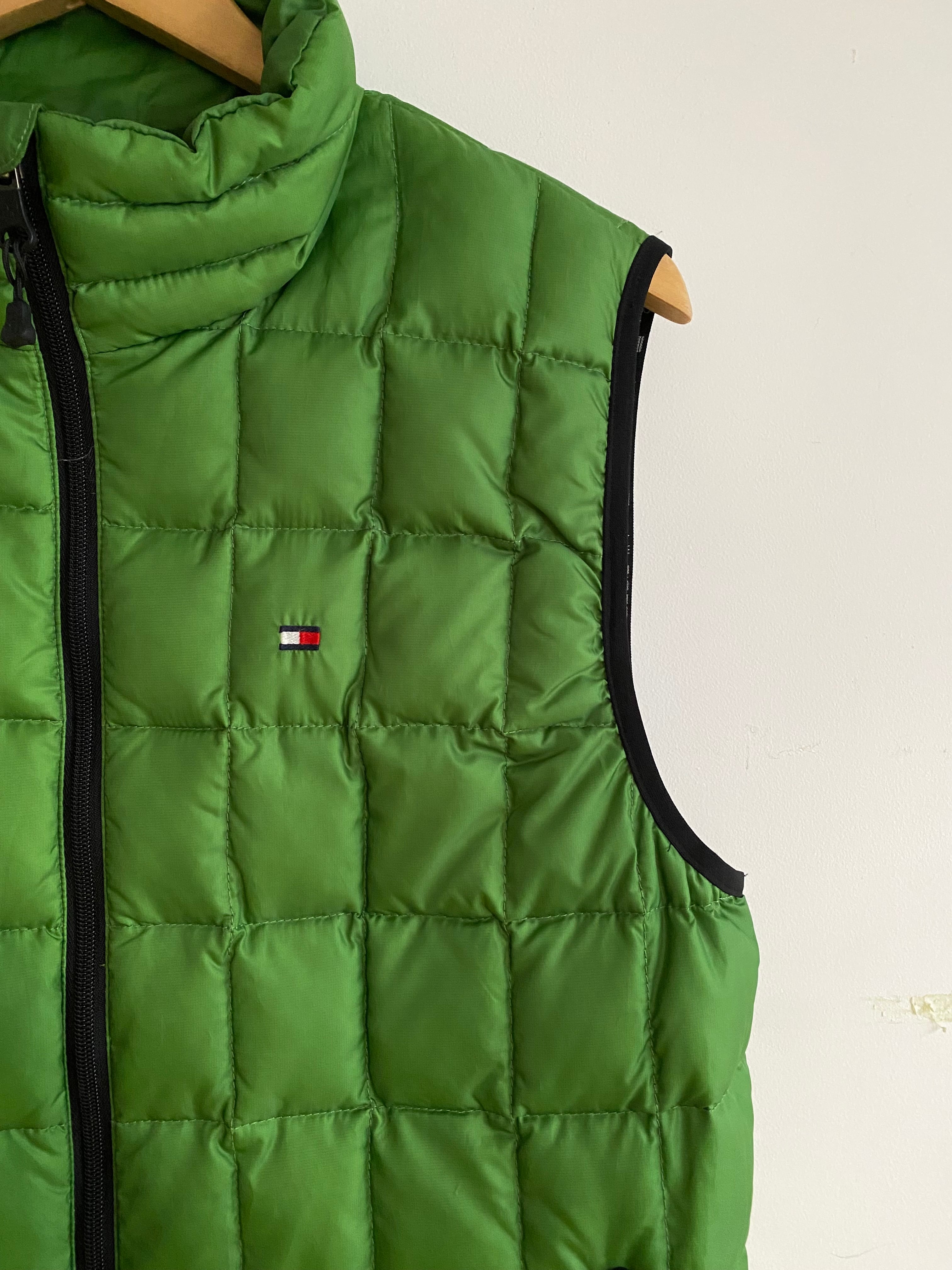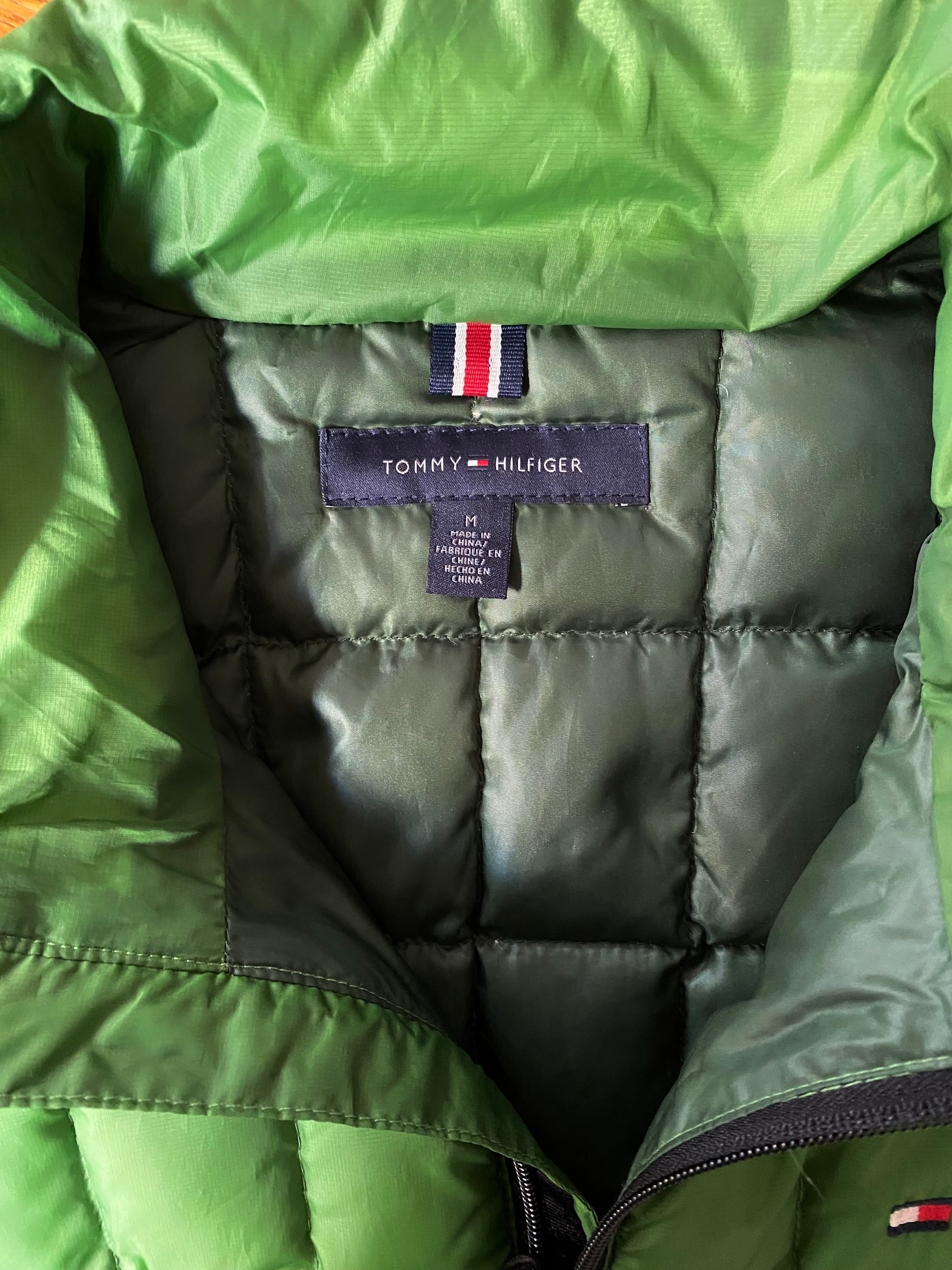 発色のいいグリーンが目を引く、トミーヒルフィガーのダウンベスト。