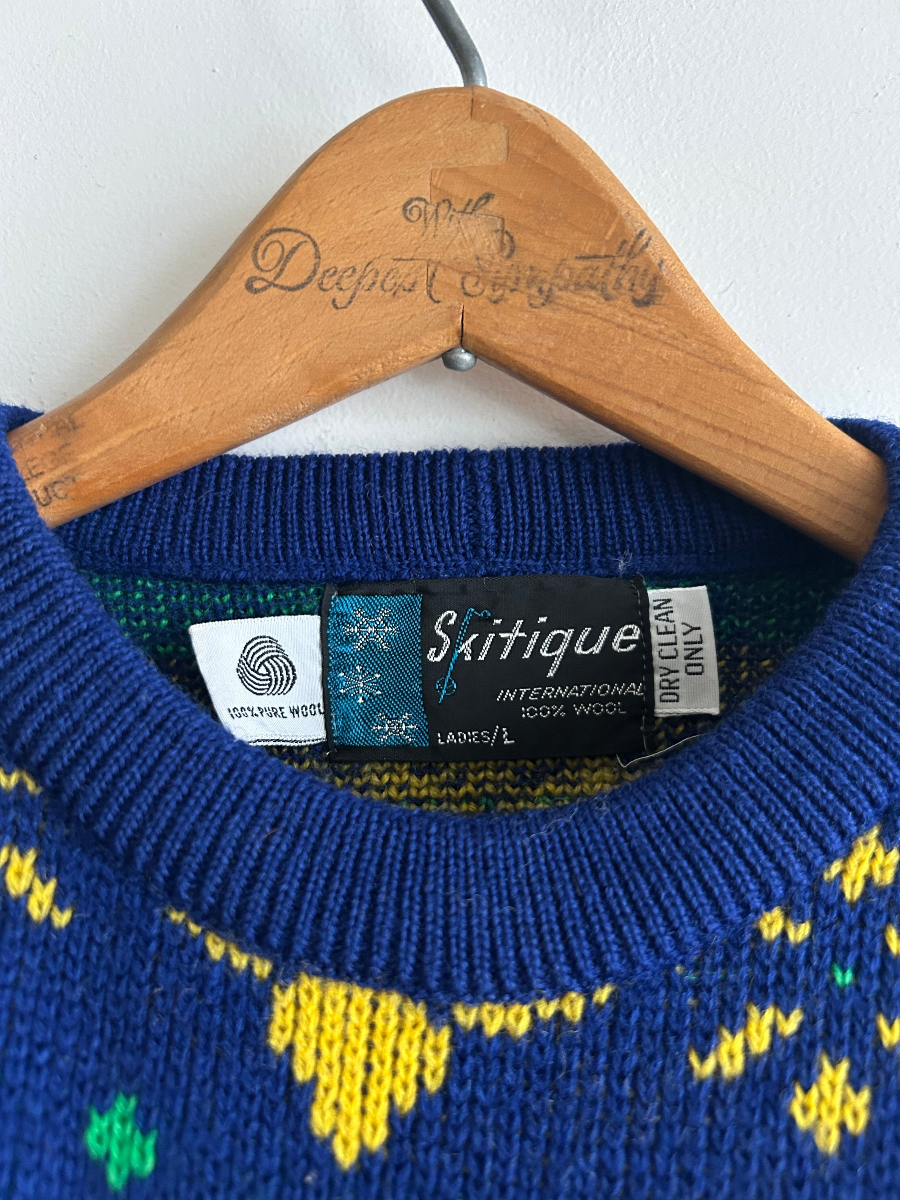 Skitiqueは主に1970年代から80年代にかけて、ウールやアクリル混紡素材のカラフルなスキーウェアを製造していたブランド。