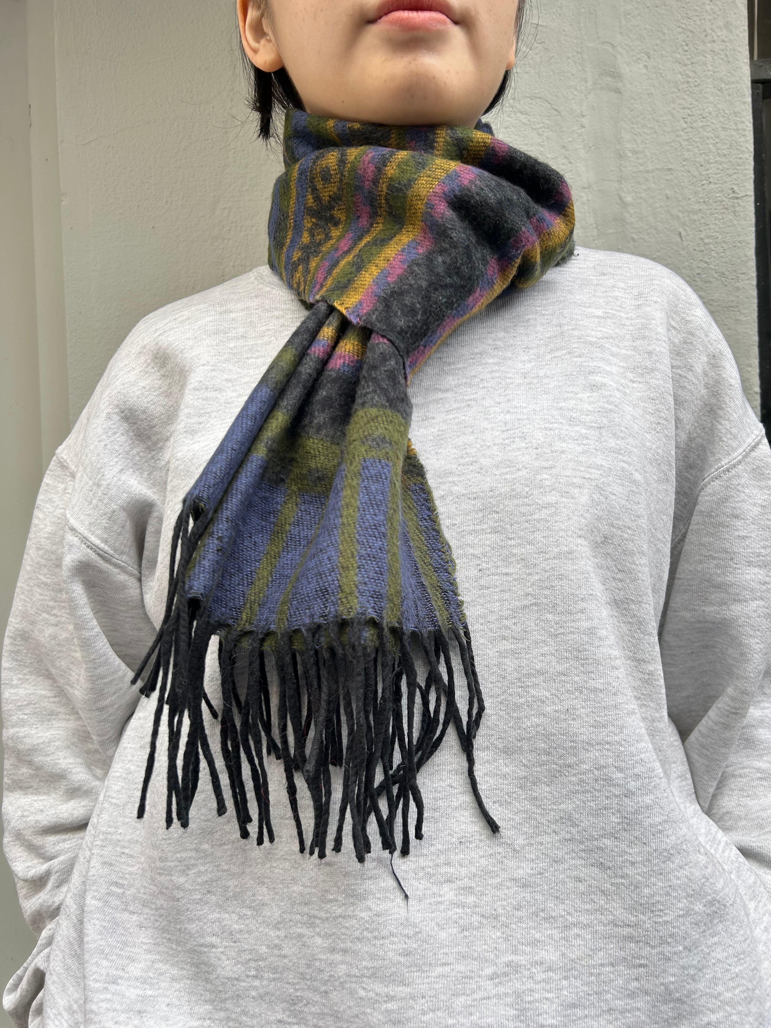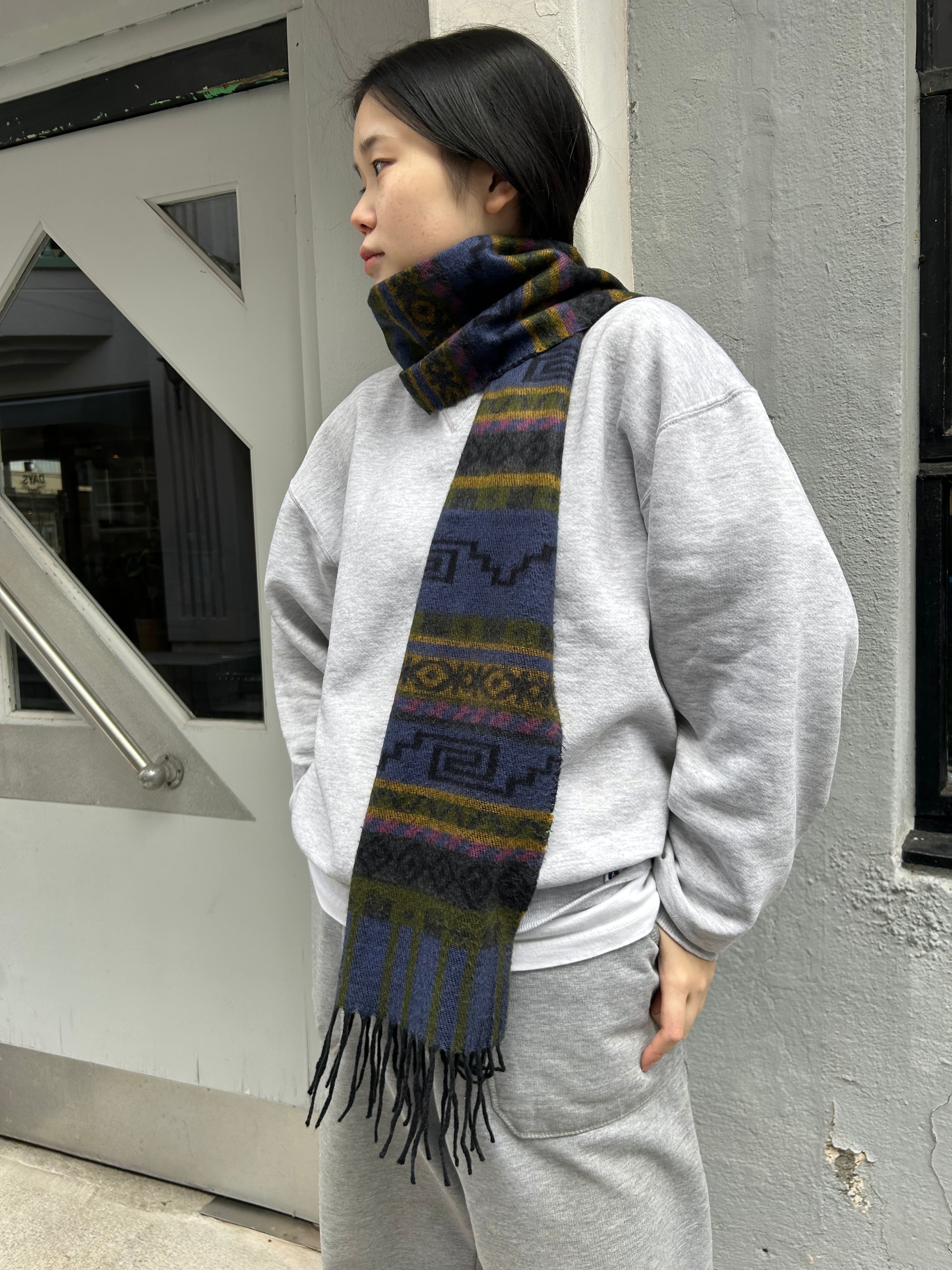 長さがあるので頭に巻いたり二重で巻いたり、防寒対策はもちろんファッションのアクセントとしても大活躍◎