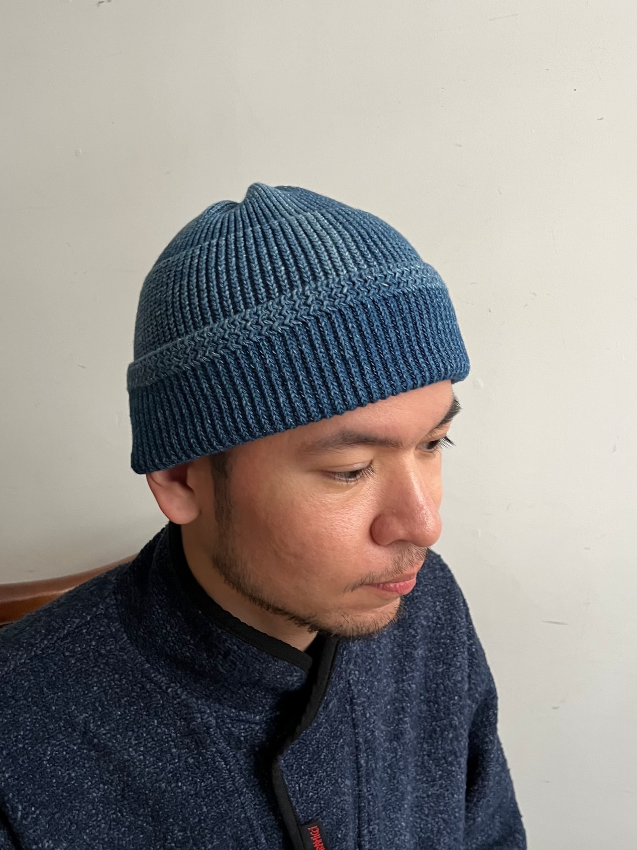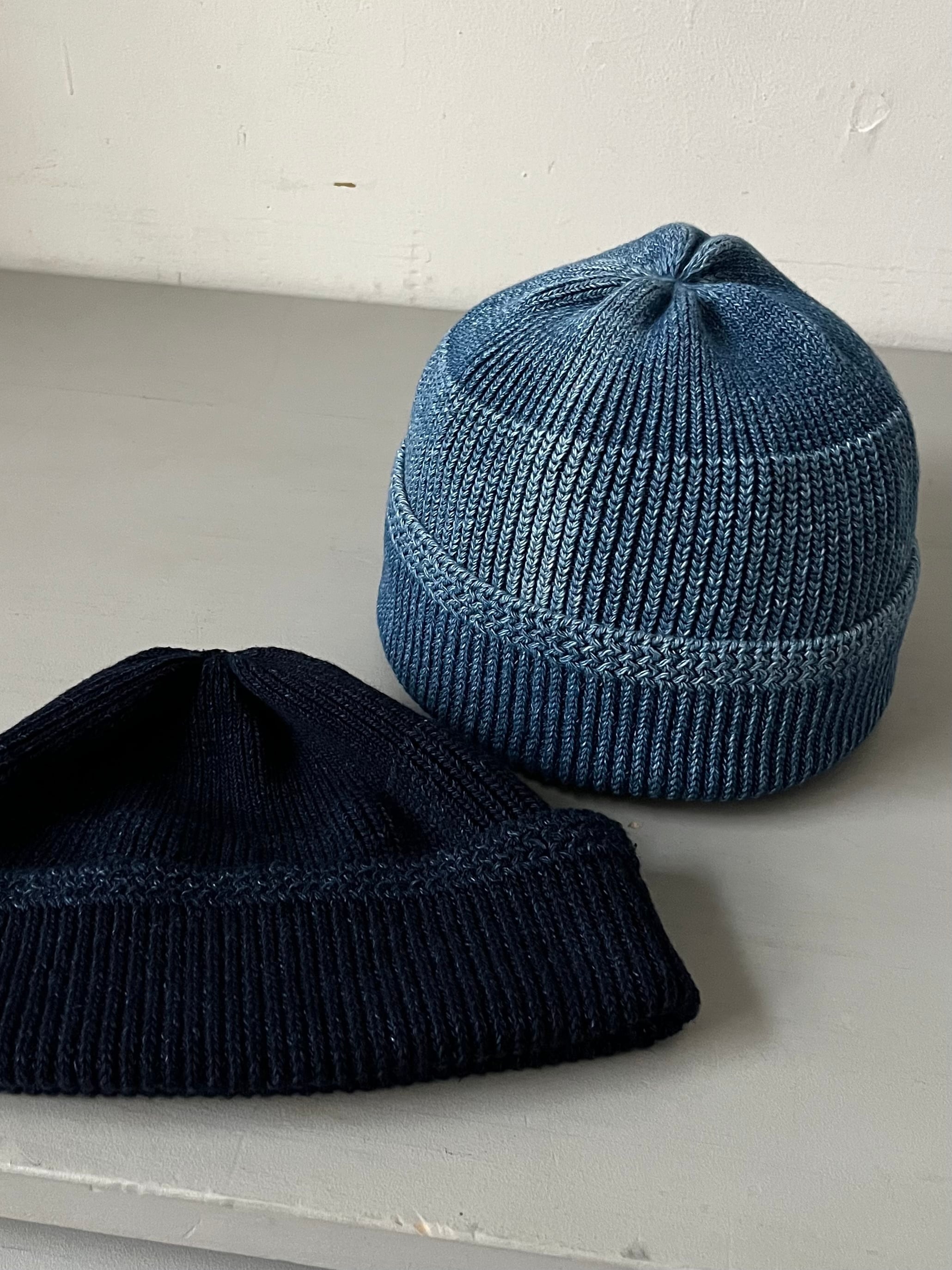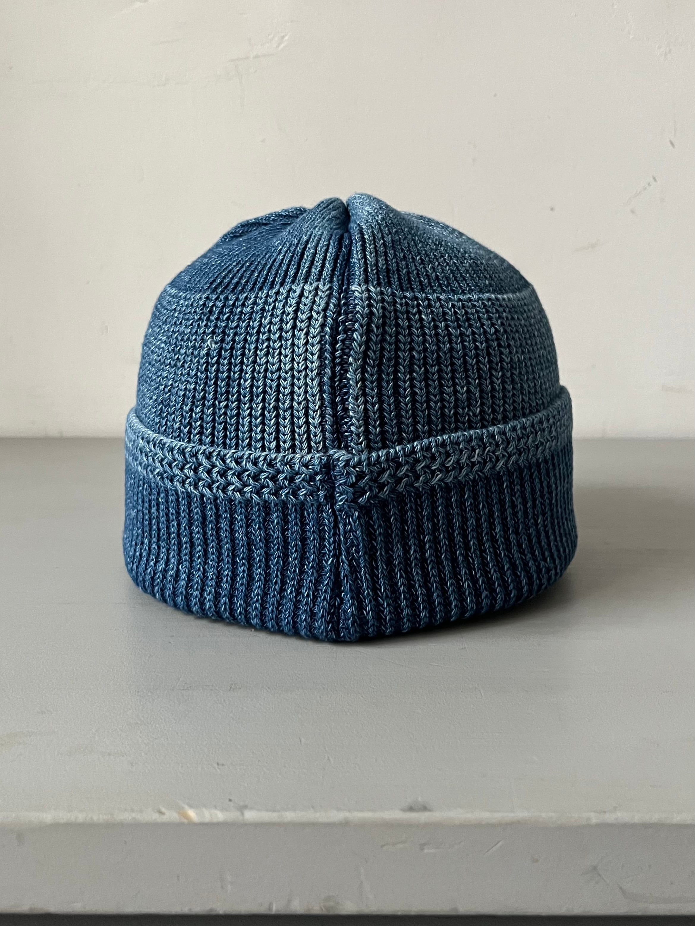 染料にインディゴ染めを使用したミリタリーワッチキャップ。