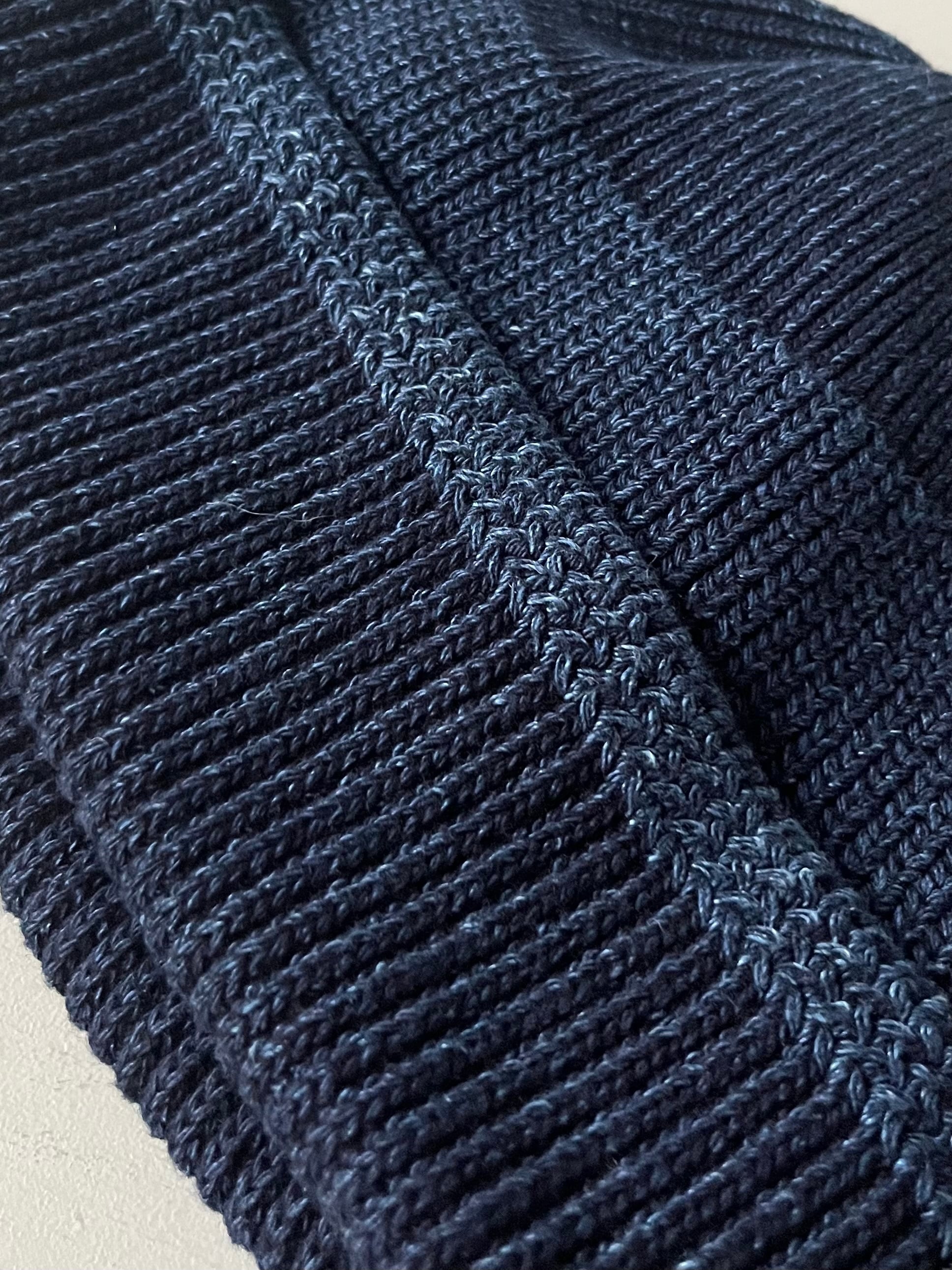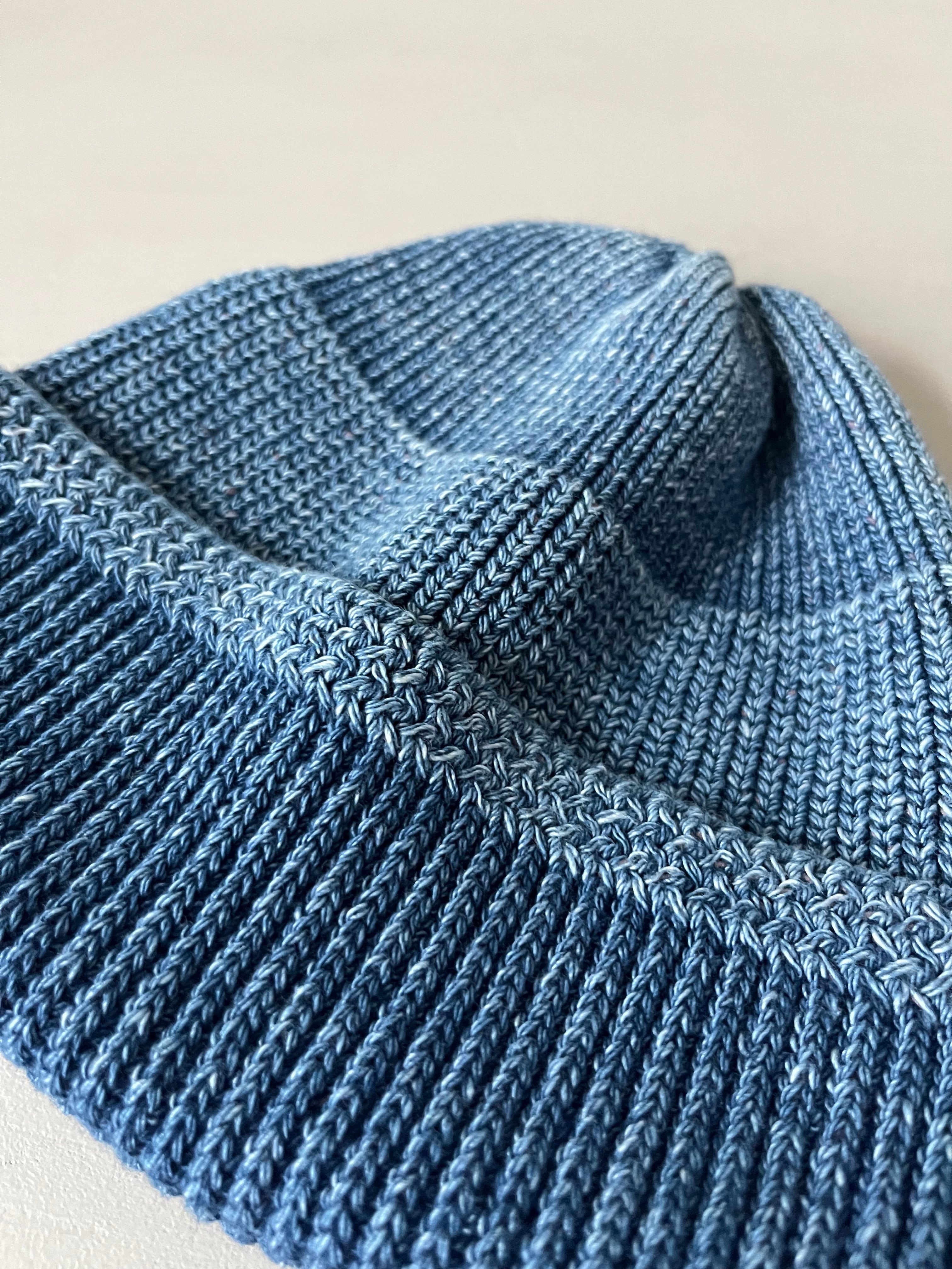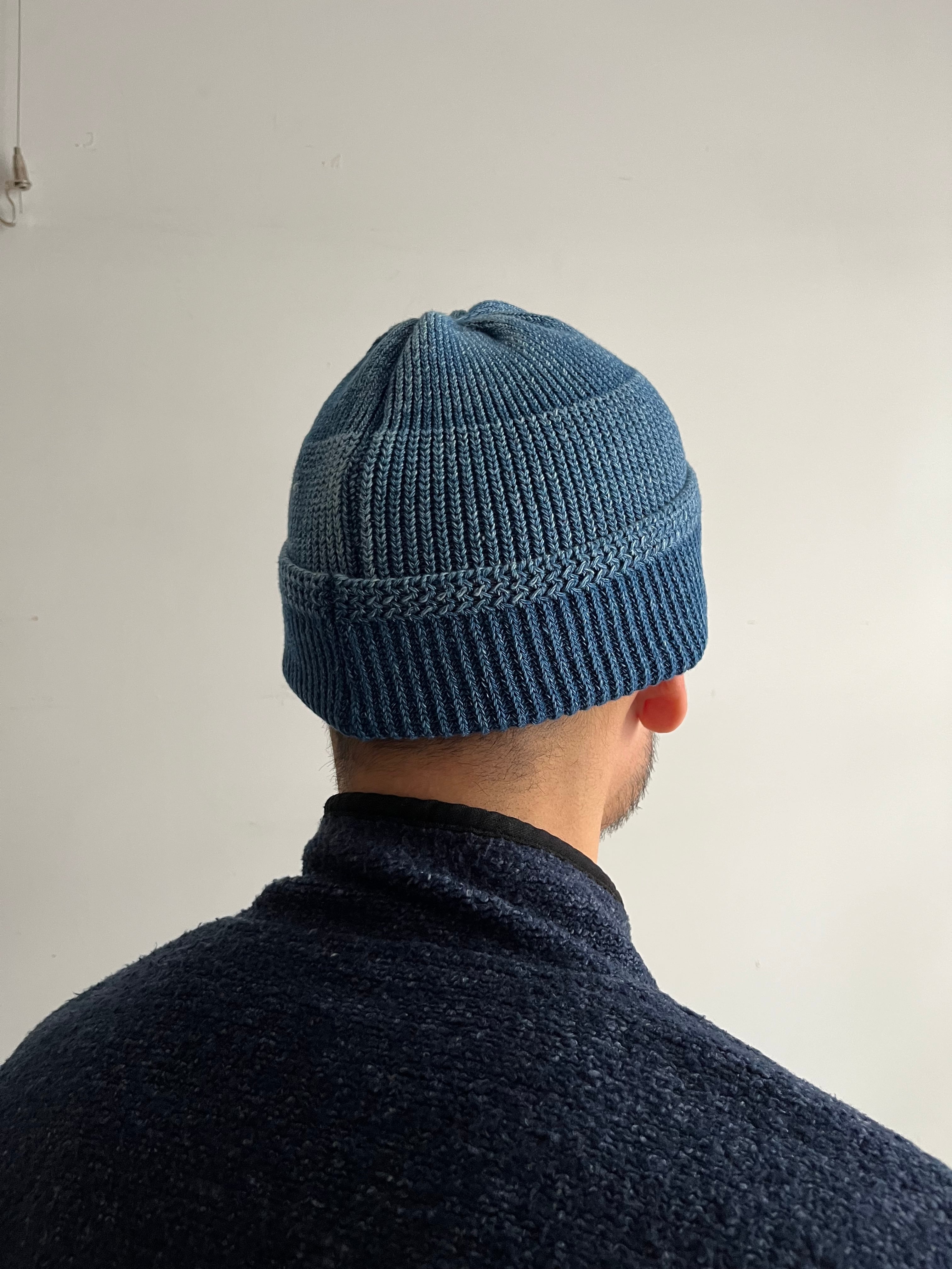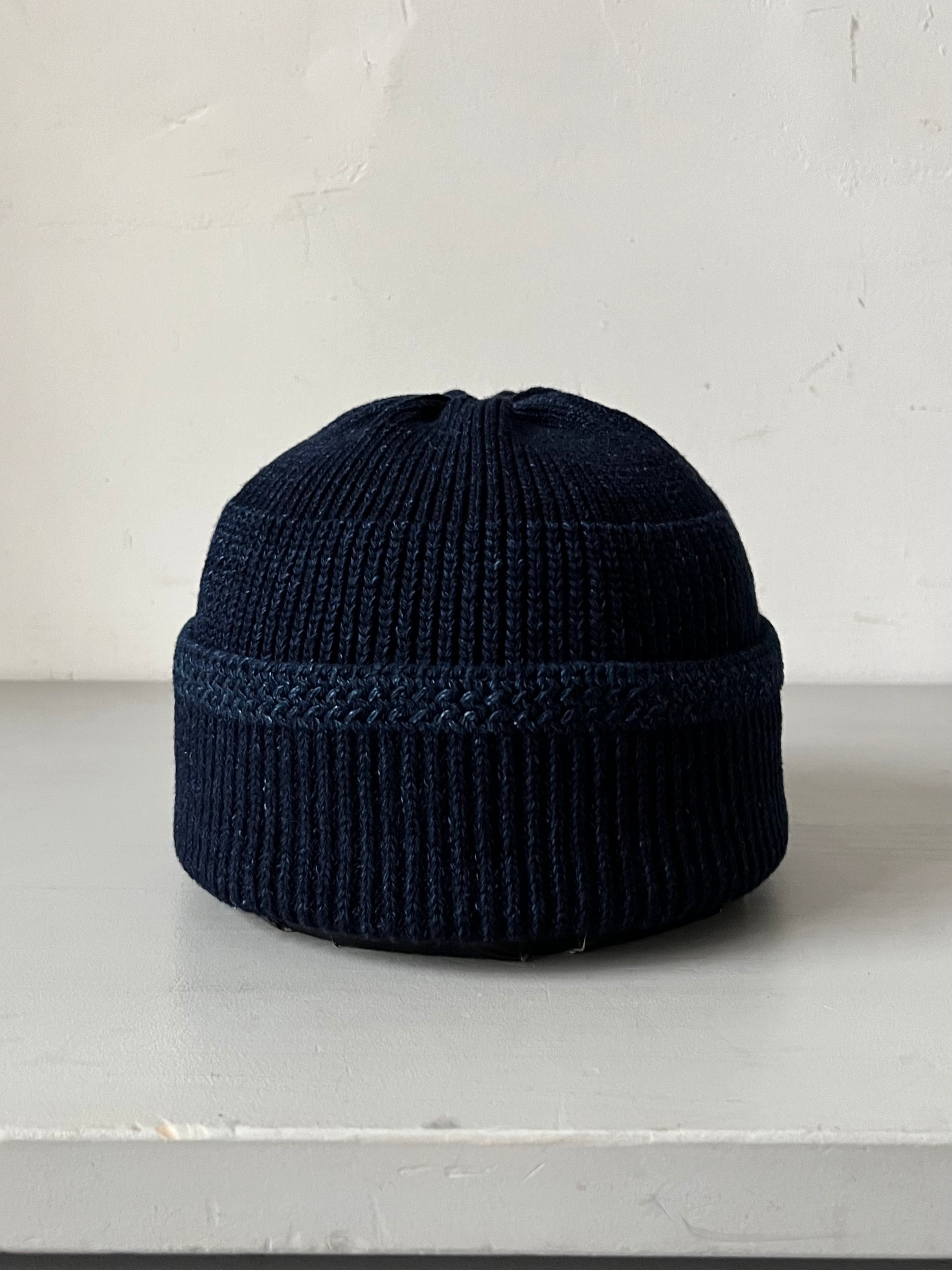 染料にインディゴ染めを使用したミリタリーワッチキャップ。