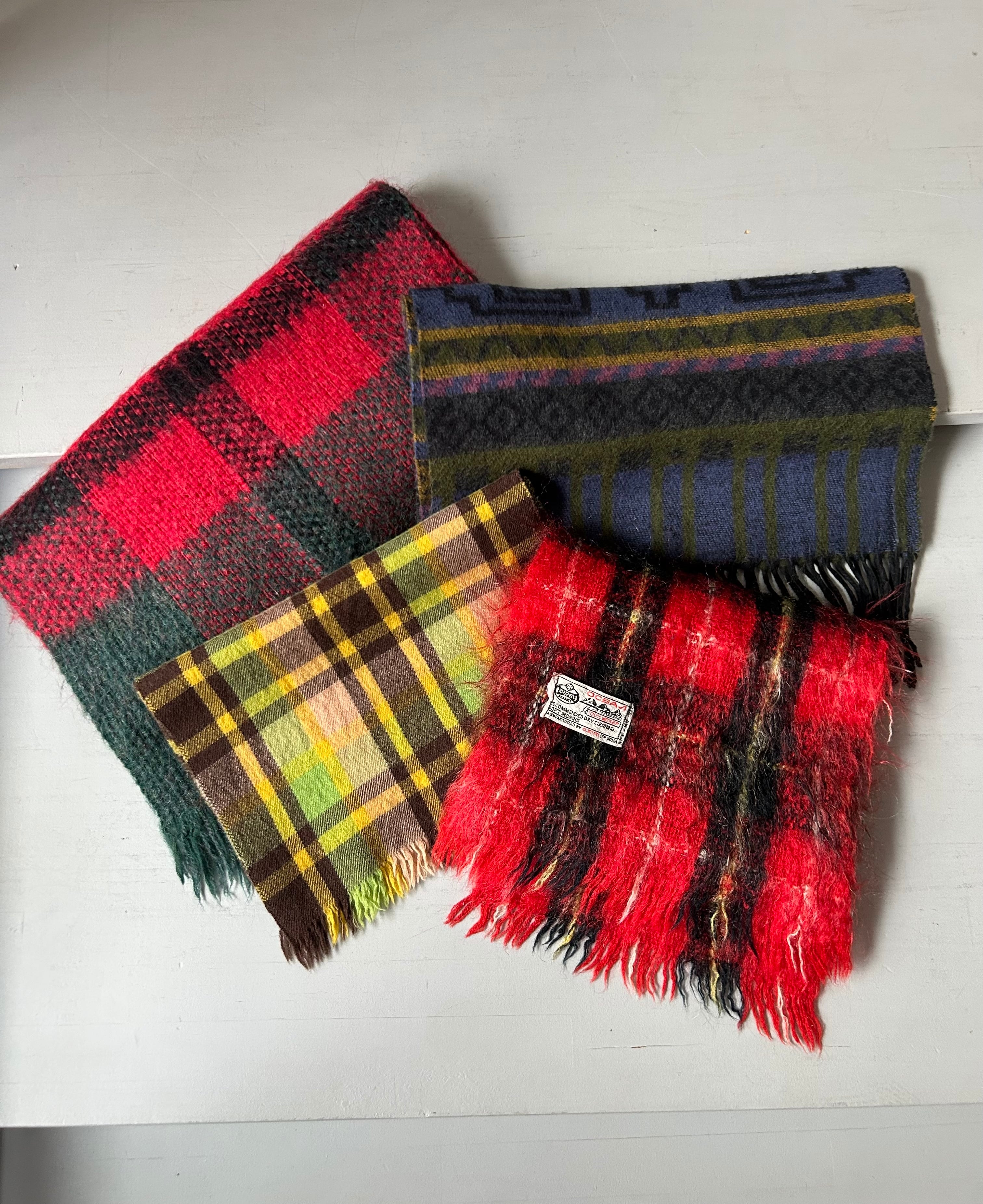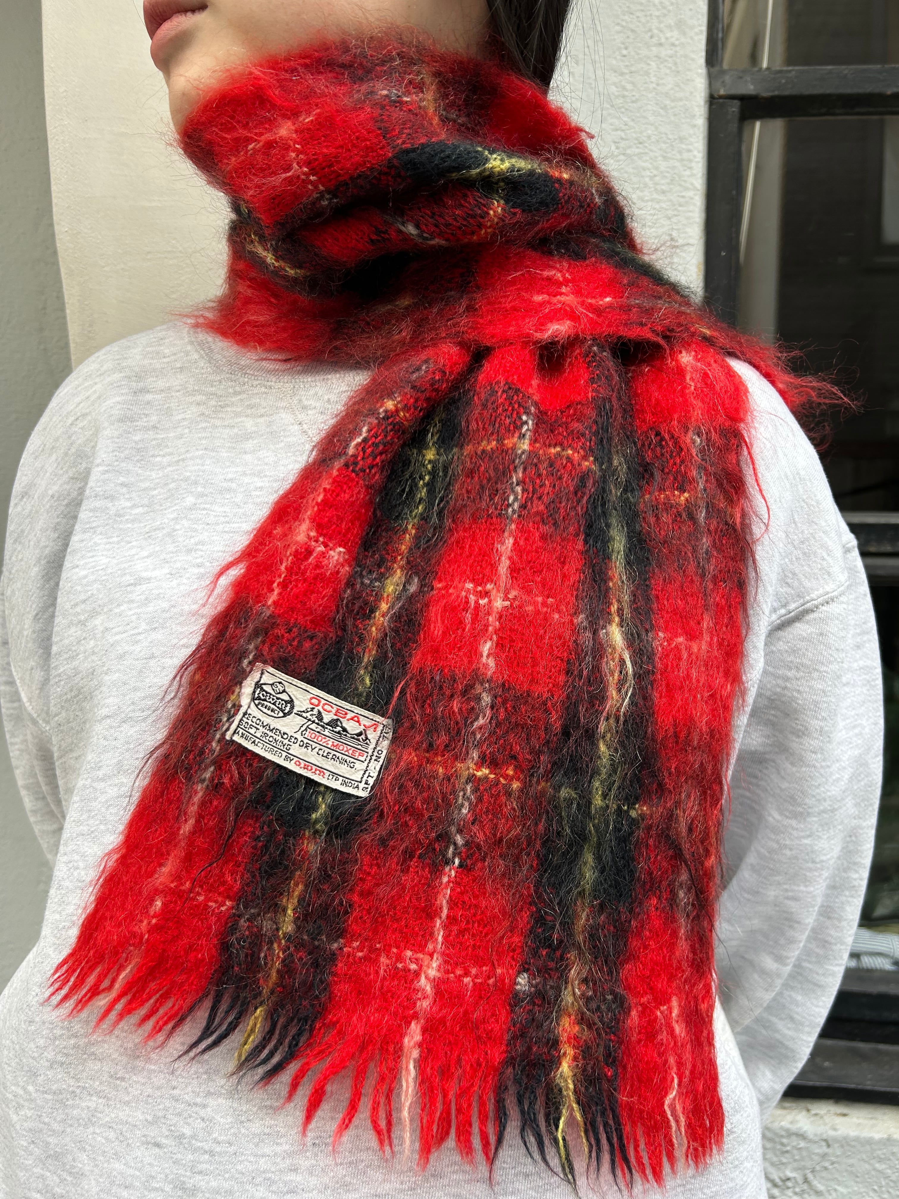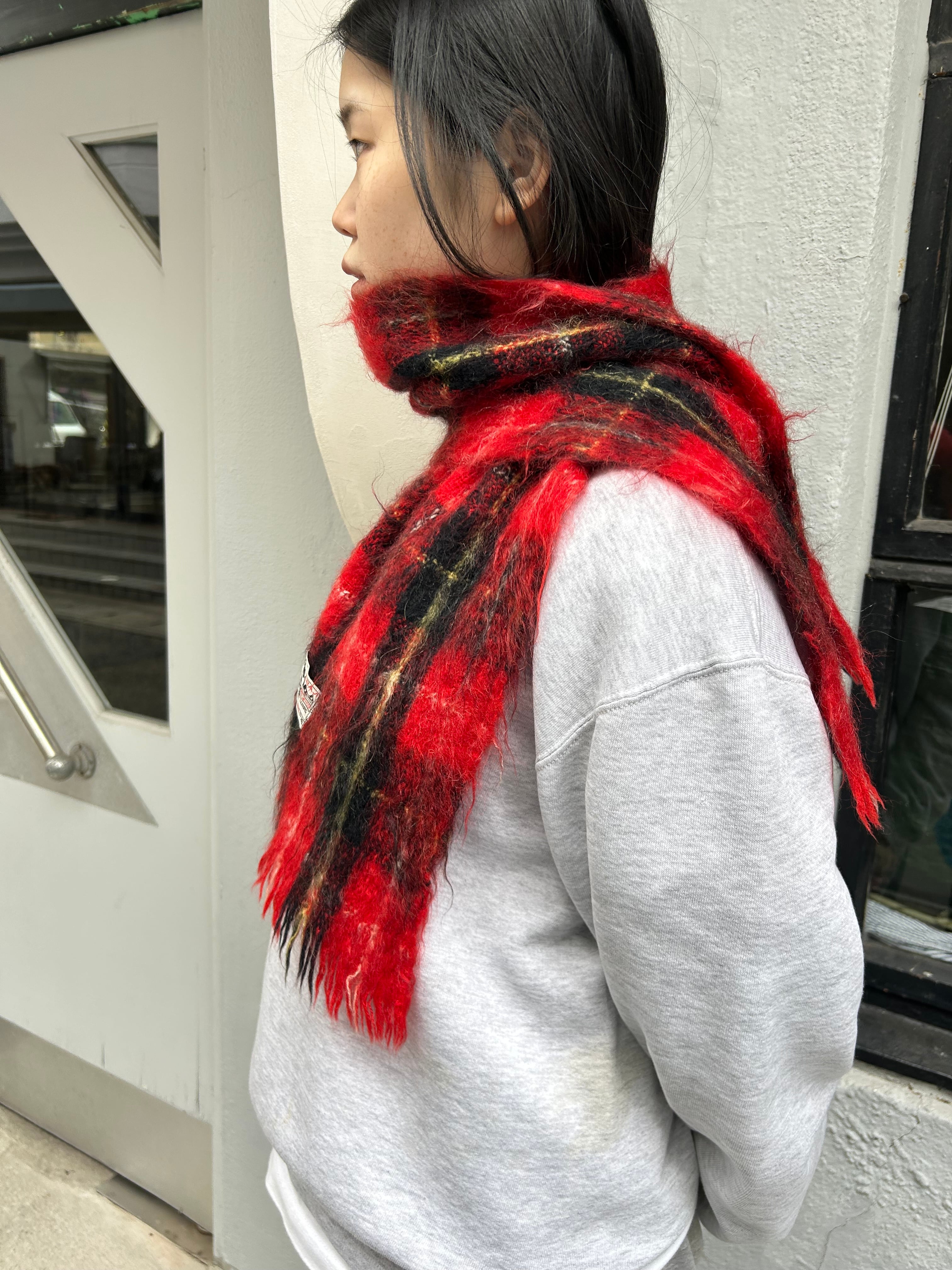 VINTAGE INDIAN MOHAIR PLAID MUFFLER EUROPE