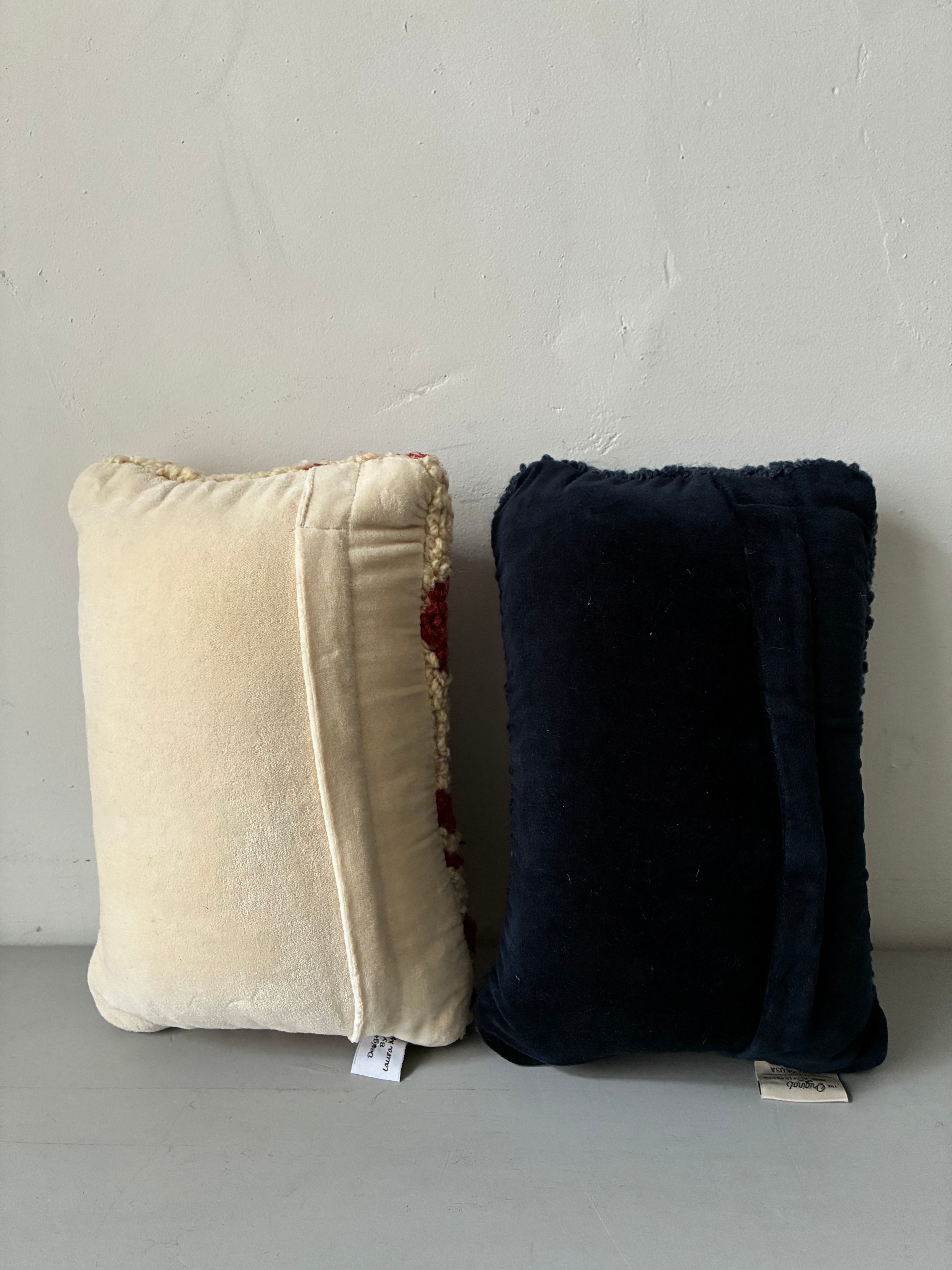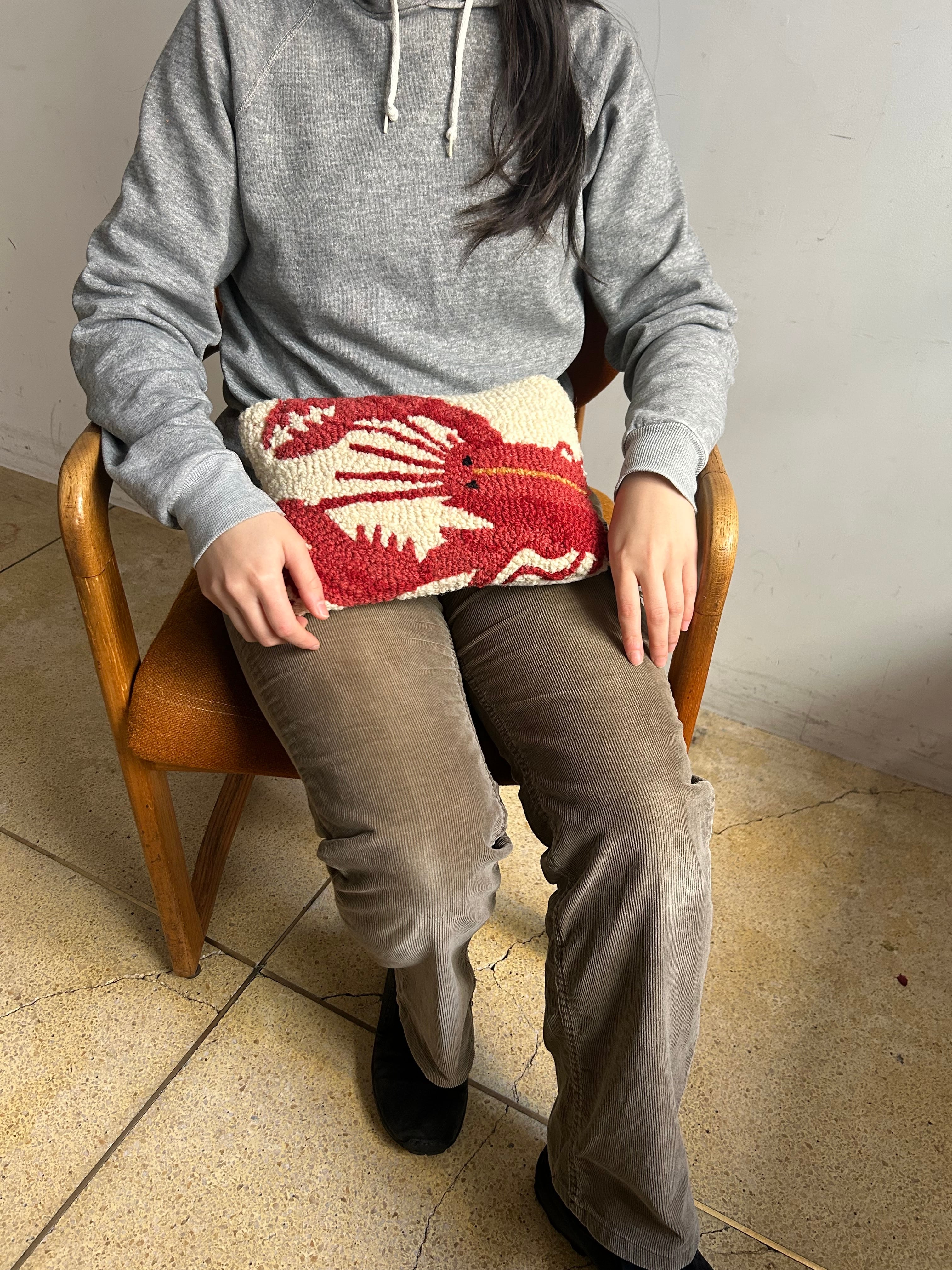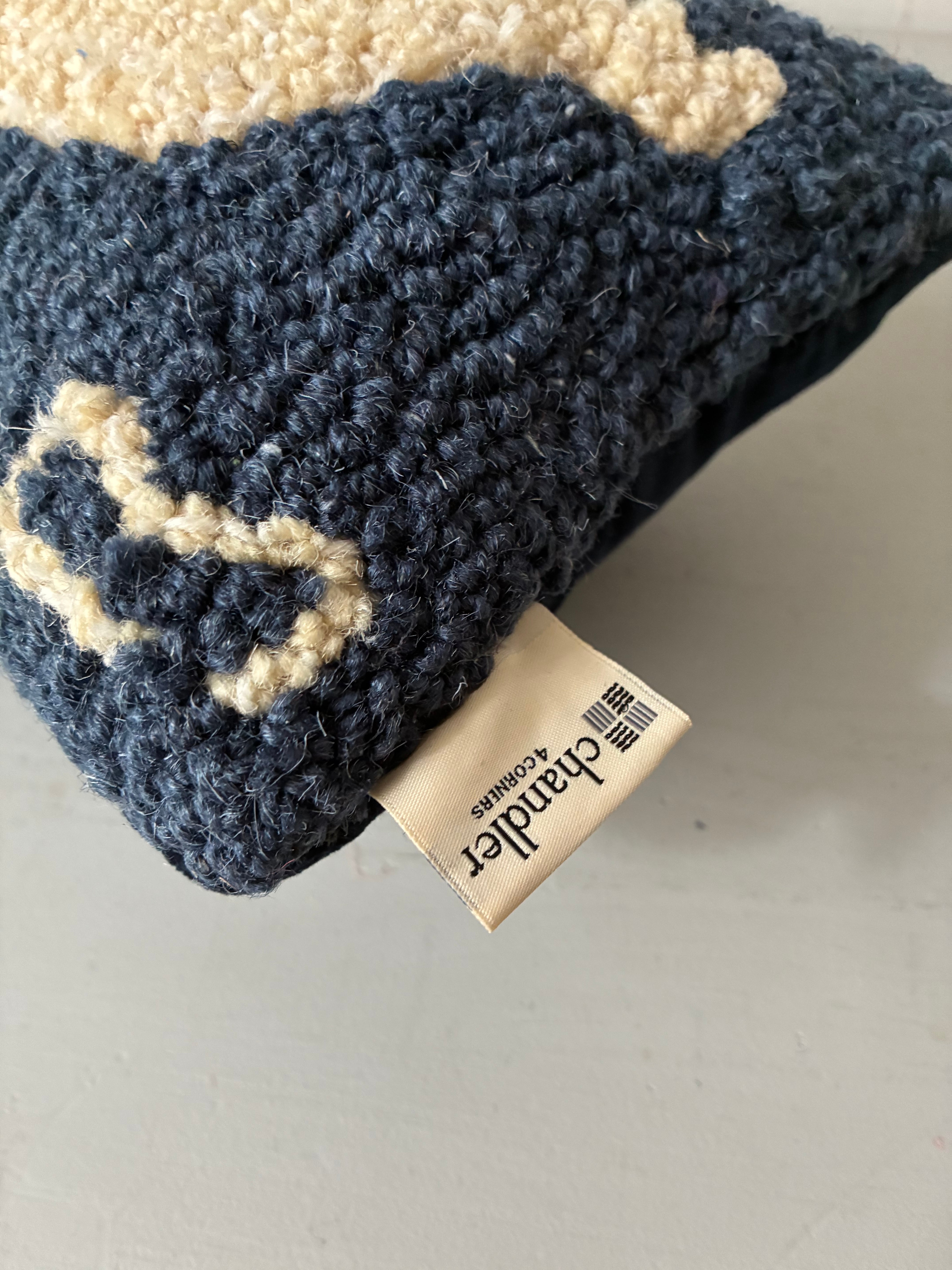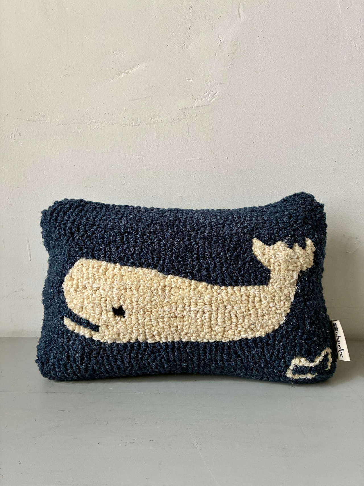 表面に、手作業で打ったパイルでユニークなロブスター柄とクジラ柄をデザインしたスロー・ピロー。