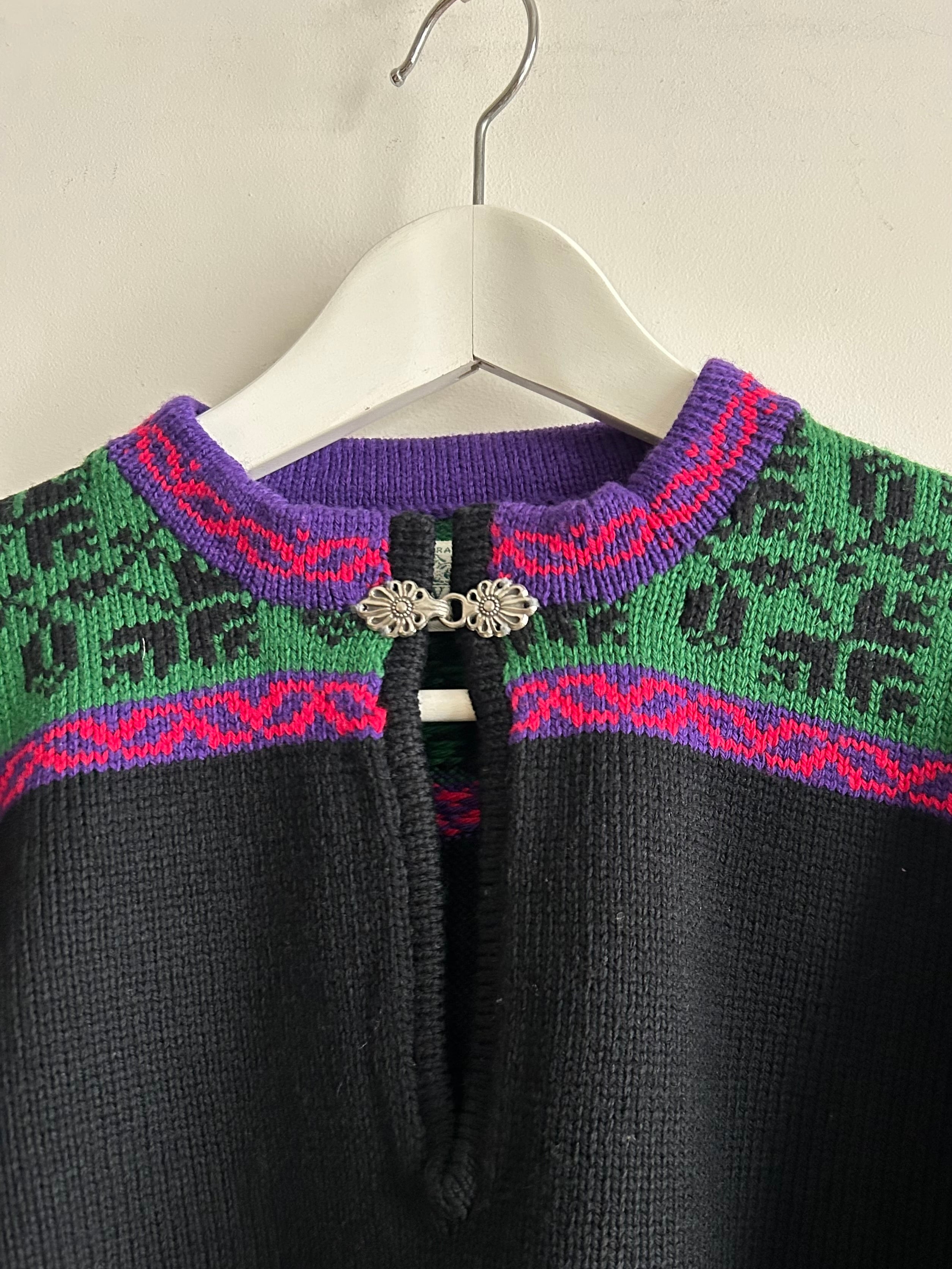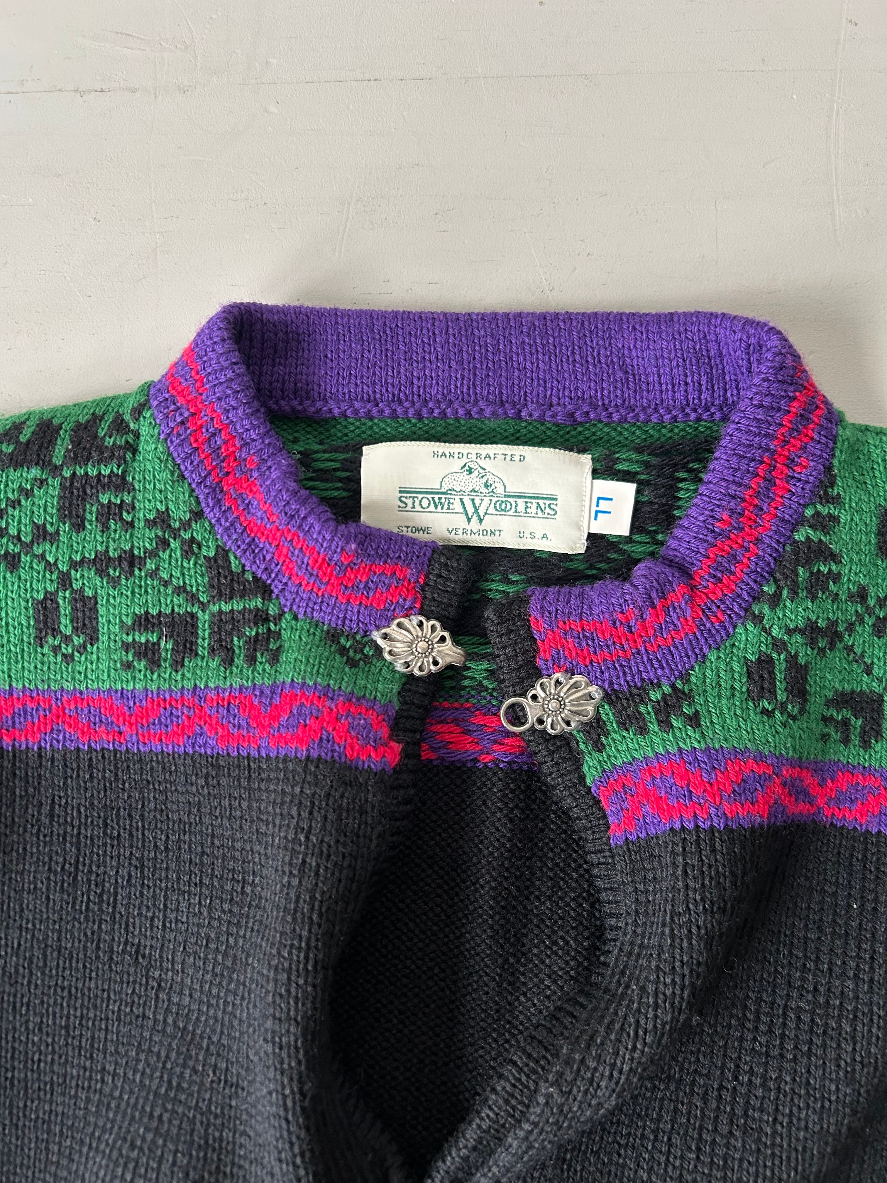 "STONE WOOLENS" VERMONT USA NORDIC MOTIF SWEATER HAND CRAFTED