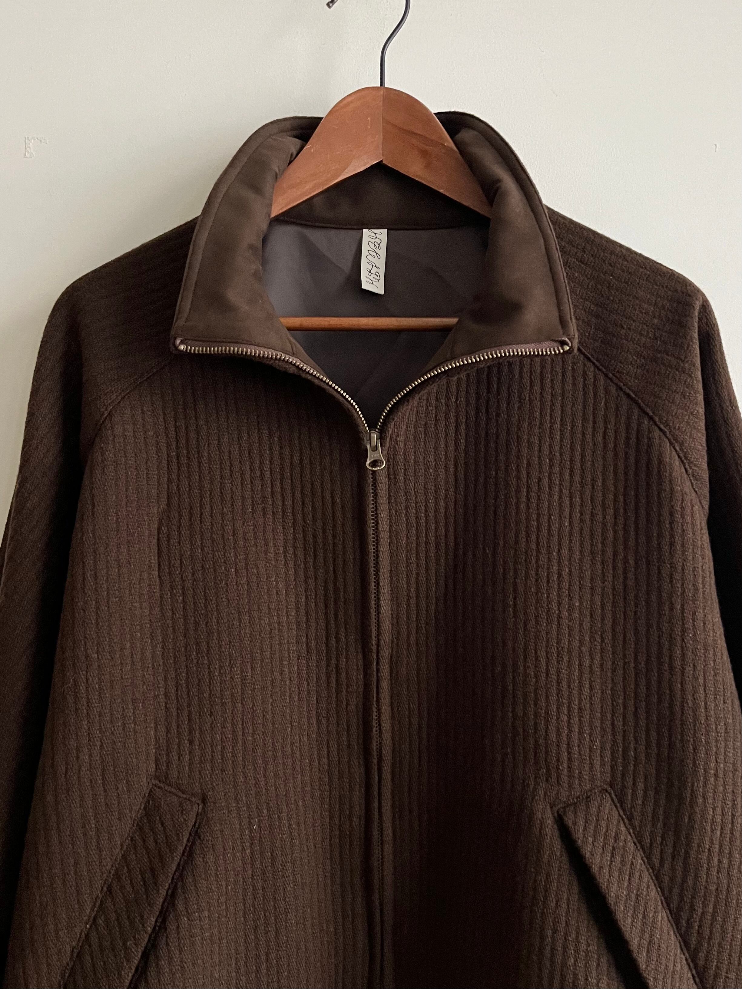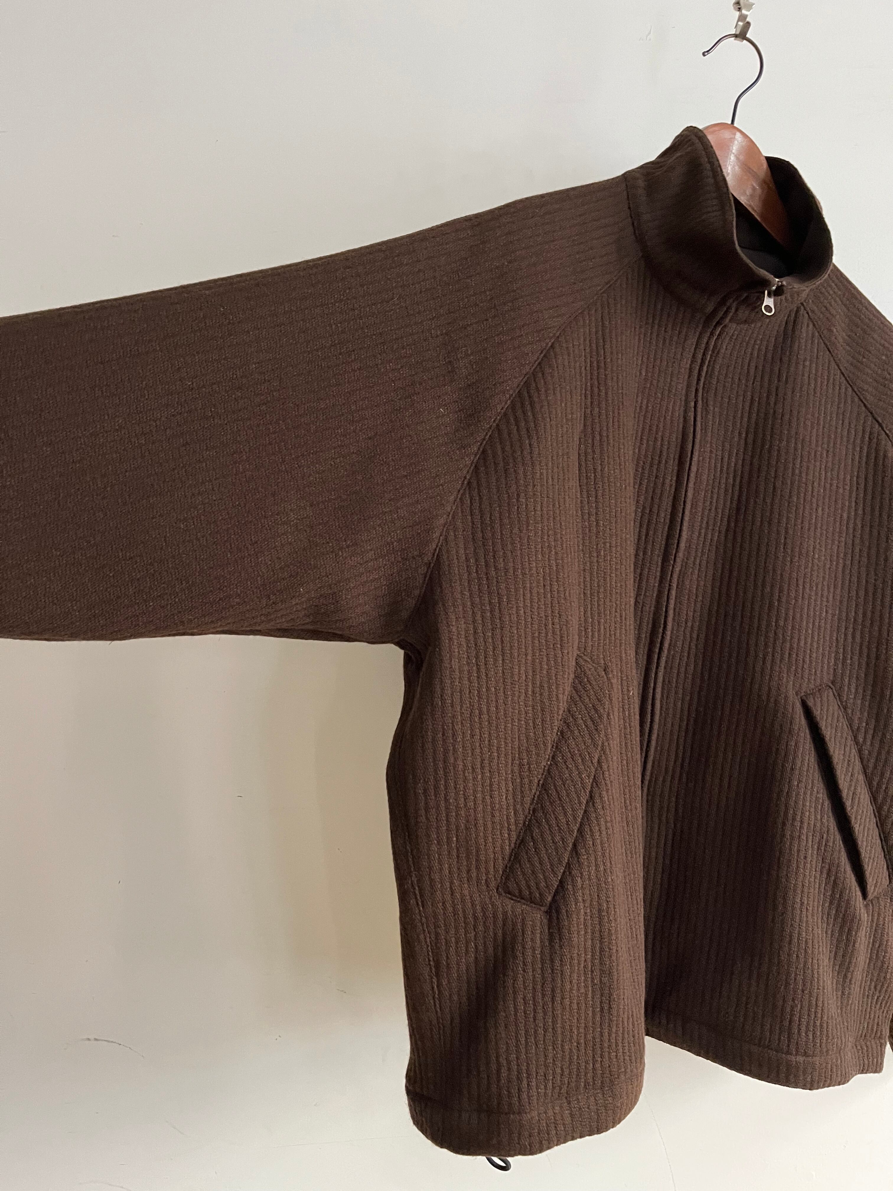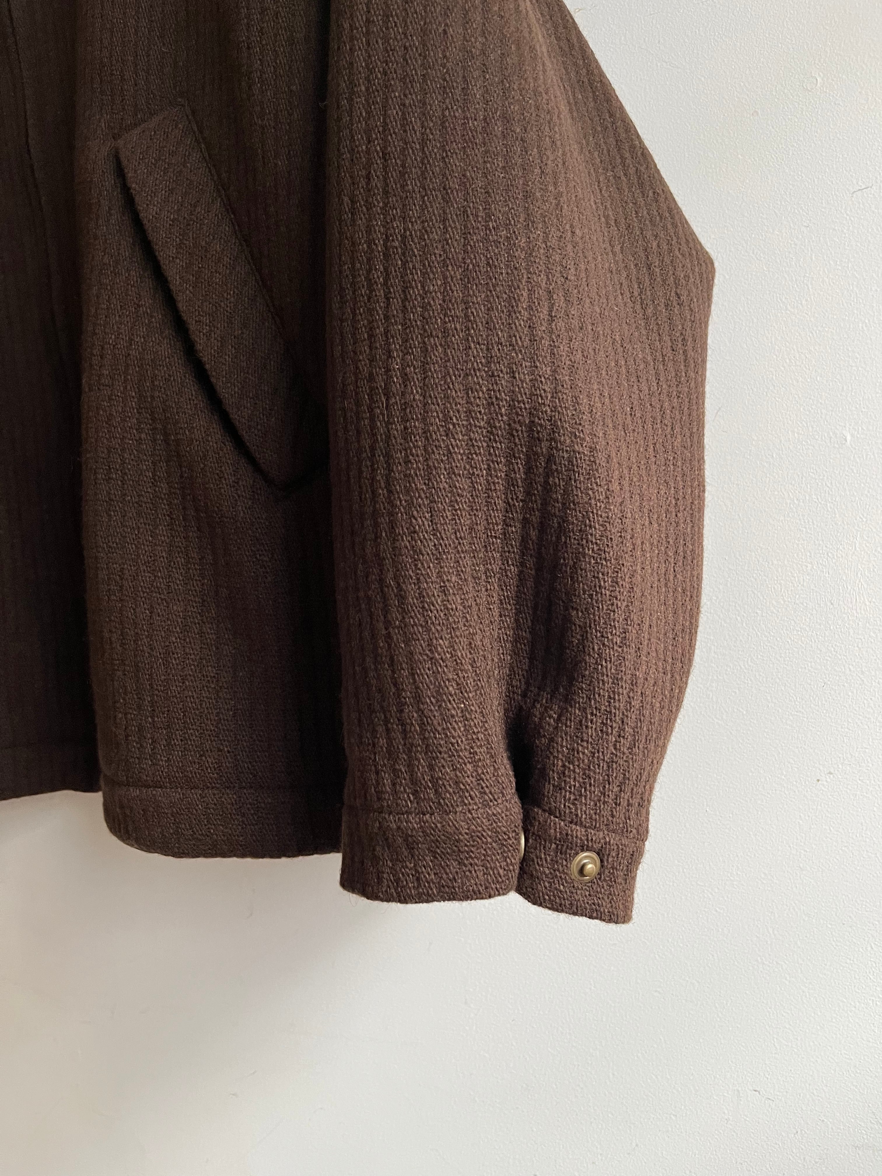 江戸時代からの織物中心地、尾州(愛知県一宮)より発掘された1990年代前後製造のウール生地を使用したラグランスリーブブルゾンジャケット。
