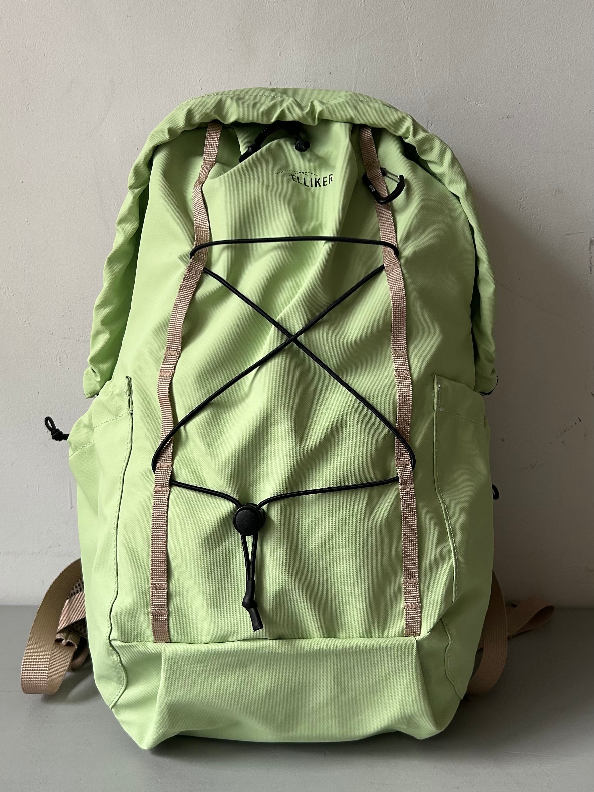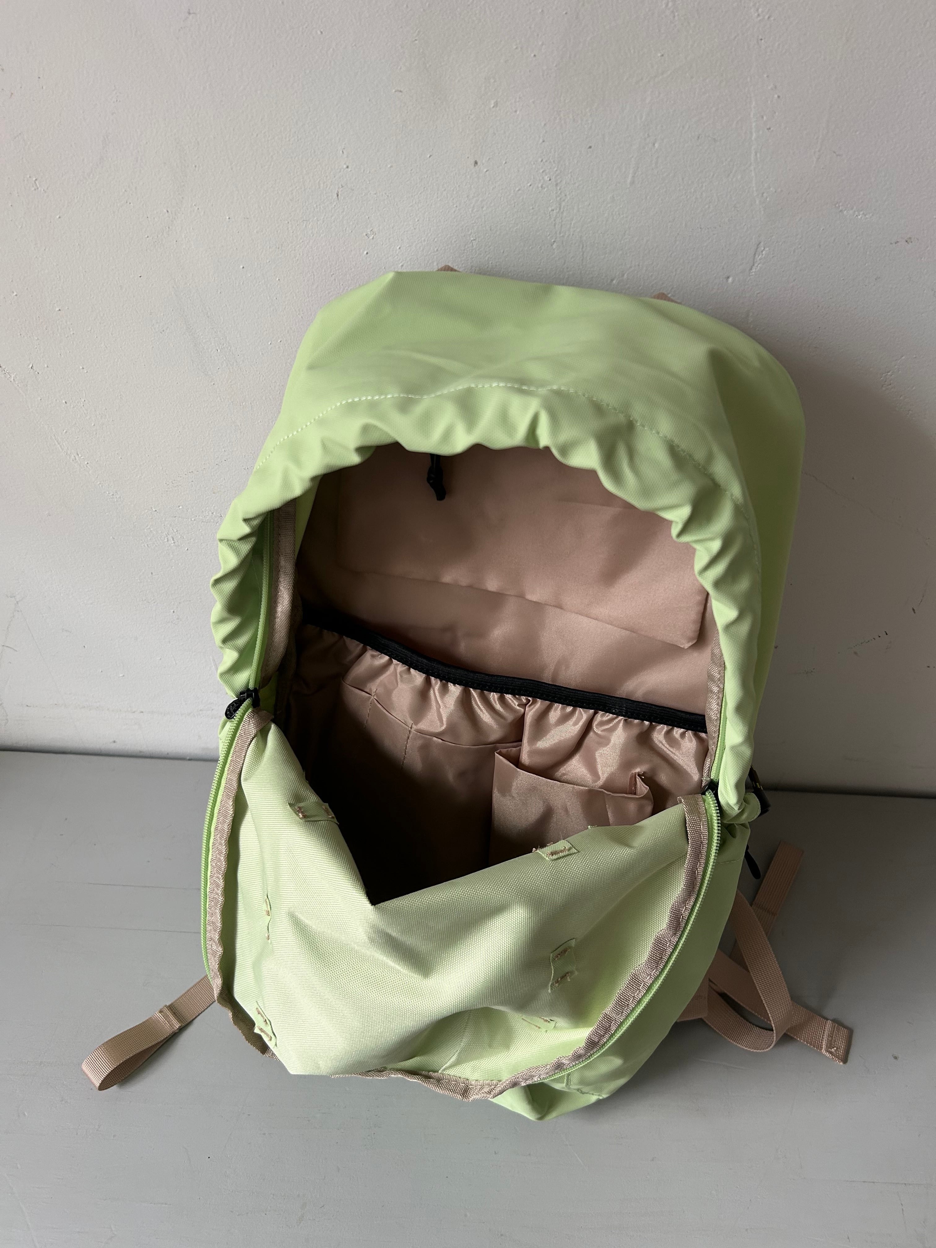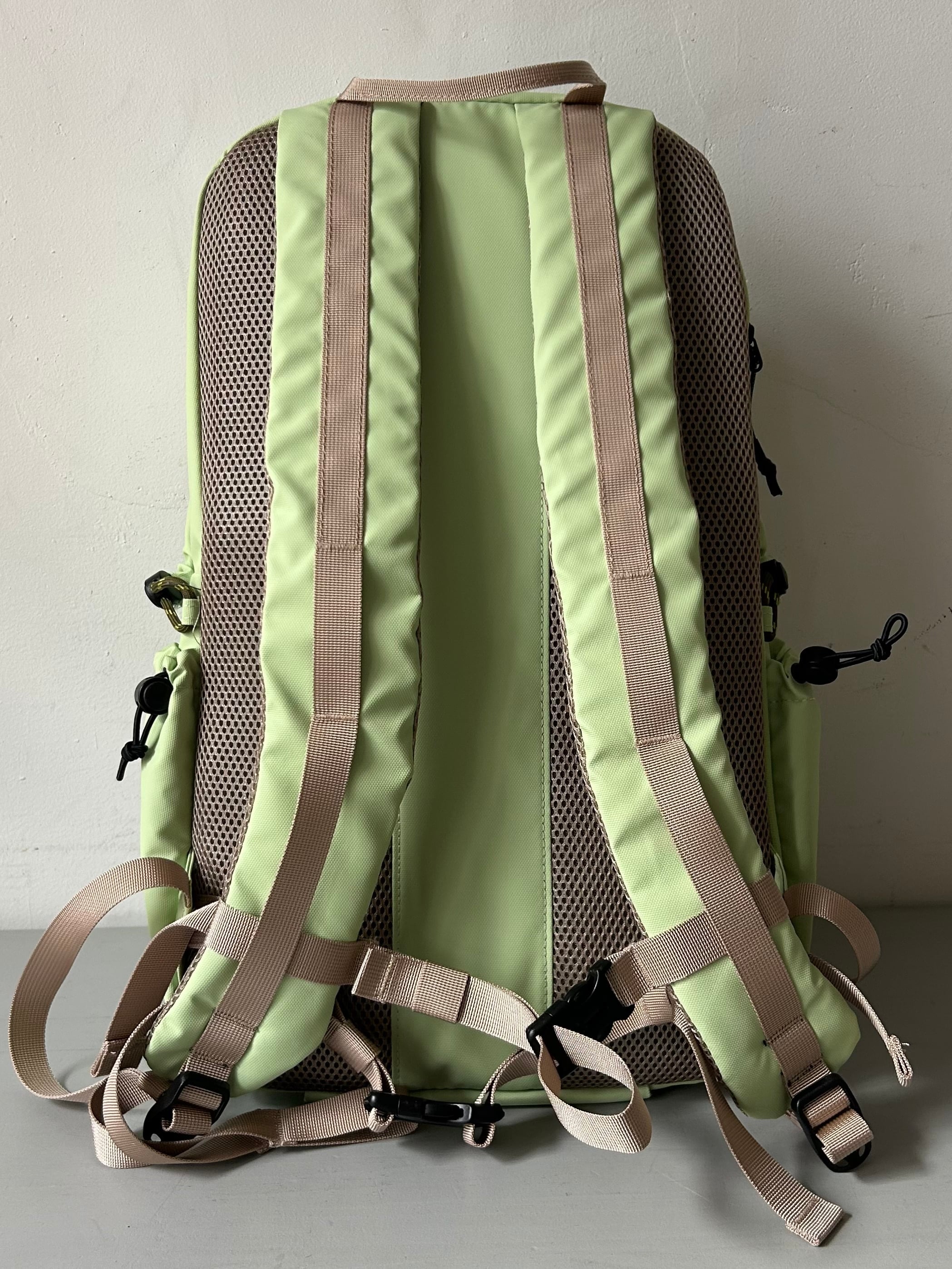 容量は22L。開口部が大きく開くダブルファスナー仕様で荷物の出し入れがしやすく、内側にはペンポケットやジッパーポケット付きで小物の整理に便利。