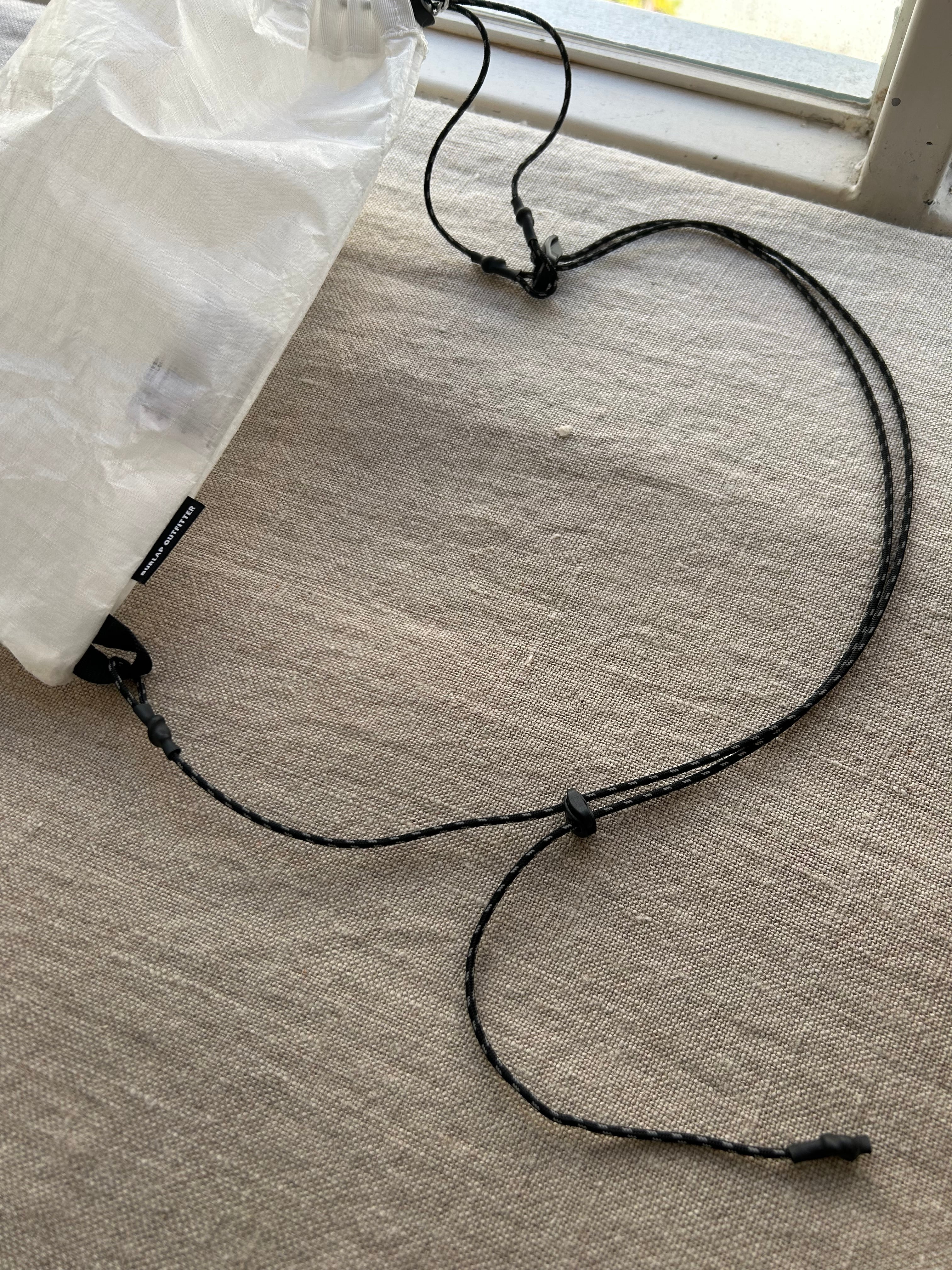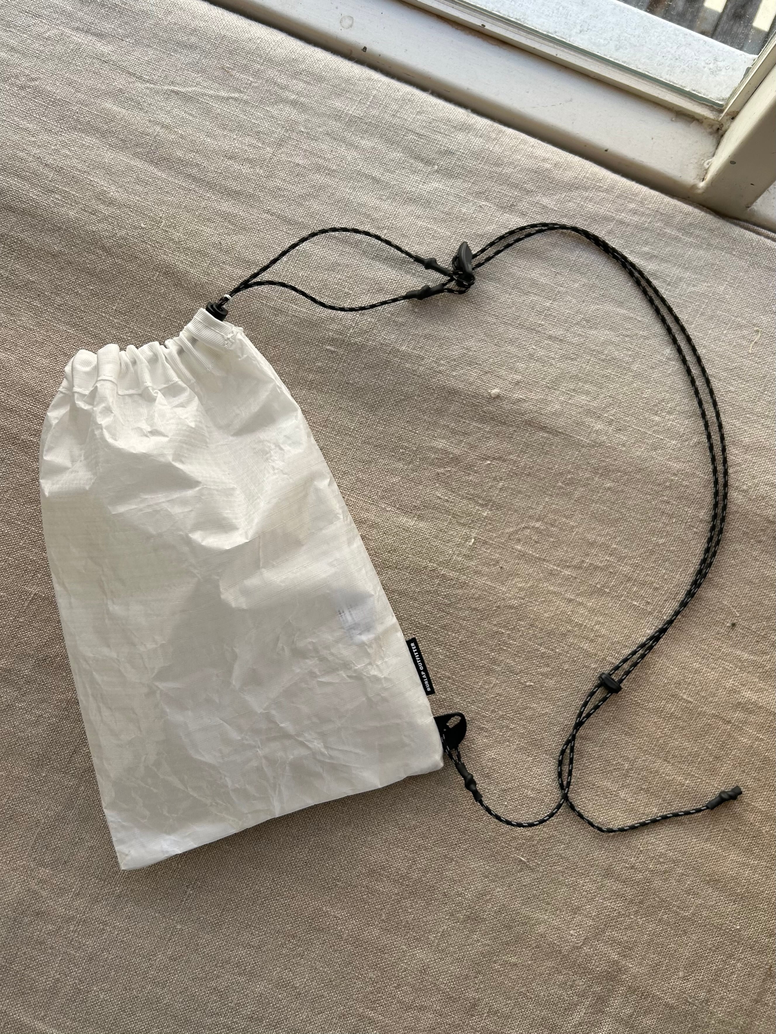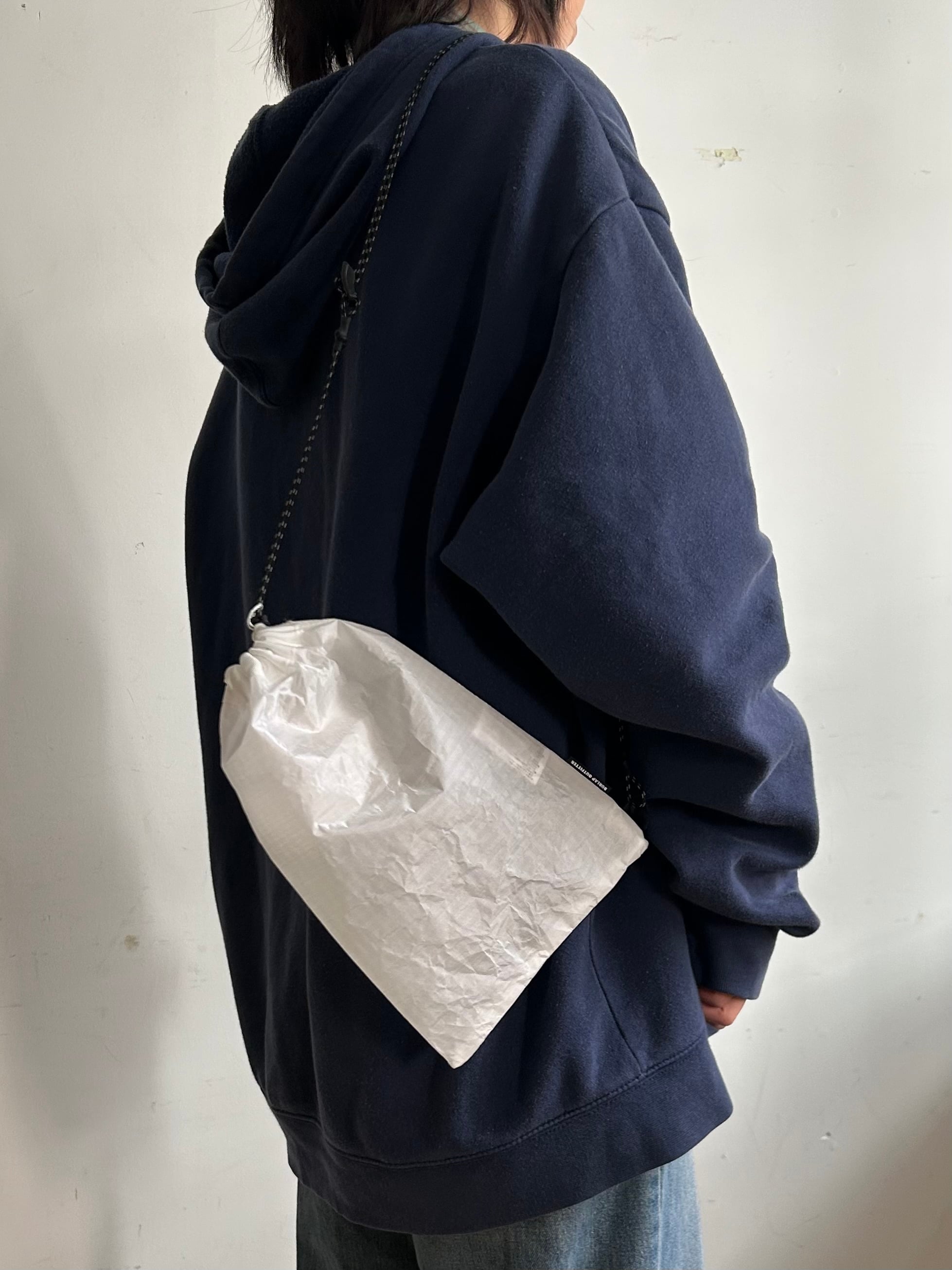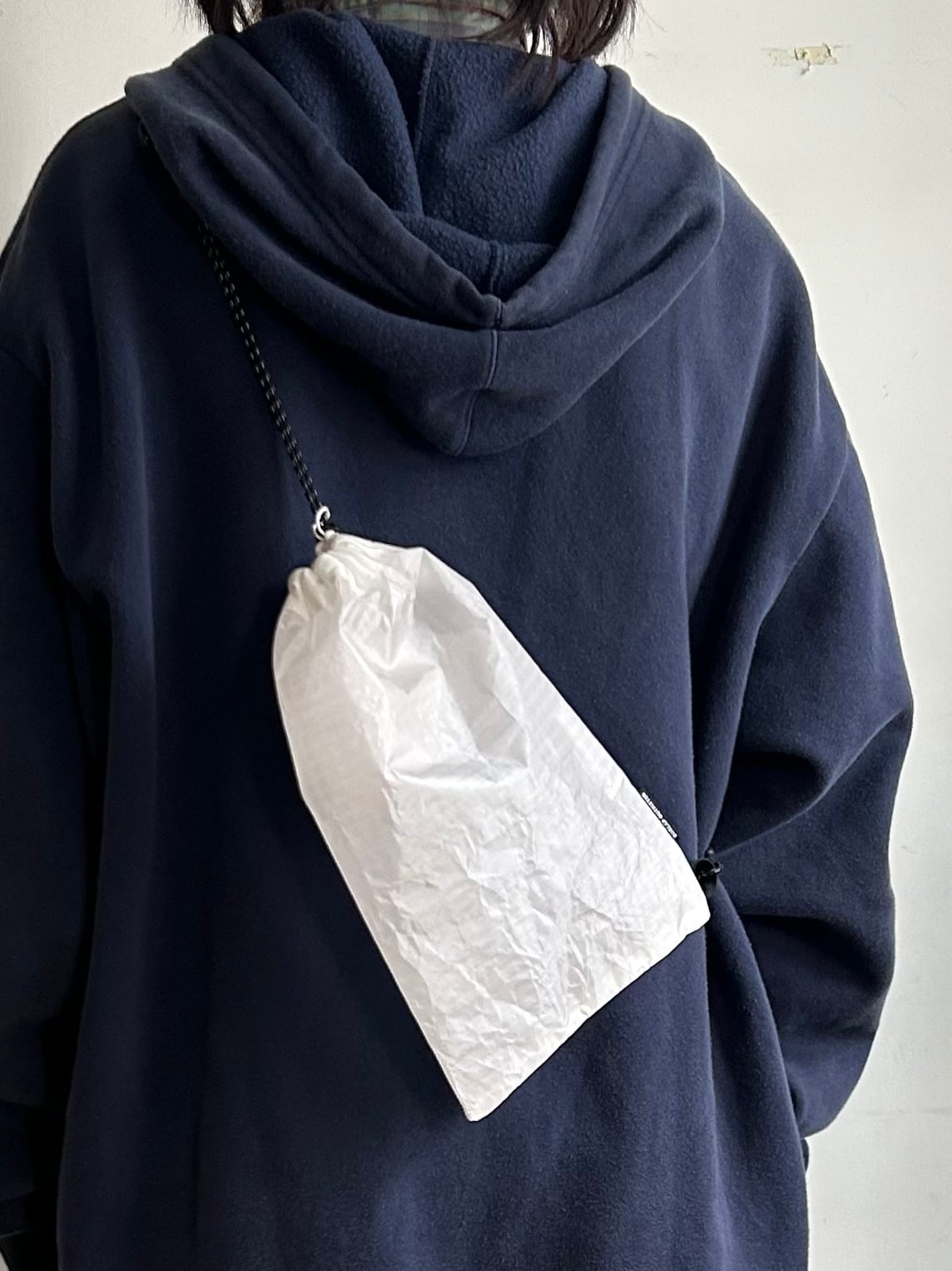 斜め掛けのショッパーバッグを超小型にし、Challenge Sailcloth社のリサイクル素材を使用して製作されています。