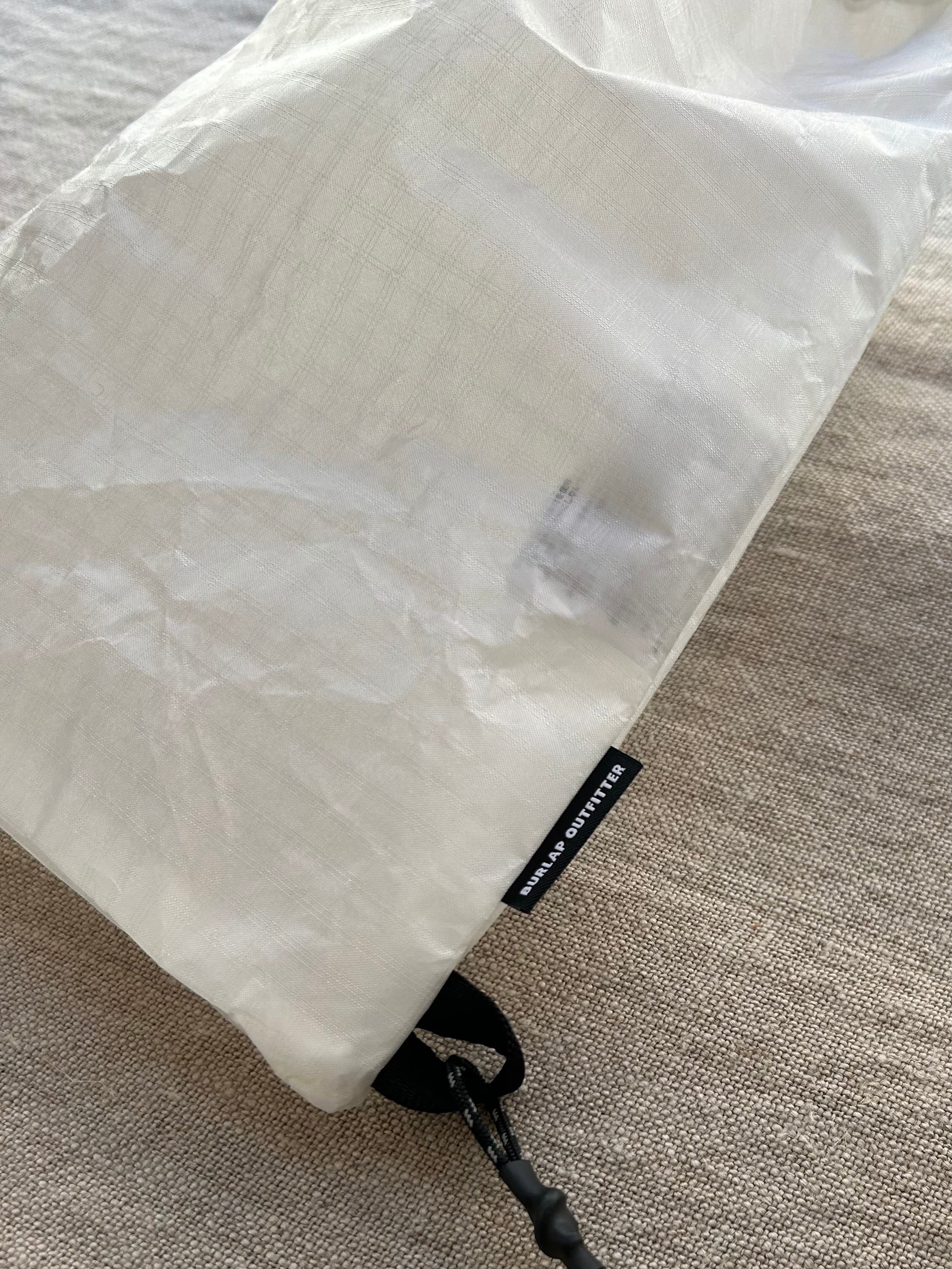 3レイヤーのリップストップポリエステルをリサイクルフィルムでラミネートコーティングされた超軽量・高耐水性・高強度素材です。