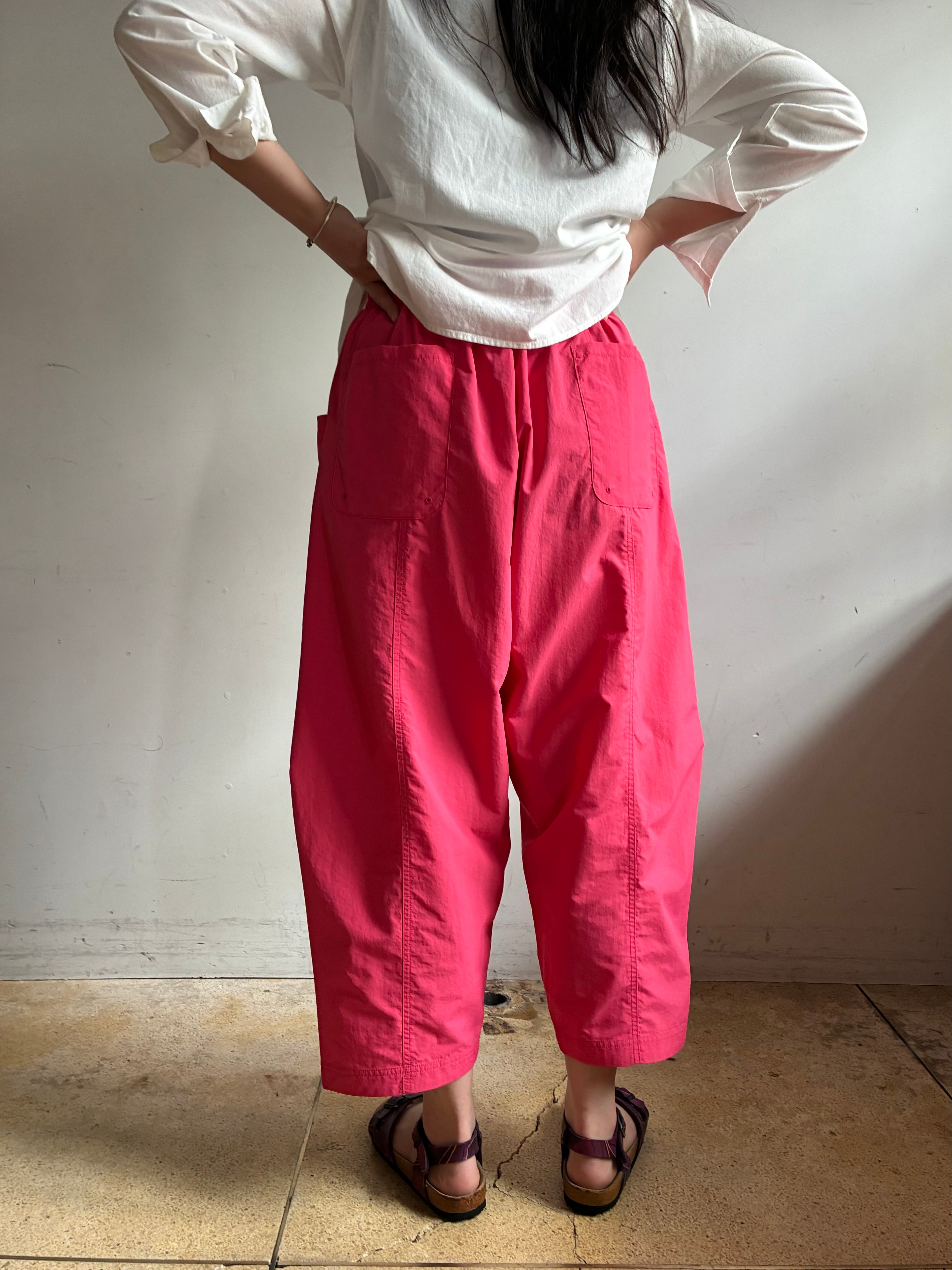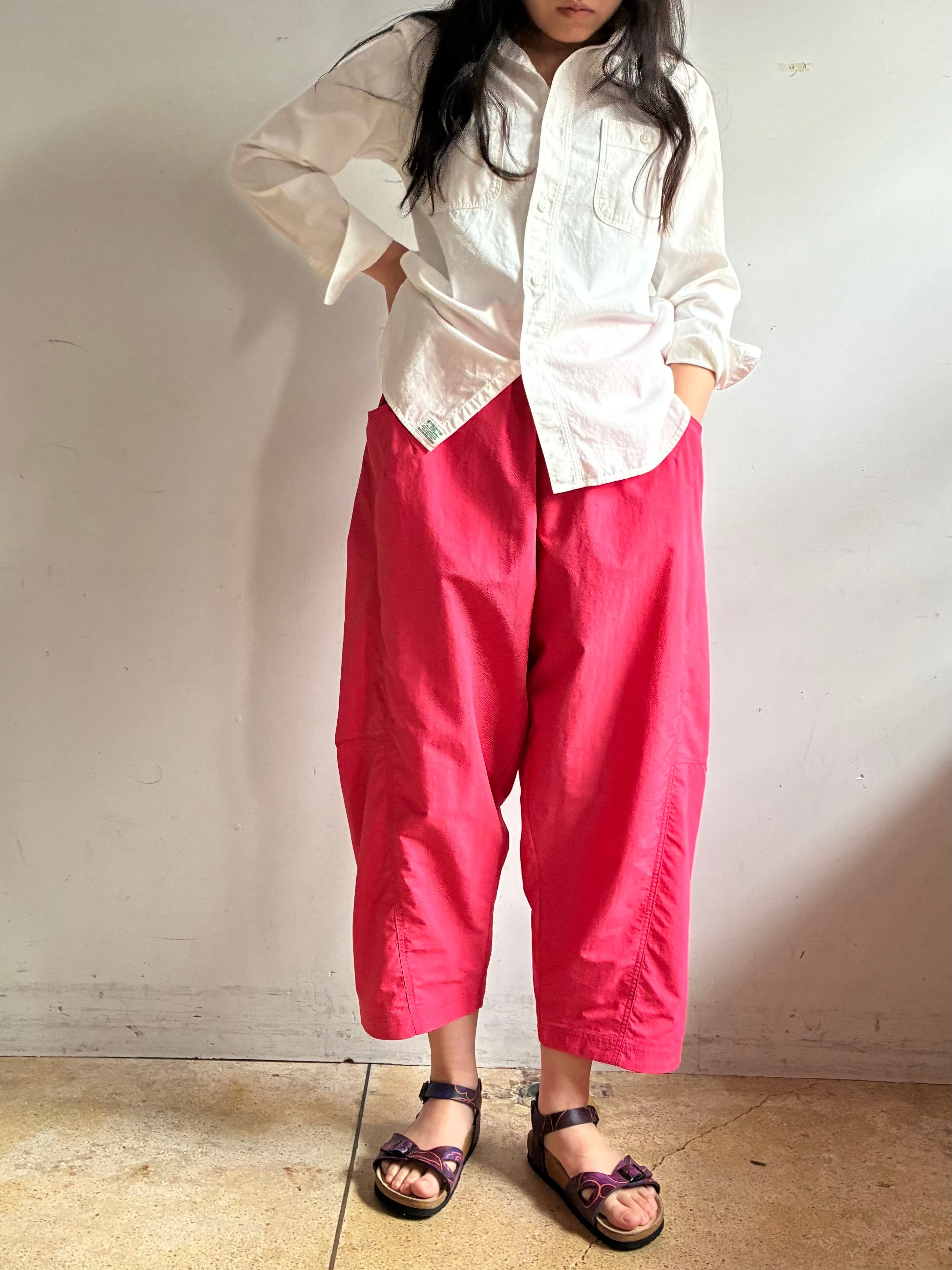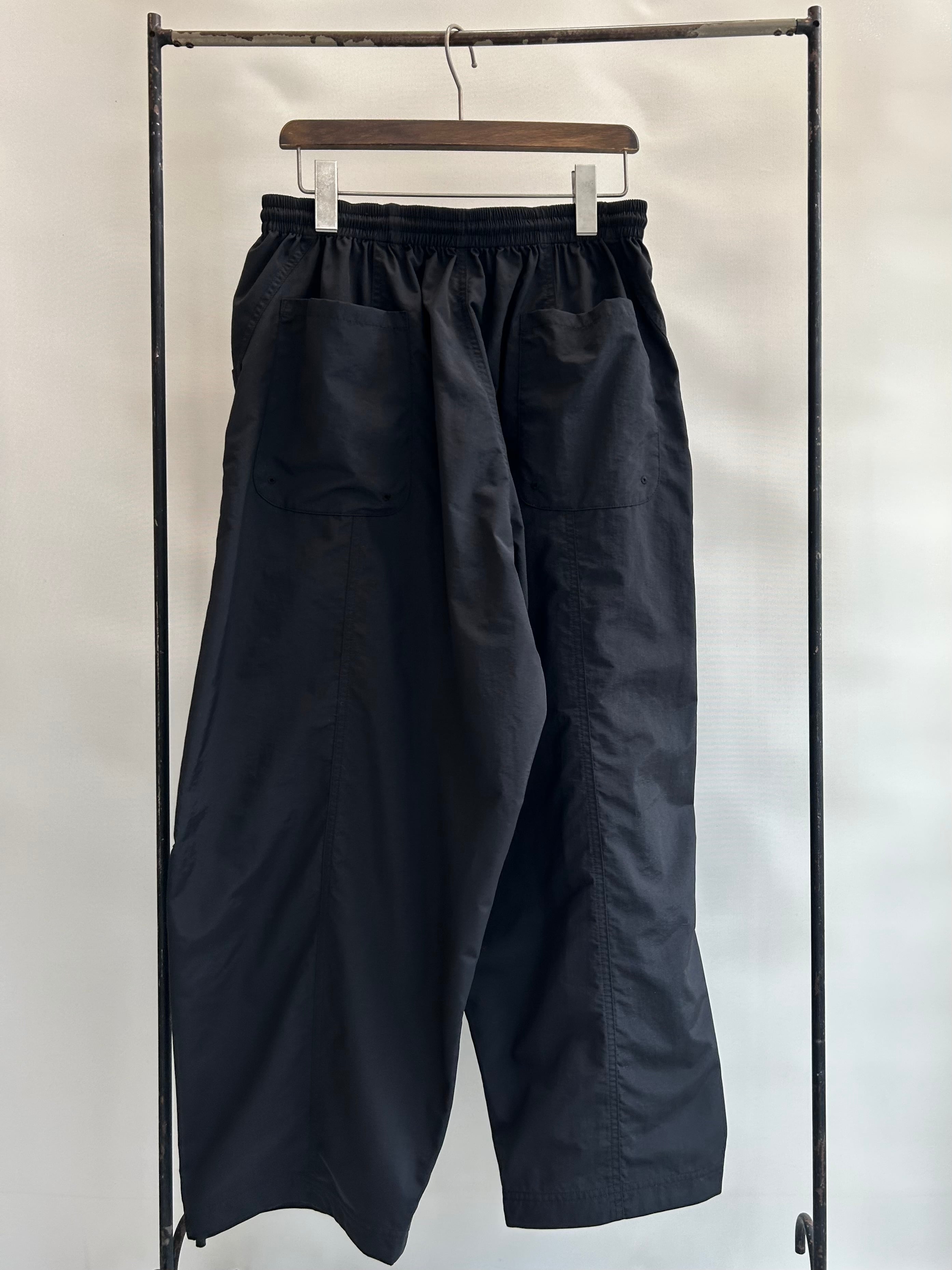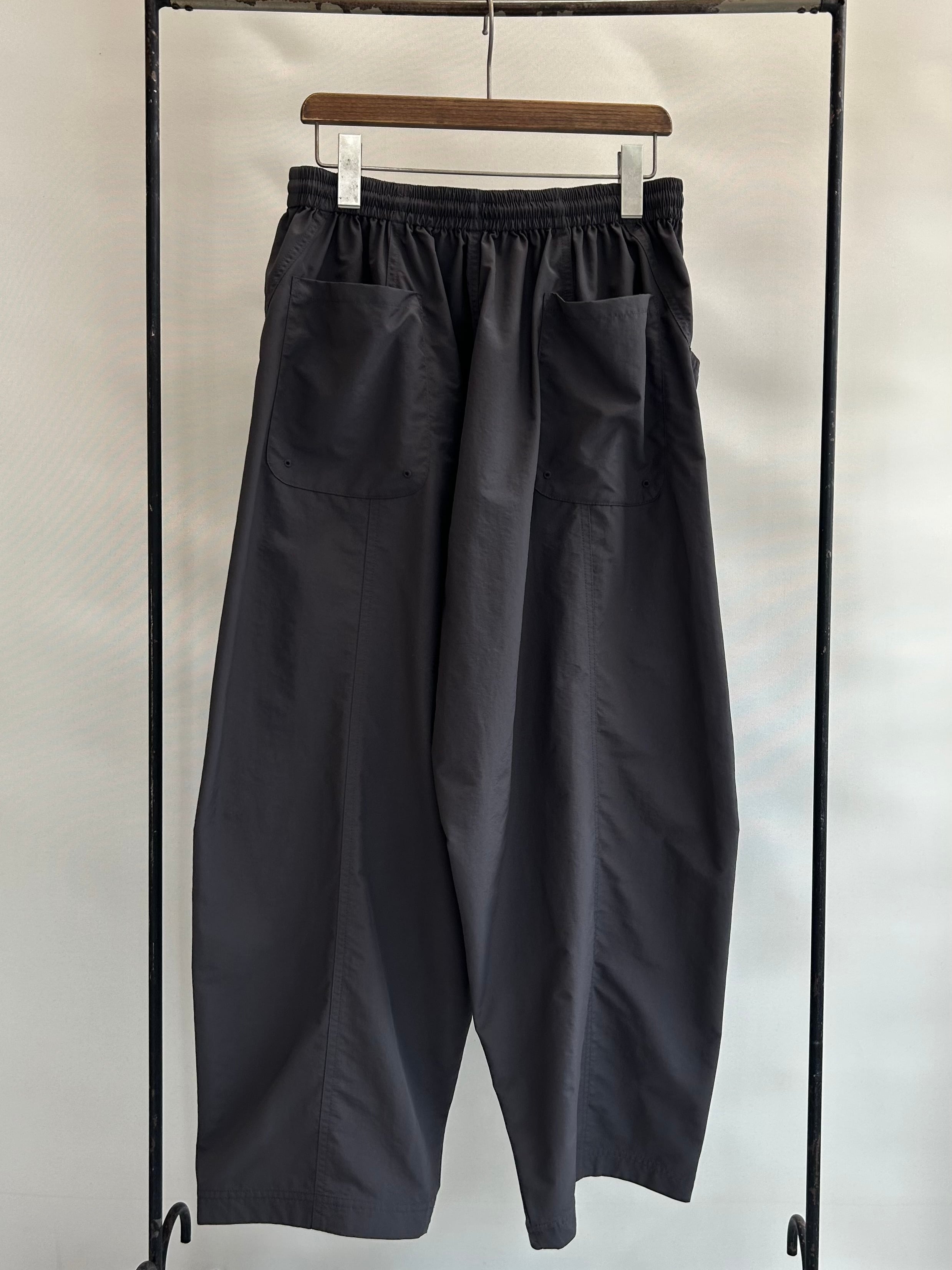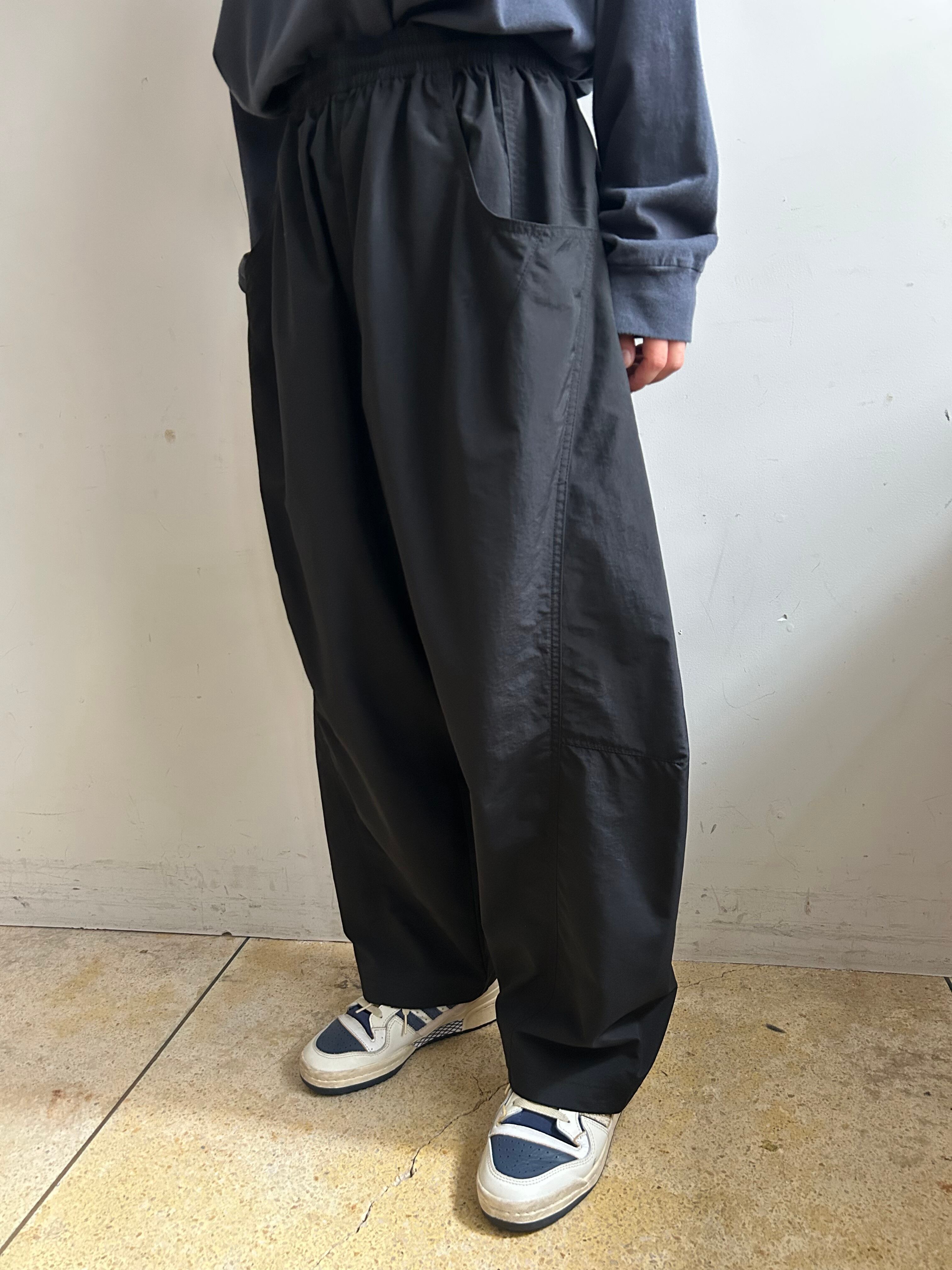 真夏の高温多湿な環境でも快適に過ごせる、軽量/速乾/UVカット機能を備えたSUPPLEXナイロン製のアイランドパンツ。斜めに大きく入った切り返しで立体的なパターンになっており、バルーンシルエットが特徴的。