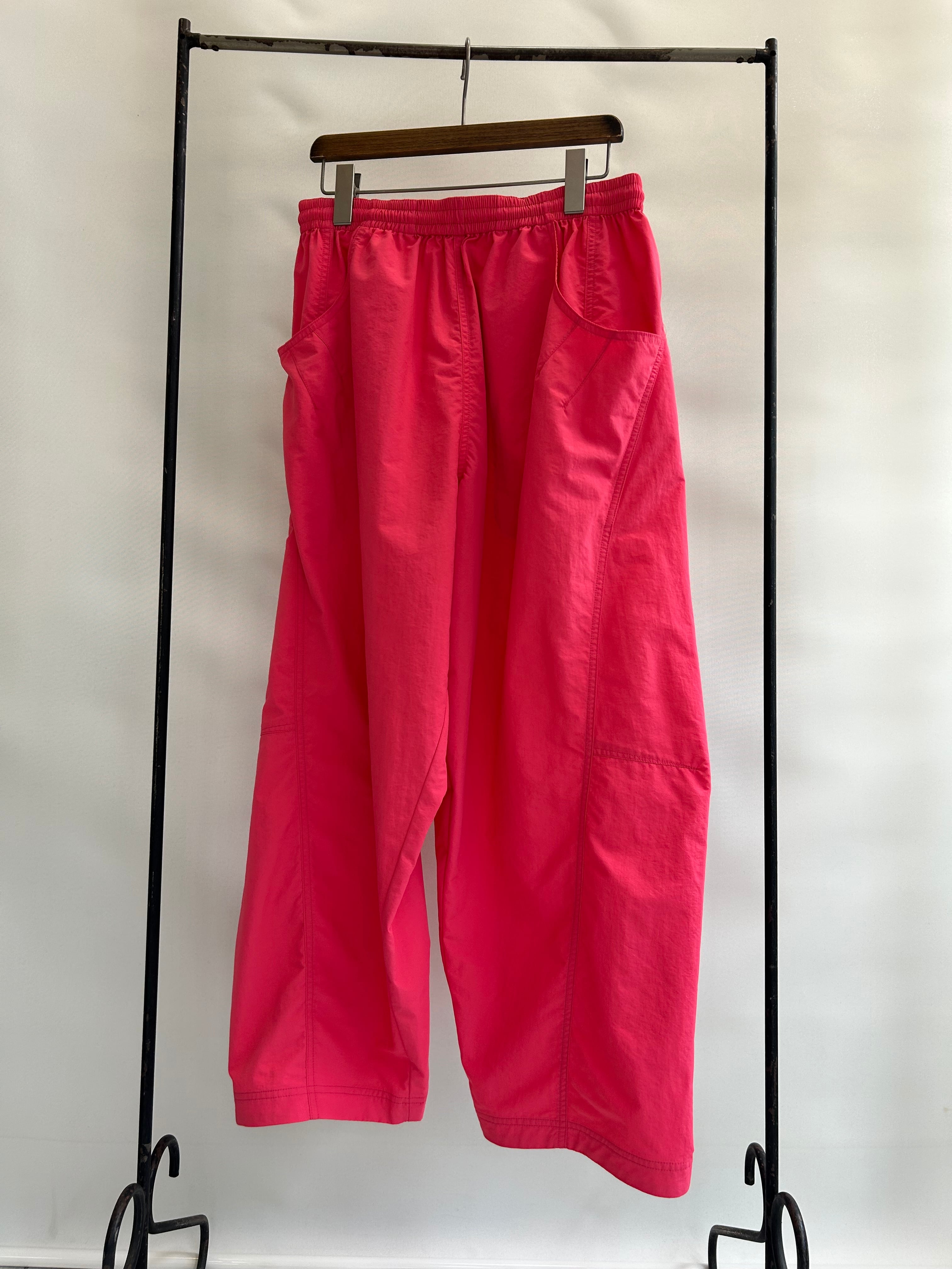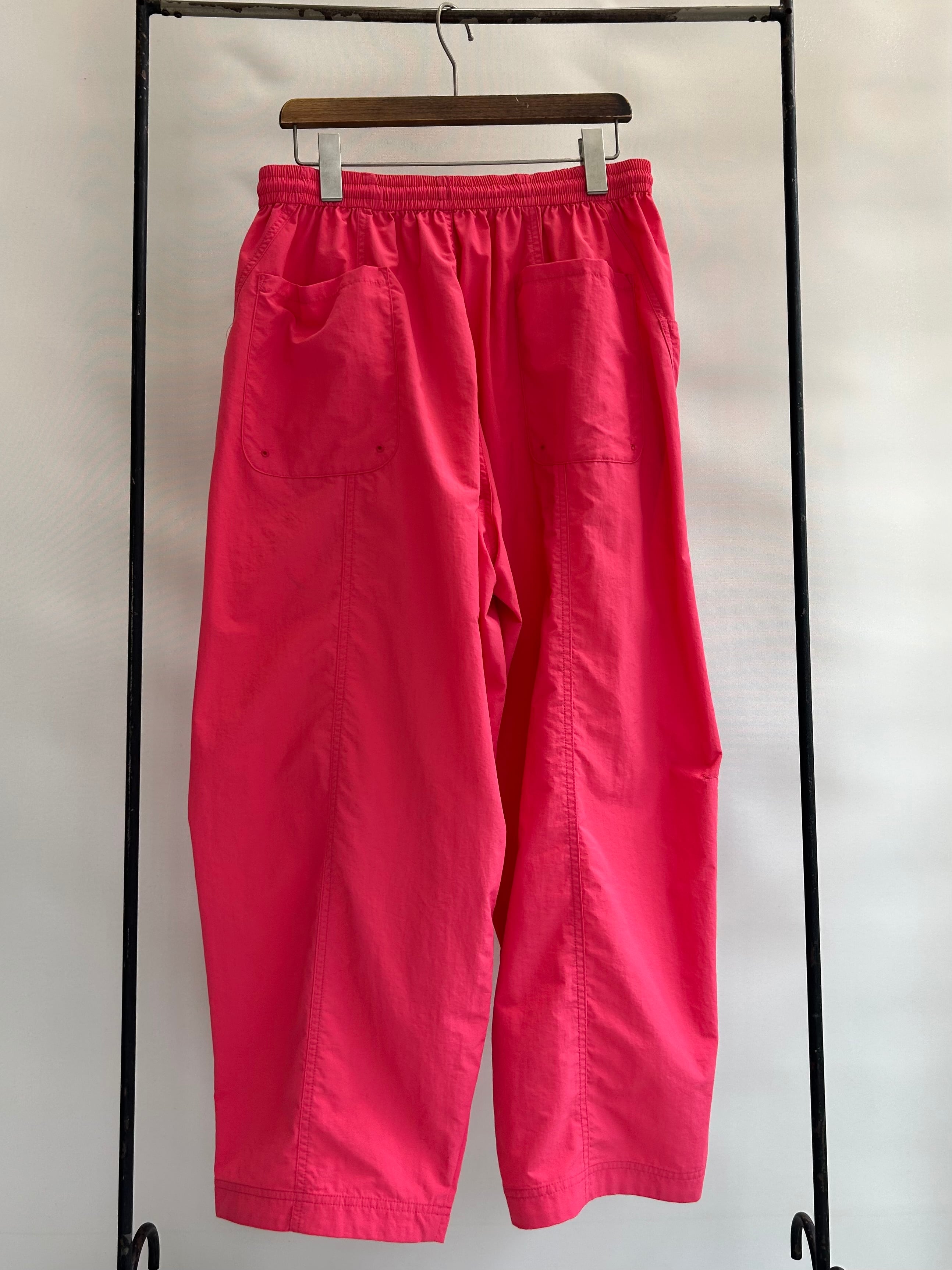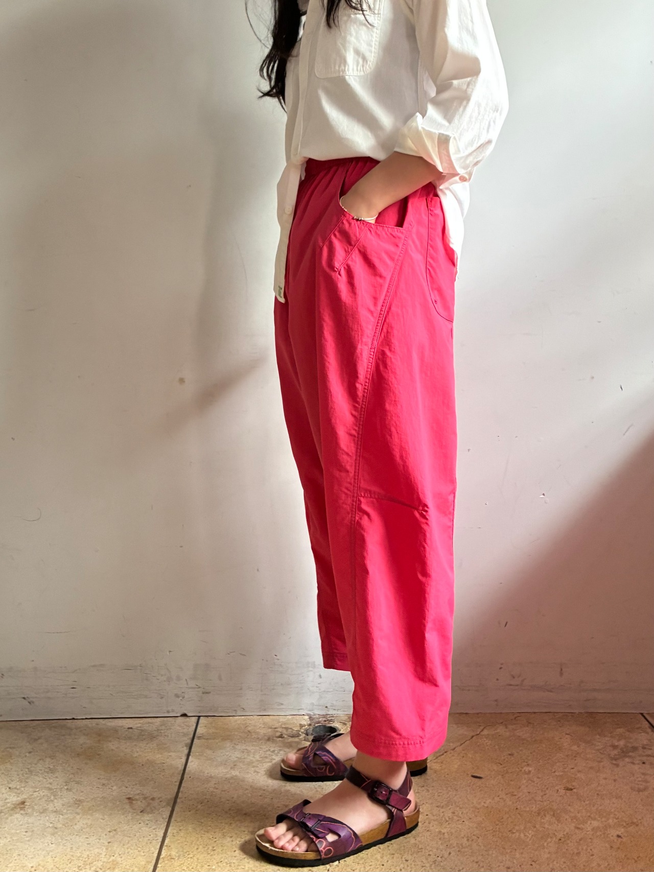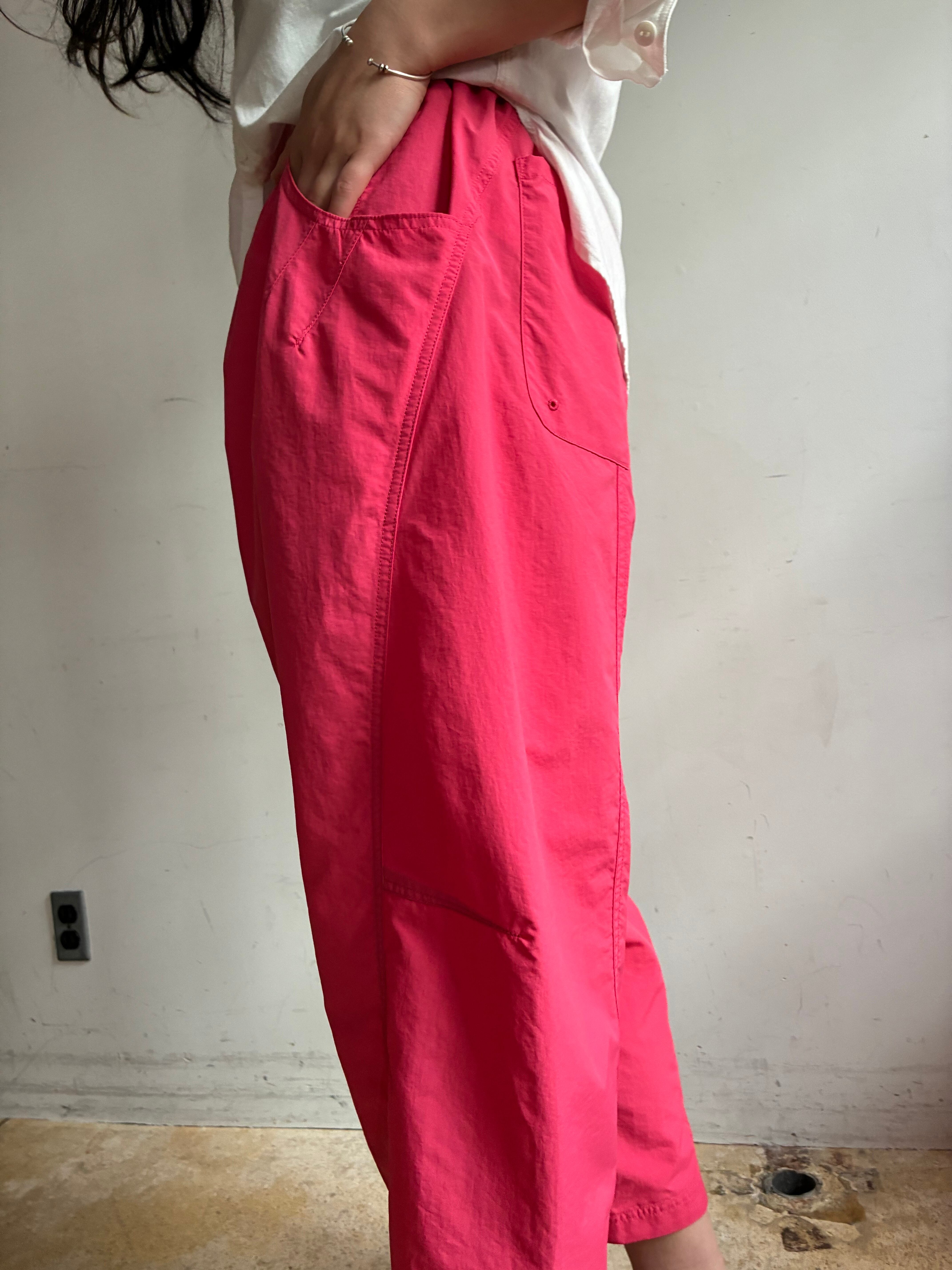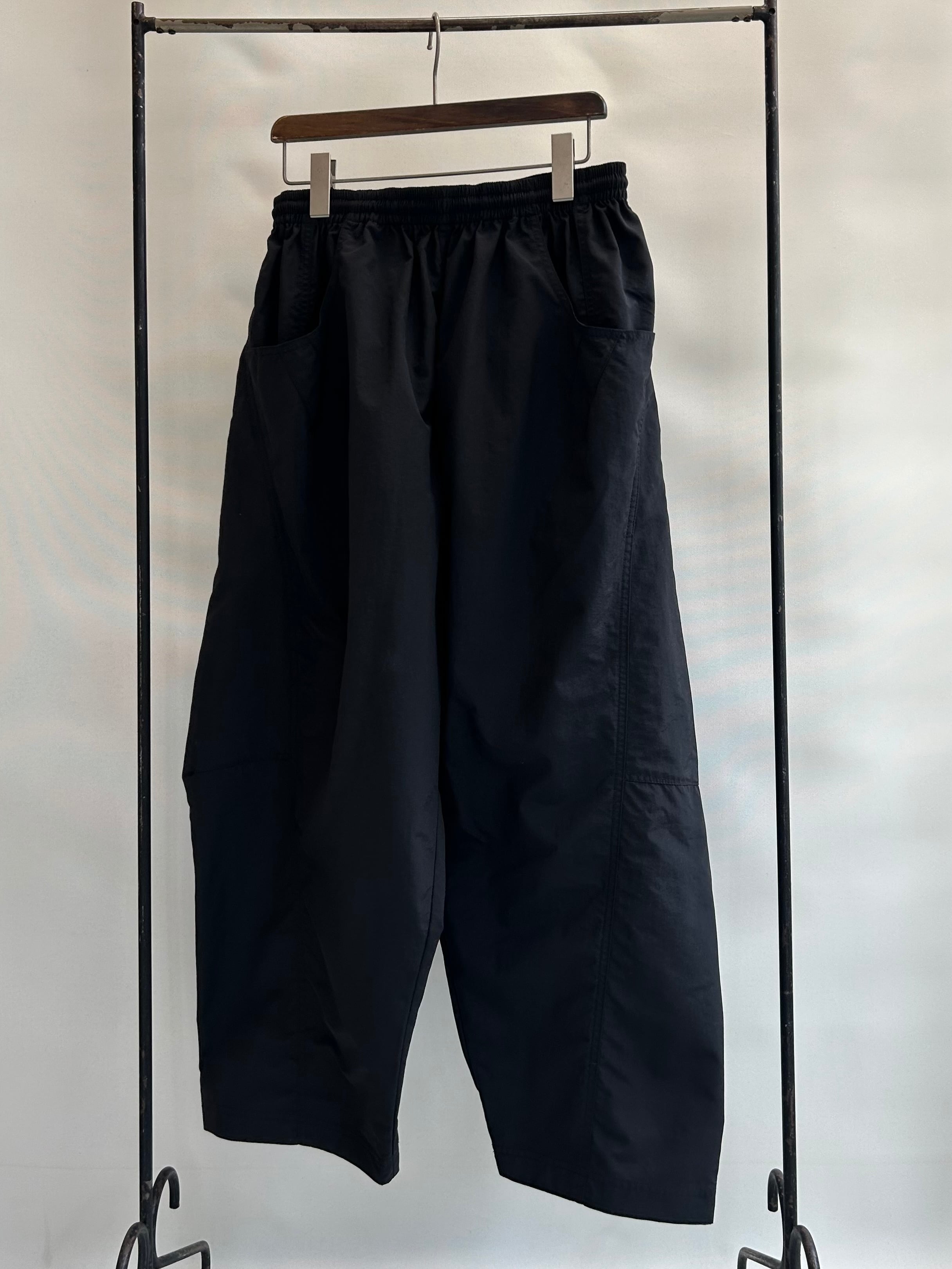 真夏の高温多湿な環境でも快適に過ごせる、軽量/速乾/UVカット機能を備えたSUPPLEXナイロン製のアイランドパンツ。斜めに大きく入った切り返しで立体的なパターンになっており、バルーンシルエットが特徴的。