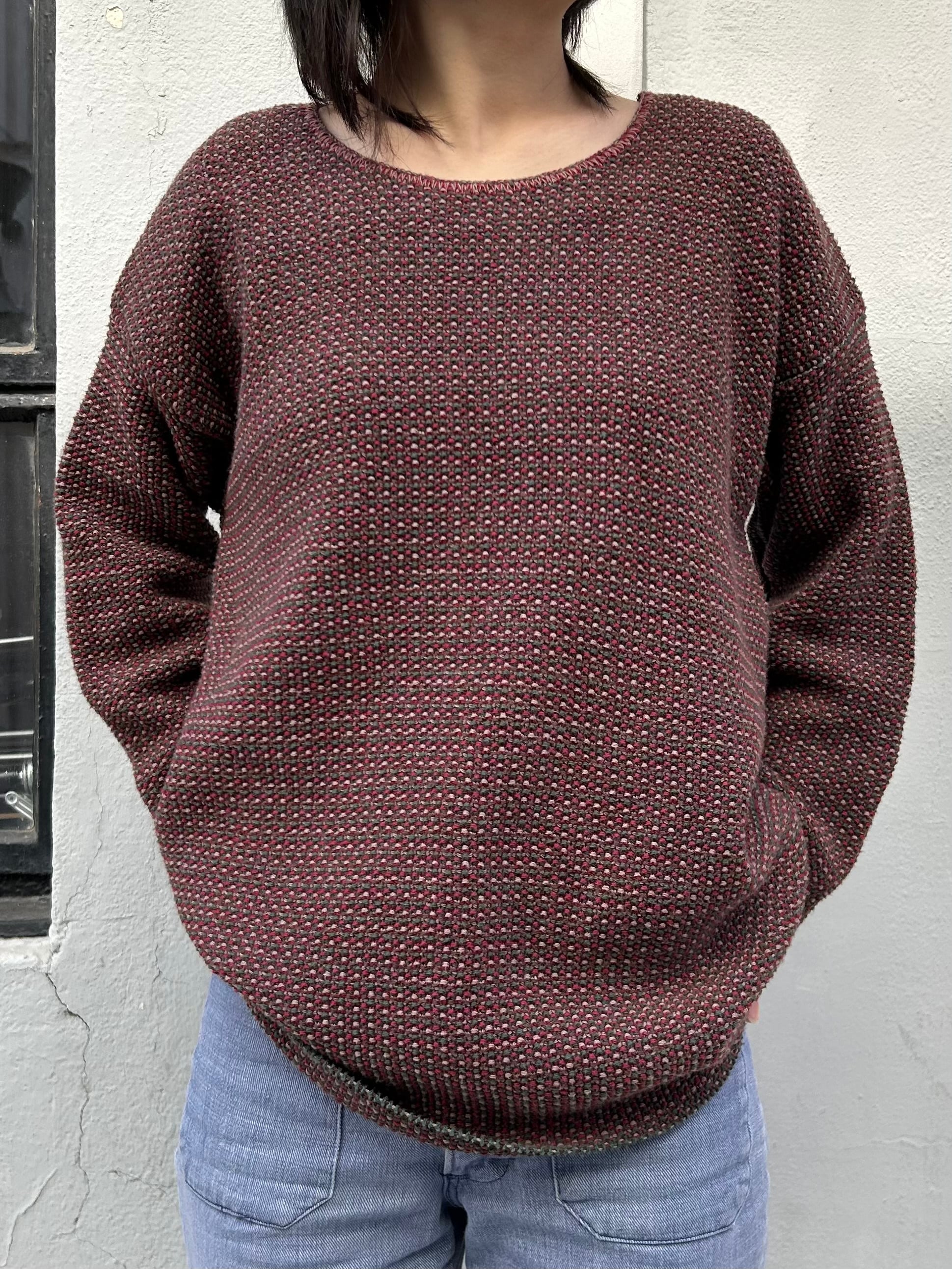 凝った編み目と落ち着いた色のシンプルな1枚
