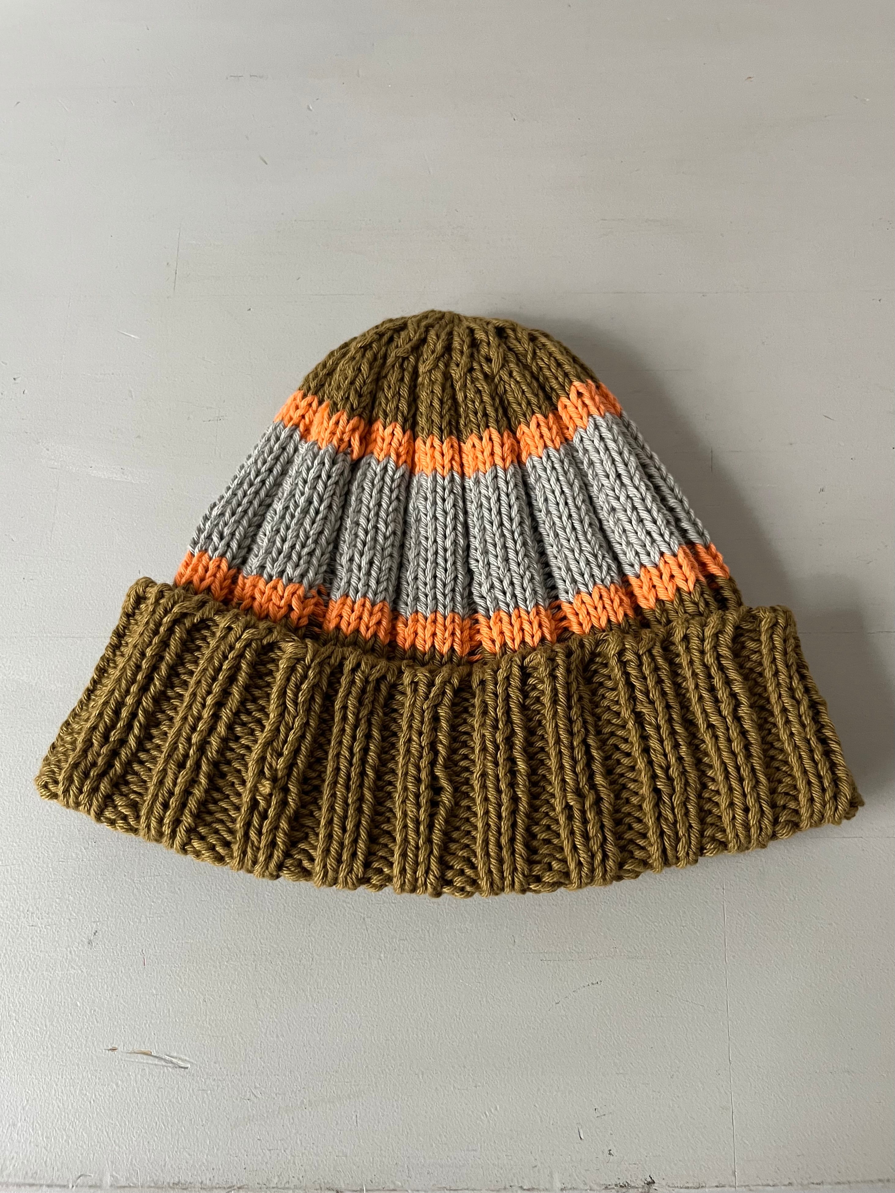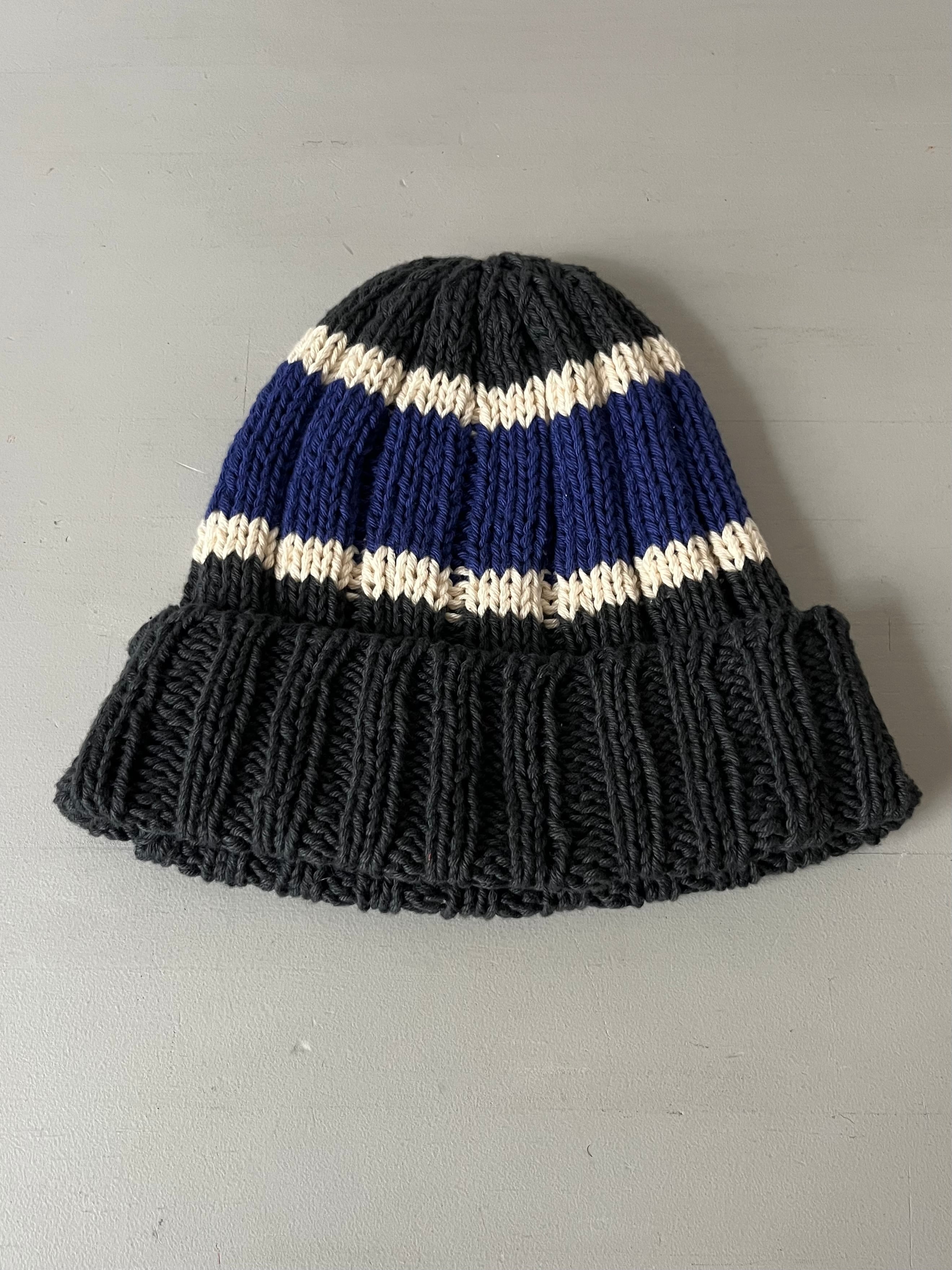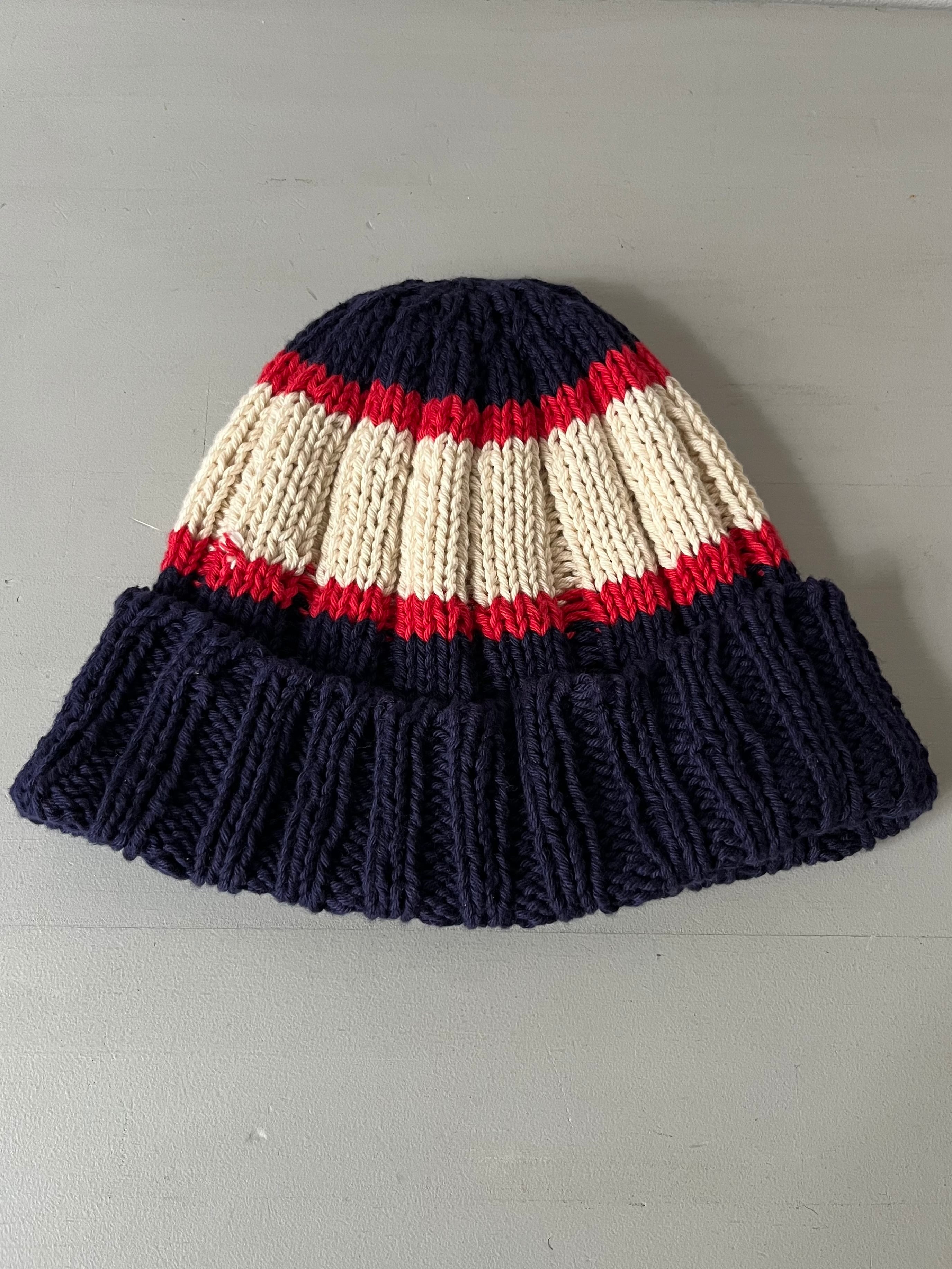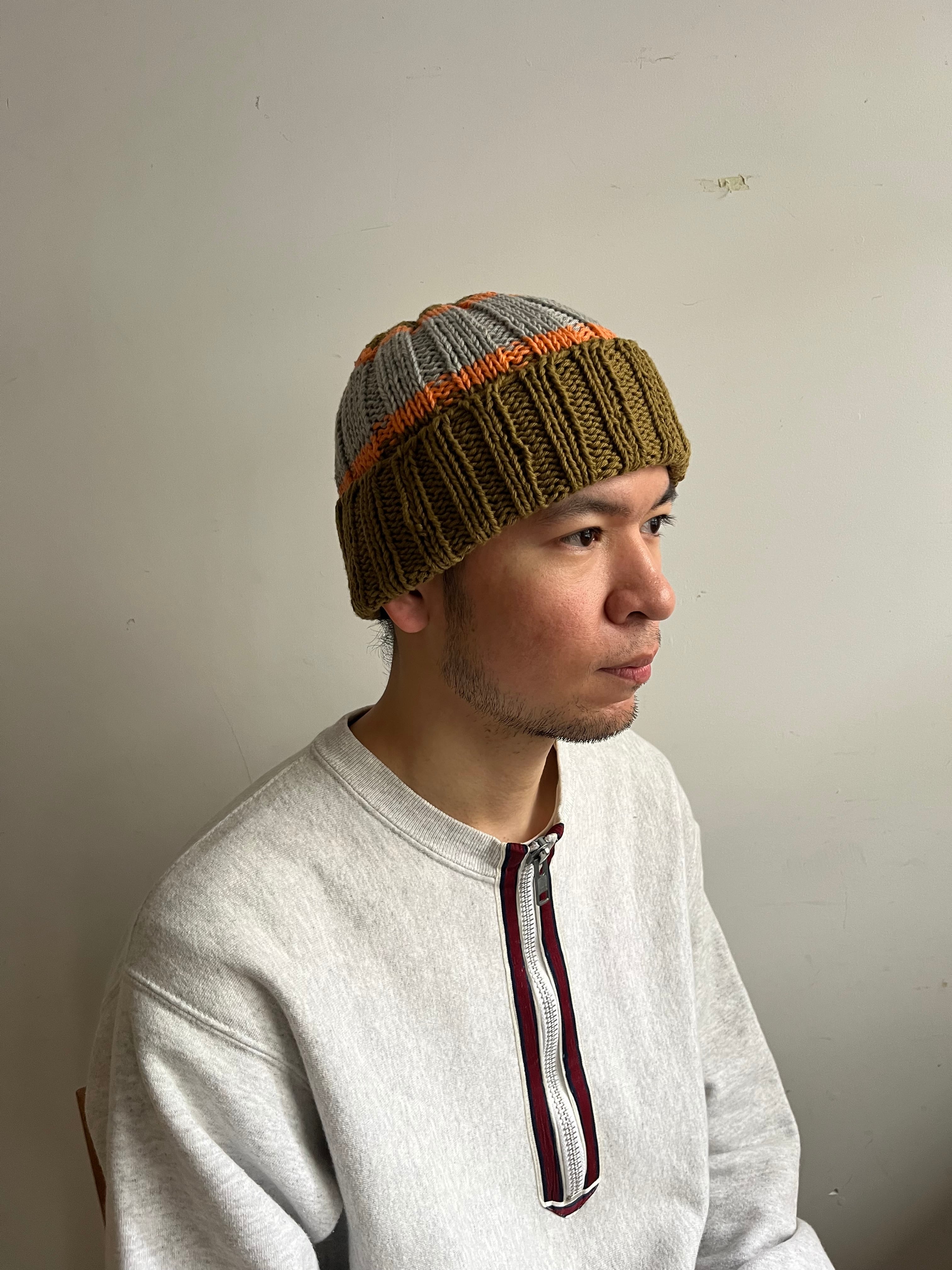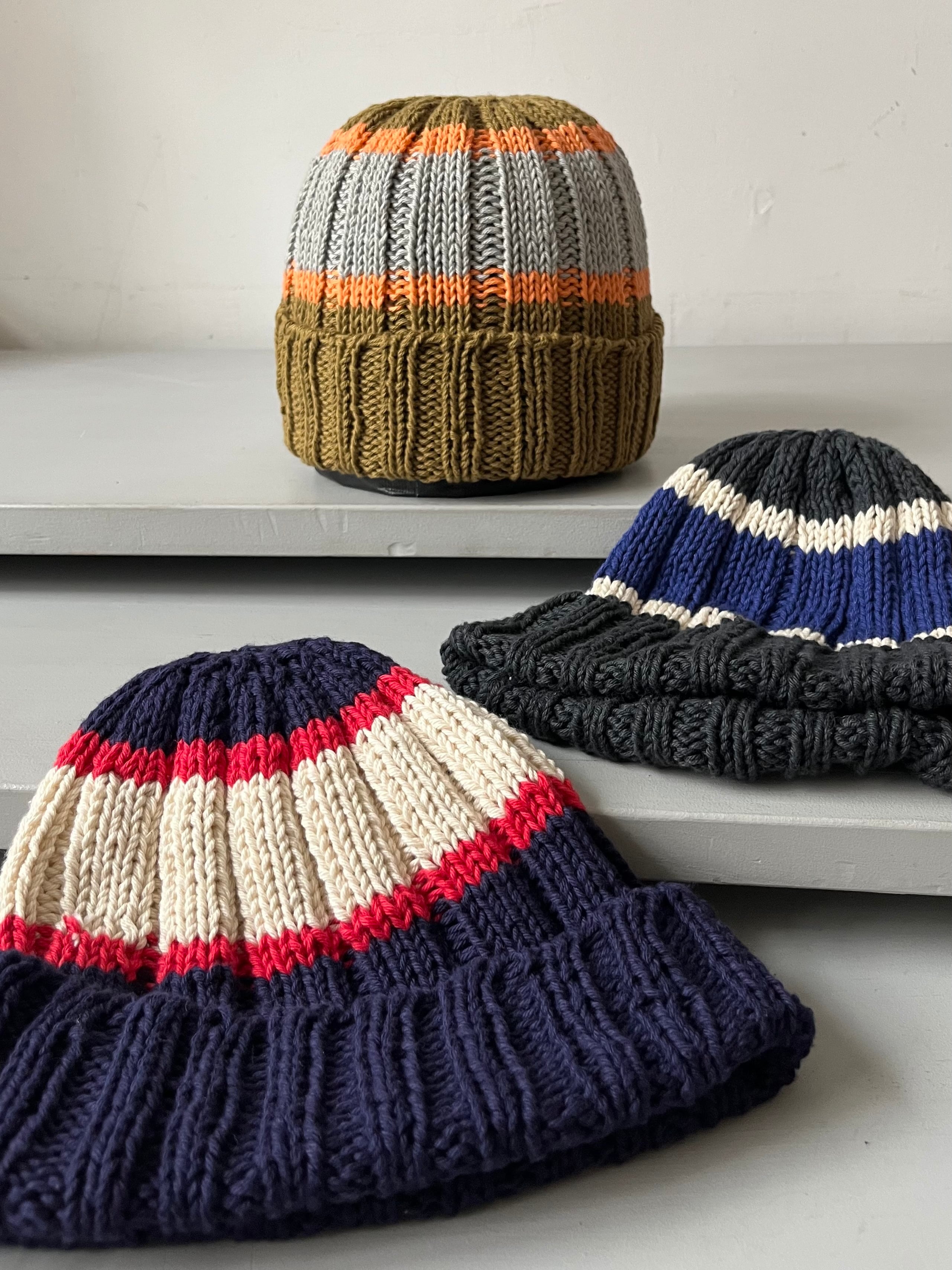 ローゲージ感のある太めの糸で編まれたワッチキャップ。