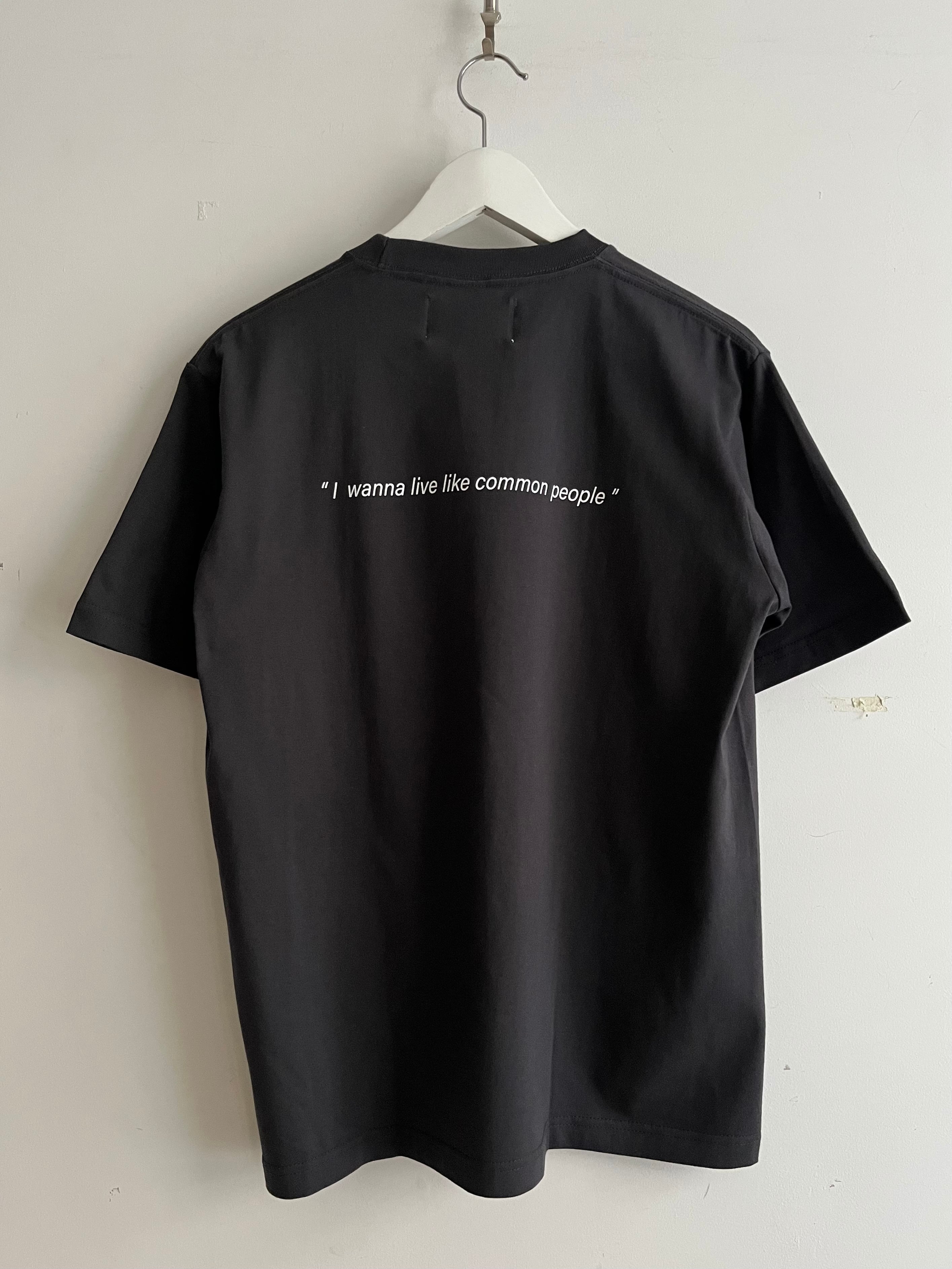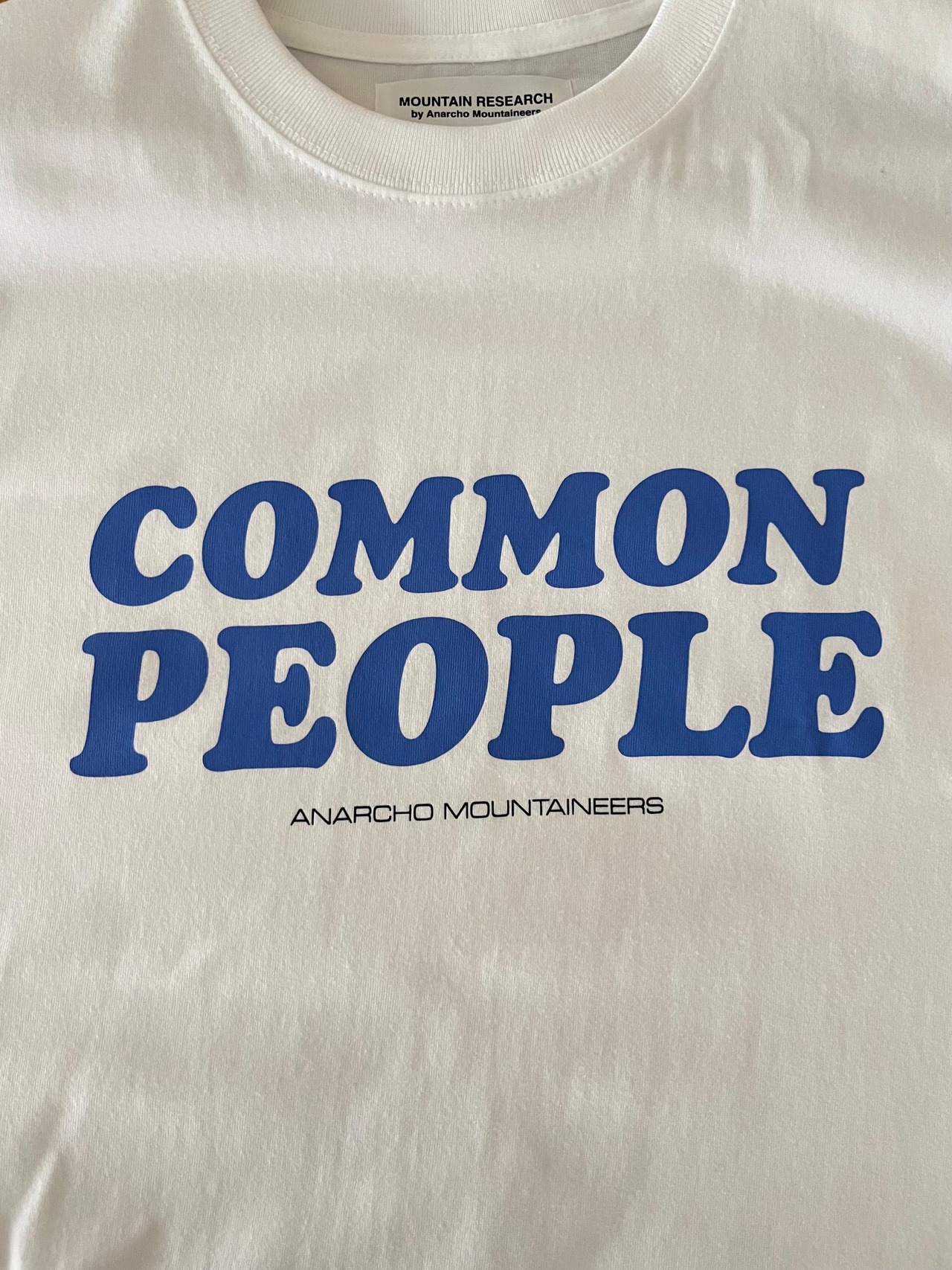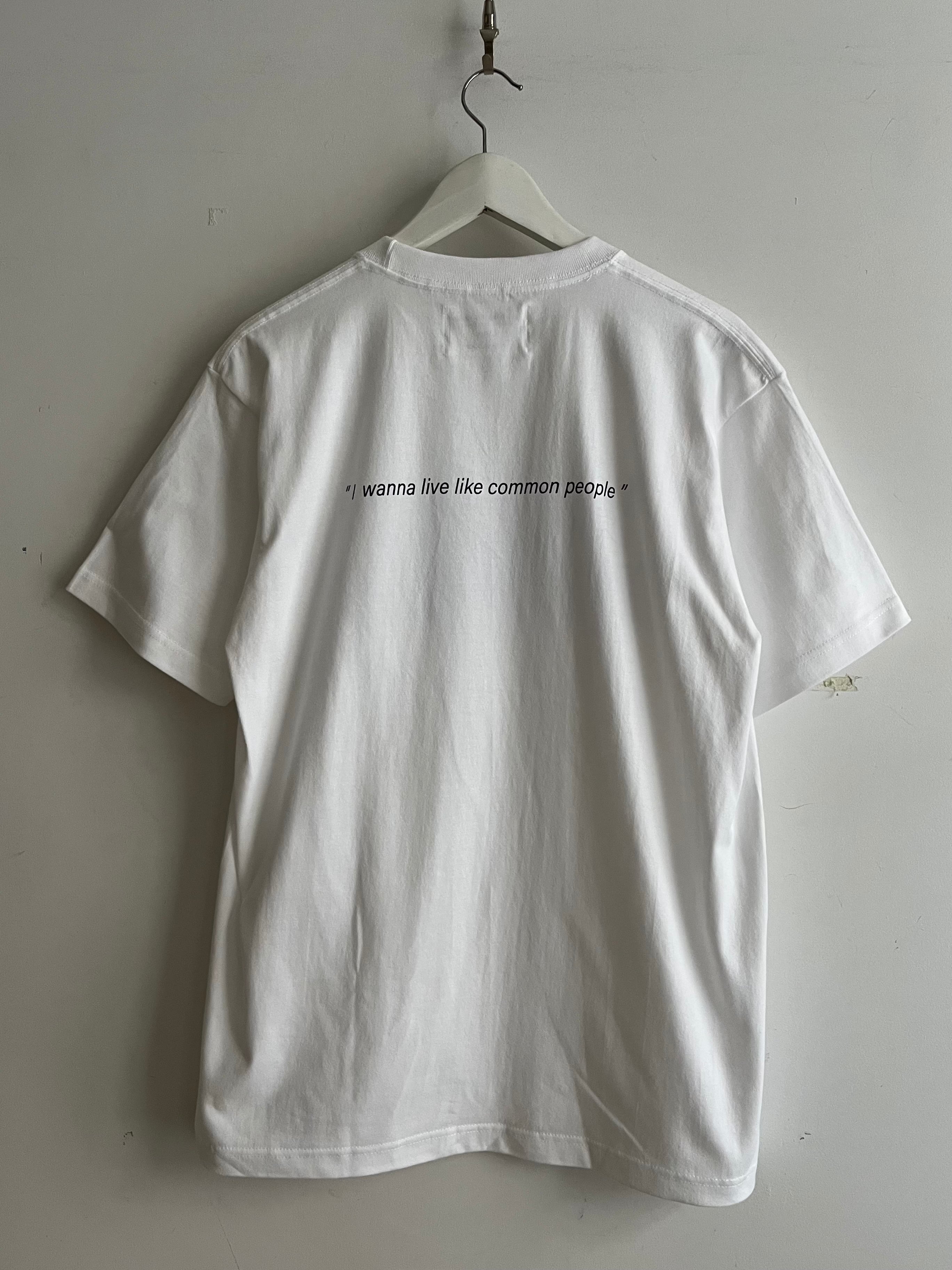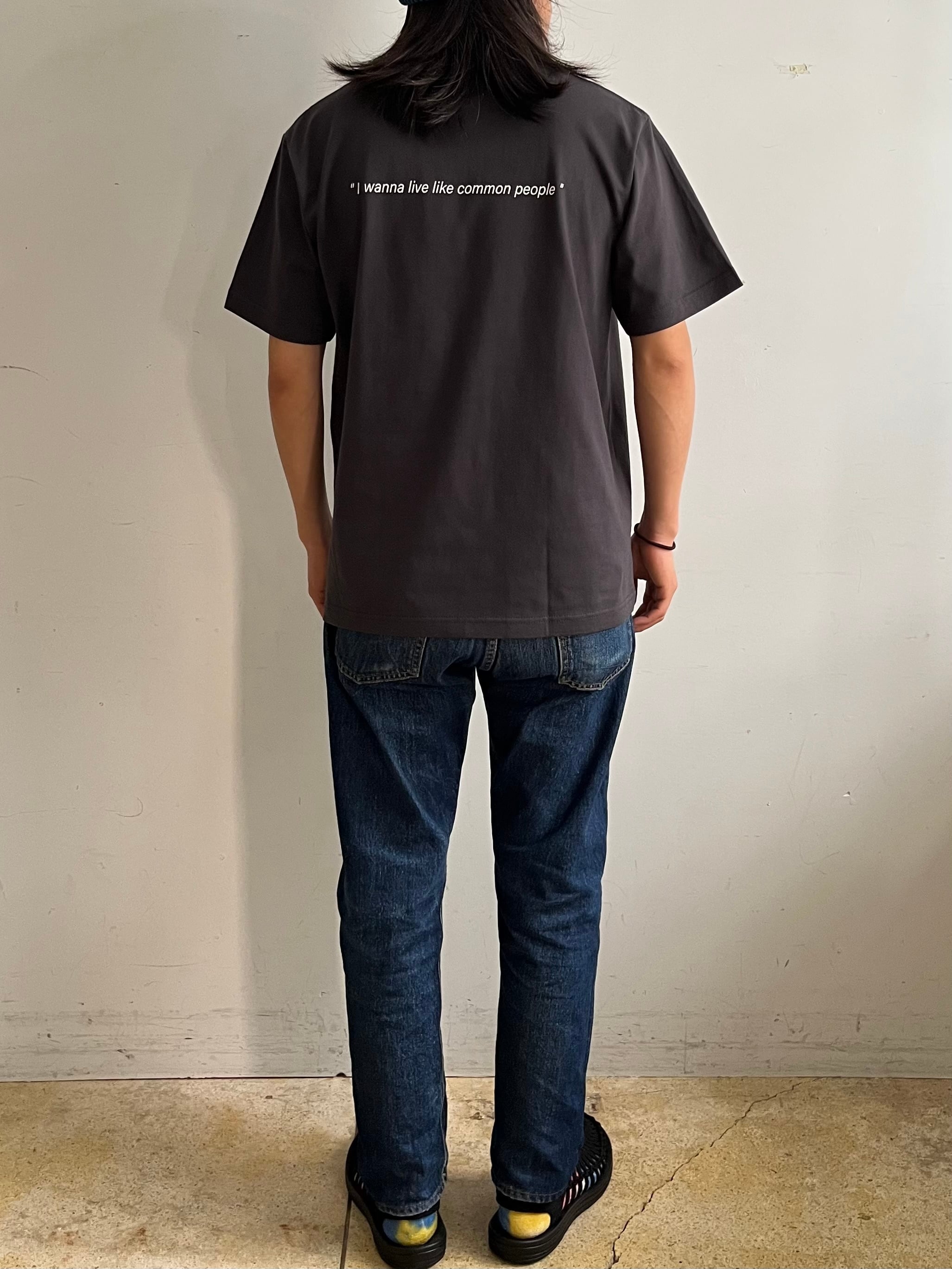 今シーズンのテーマソング・キーワードである「COMMON PEOPLE」を前面にデザインしたプリントTシャツ。ブリットポップバンド P〇LP の楽曲であり背面には歌詞の一部がプリントされてます。