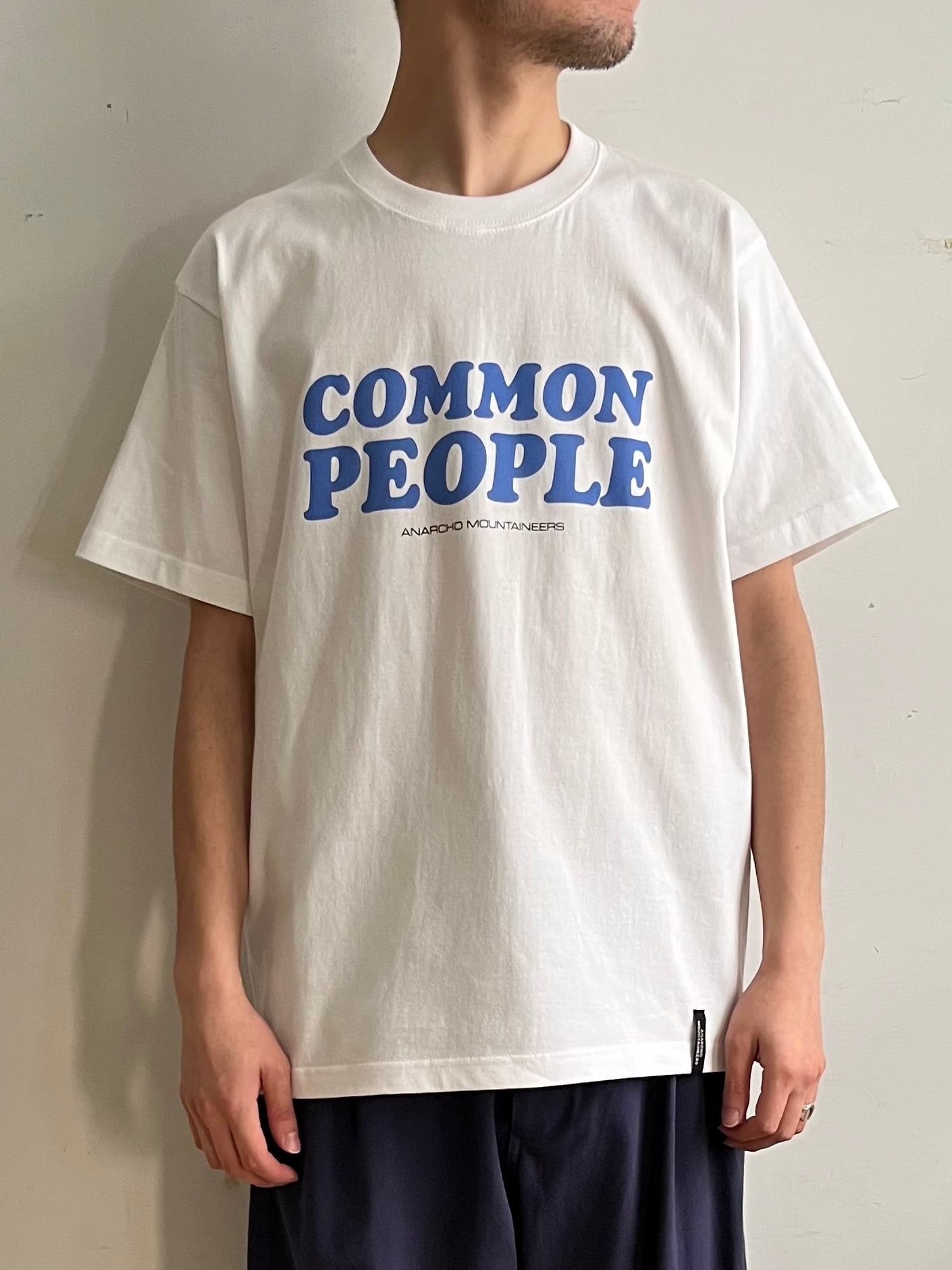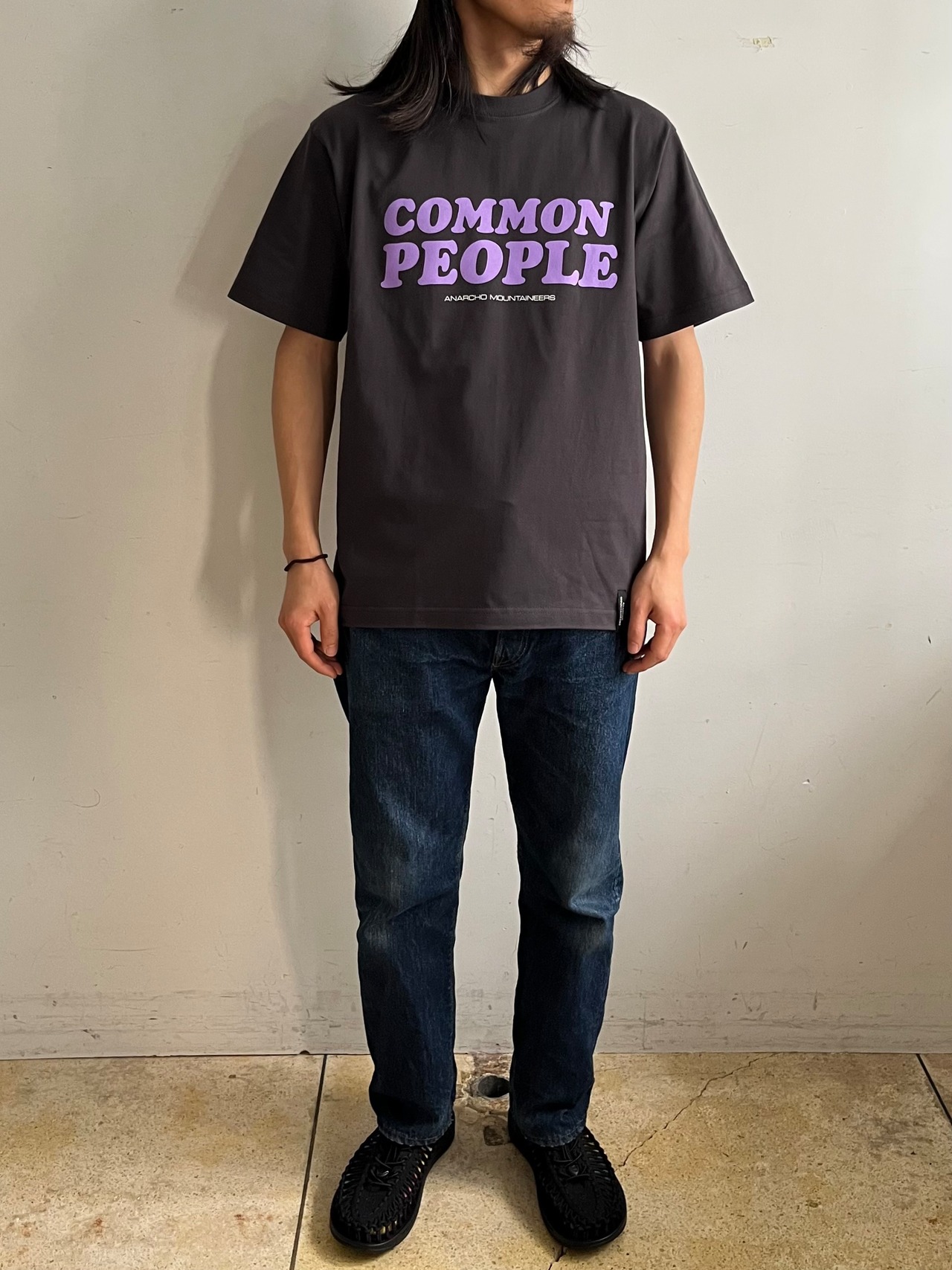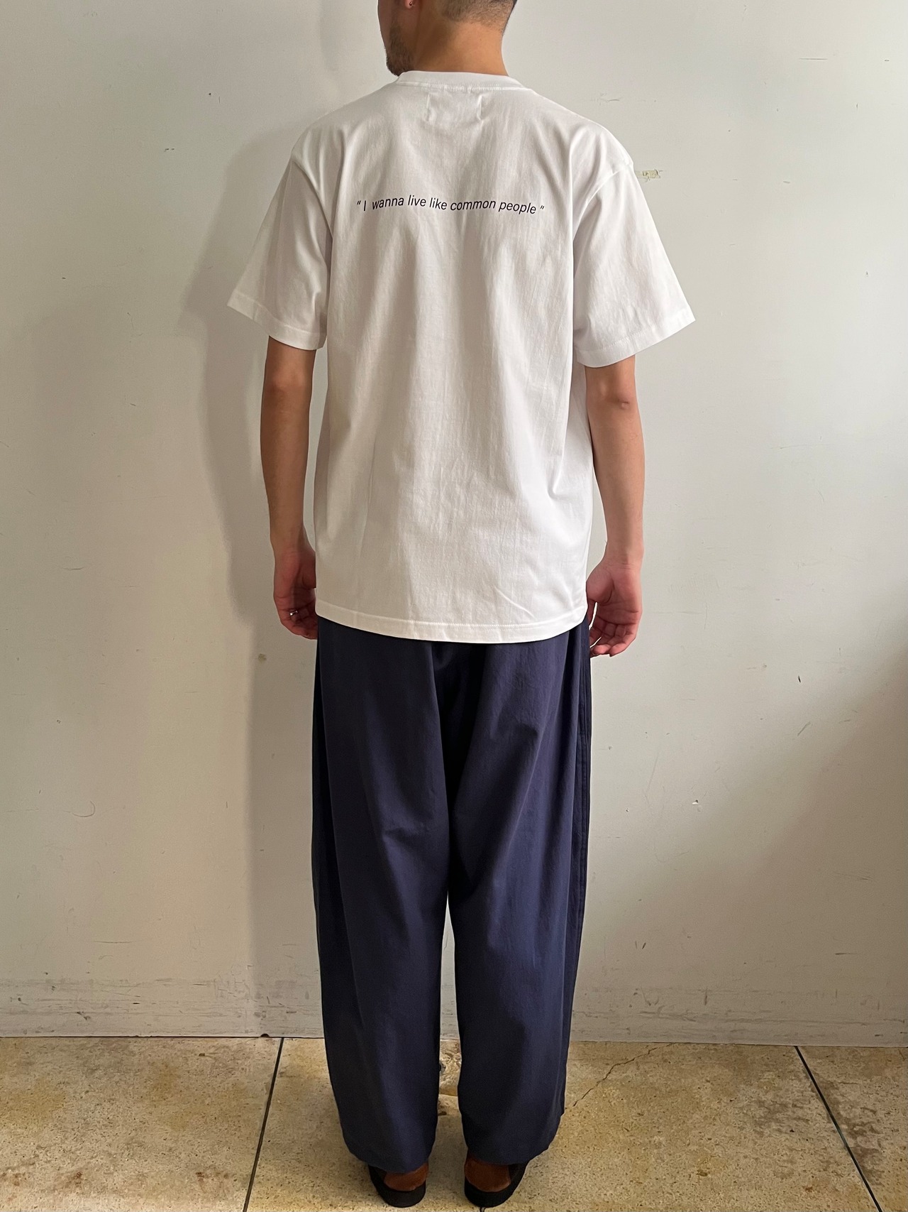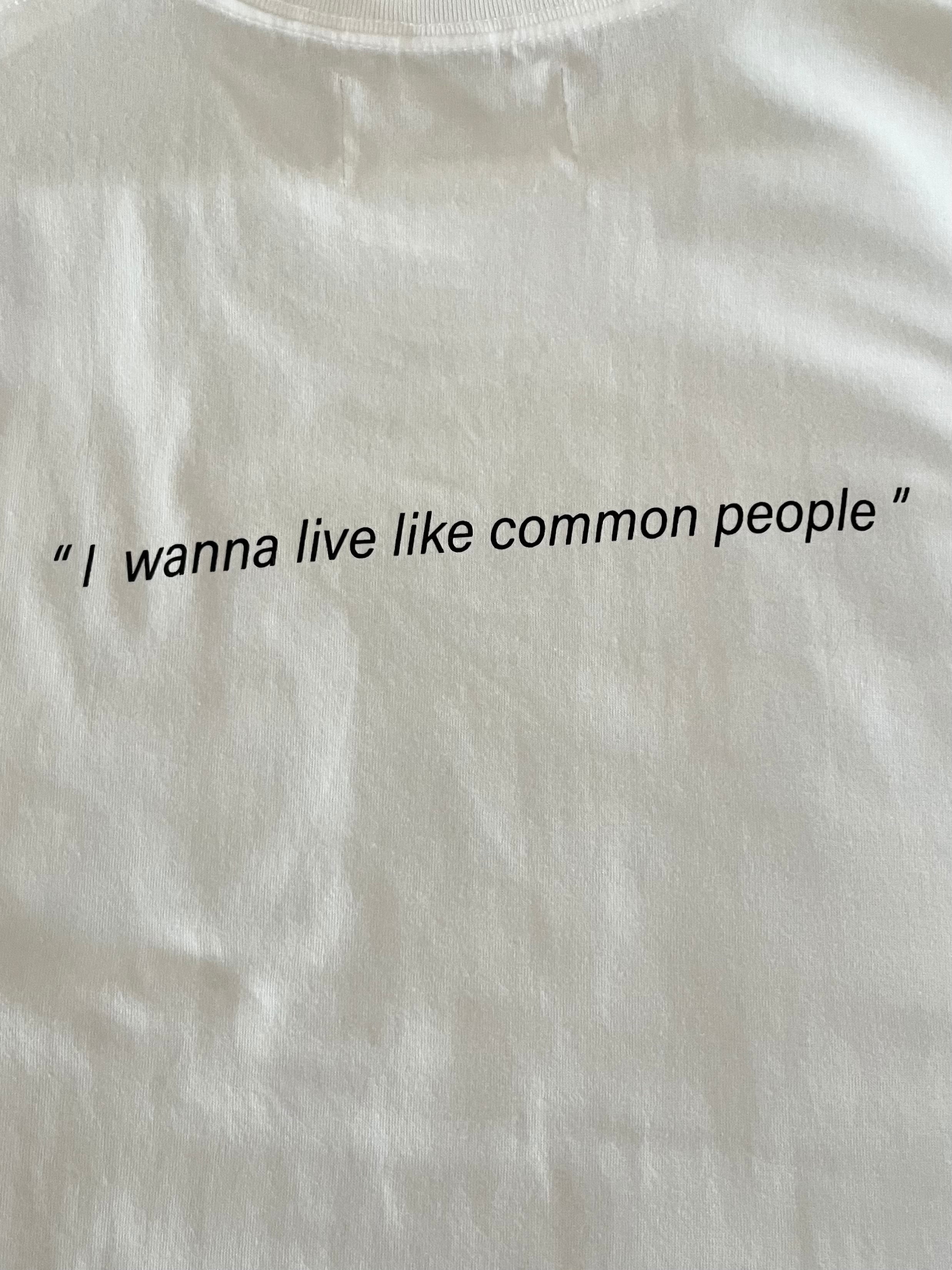 今シーズンのテーマソング・キーワードである「COMMON PEOPLE」を前面にデザインしたプリントTシャツ。ブリットポップバンド P〇LP の楽曲であり背面には歌詞の一部がプリントされてます。