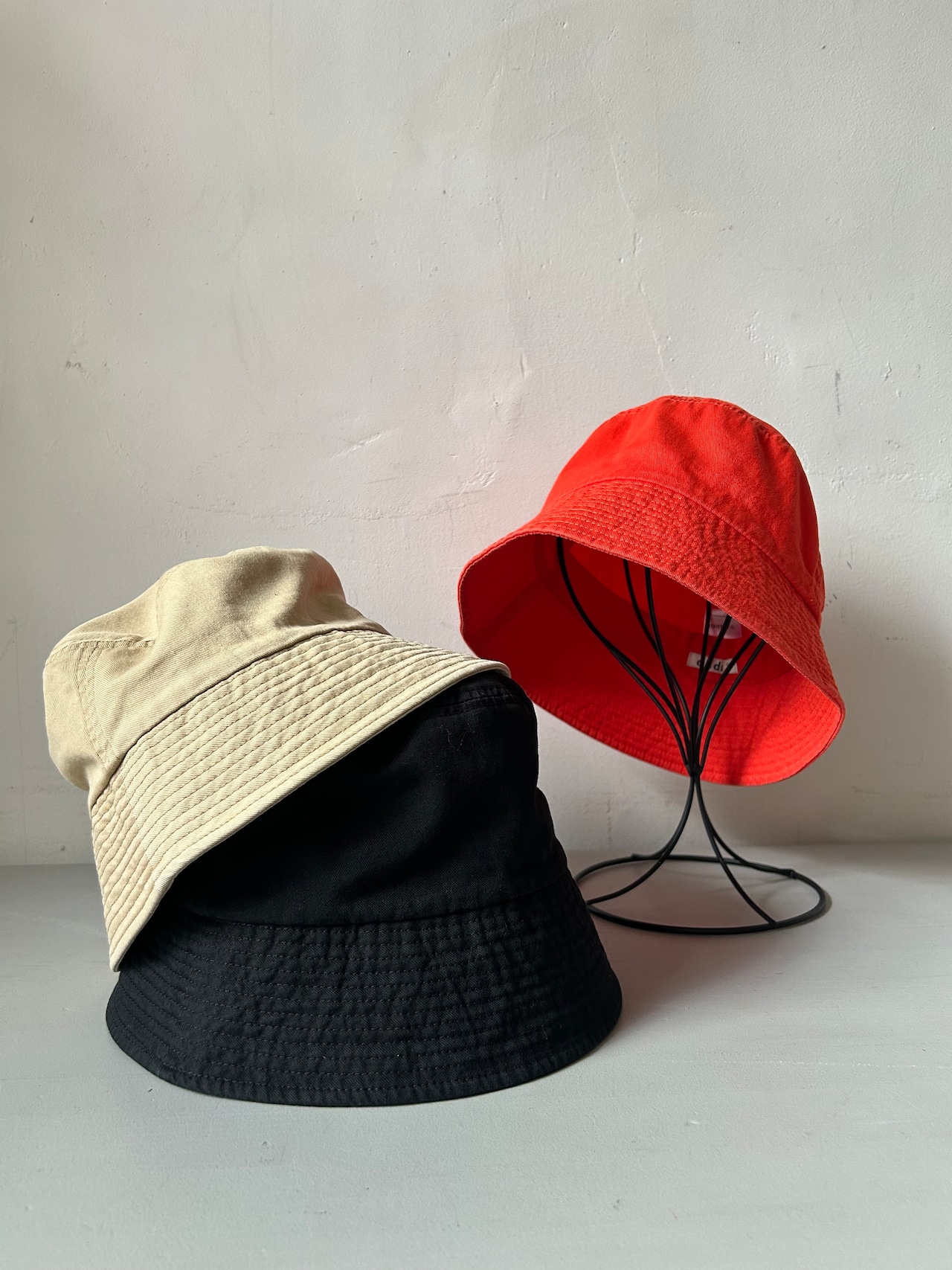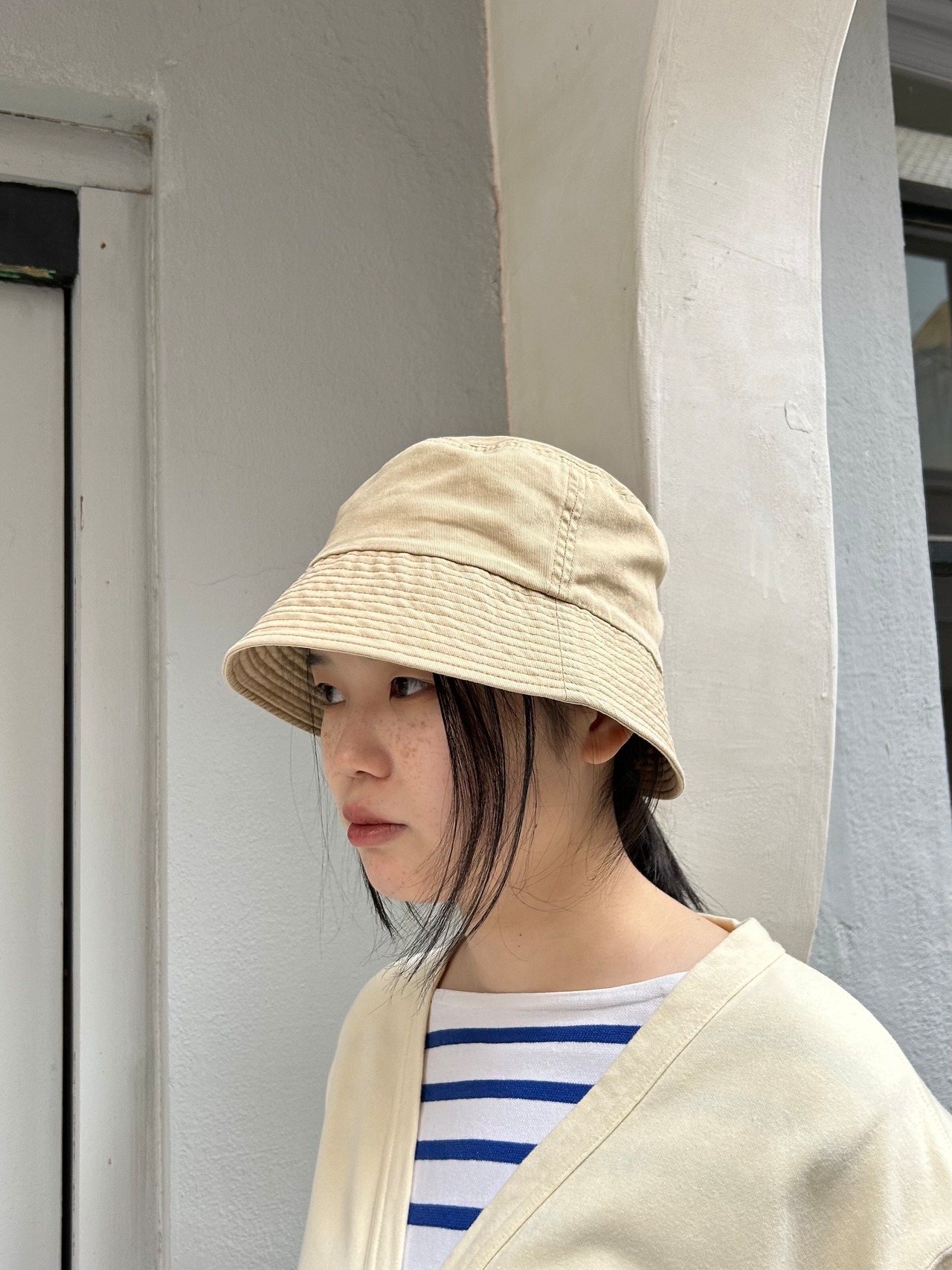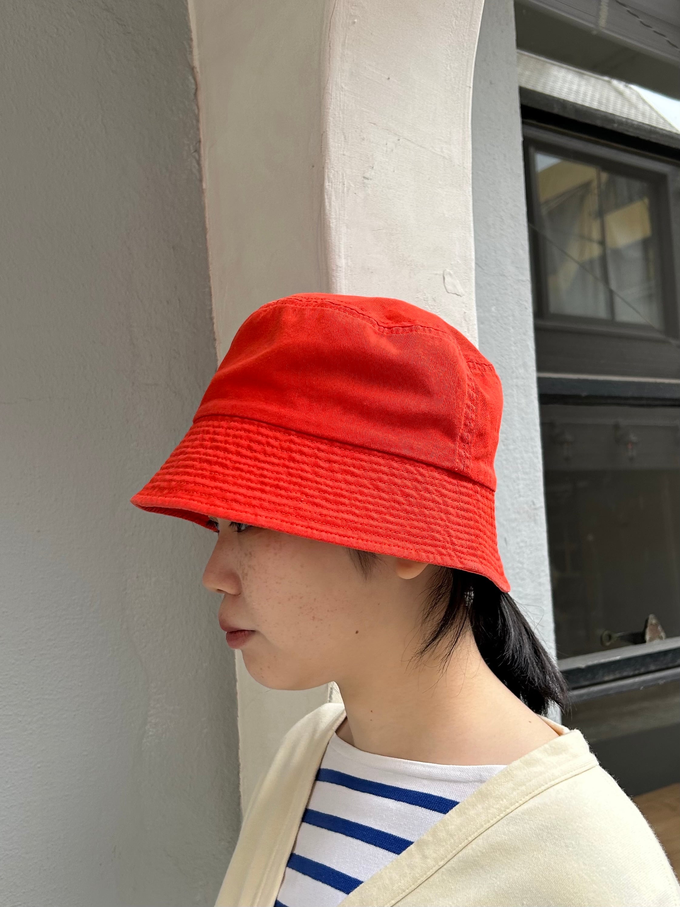 ダメージ加工を施して風合い良く仕上げたバケットハット。