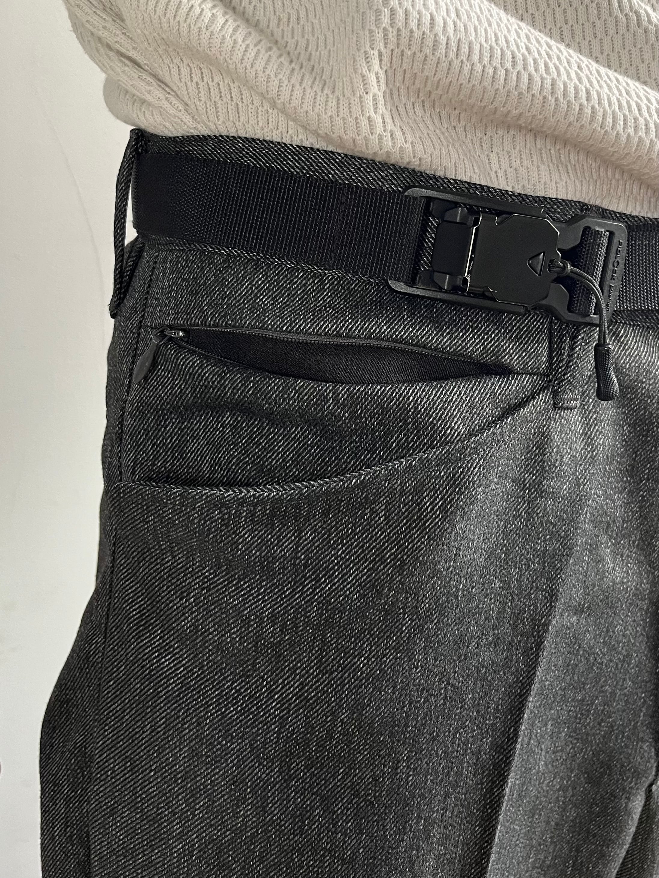 フリスコパンツを思わせるL字型のフロントポケット、コンシールファスナーを使ったウォッチポケット、ヨーク切り替えを利用したバックポケットなど程よくデザインを加えた6ポケット仕様。